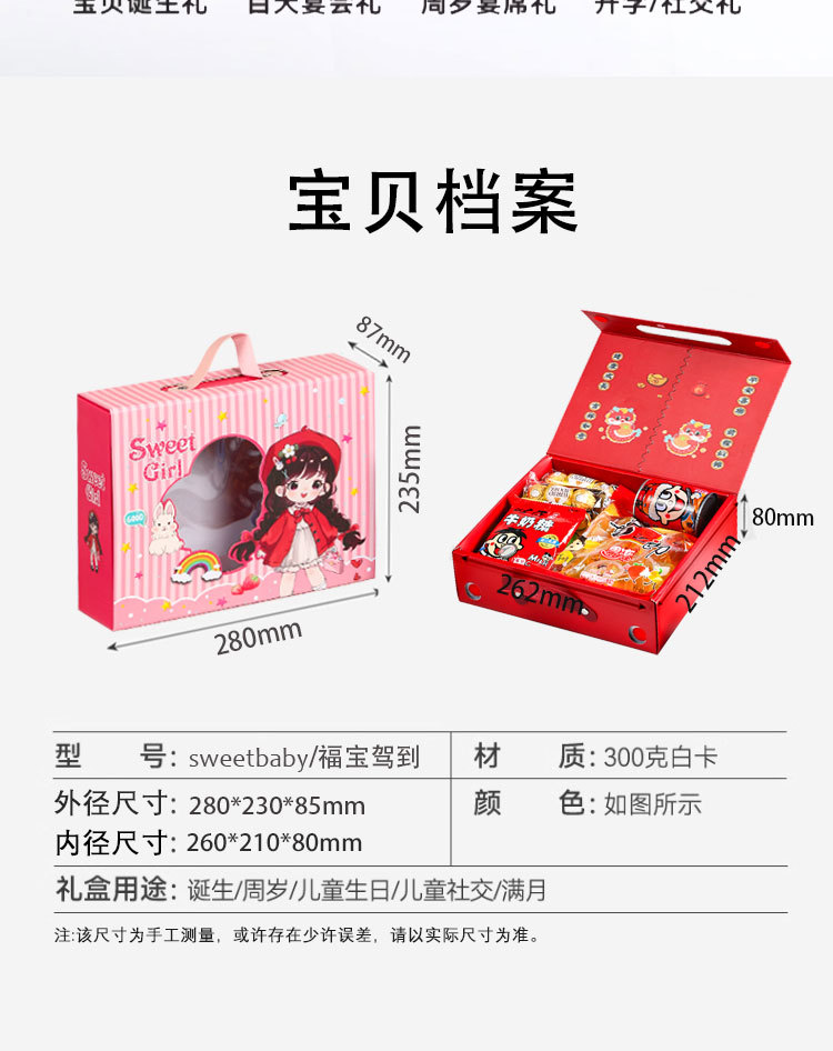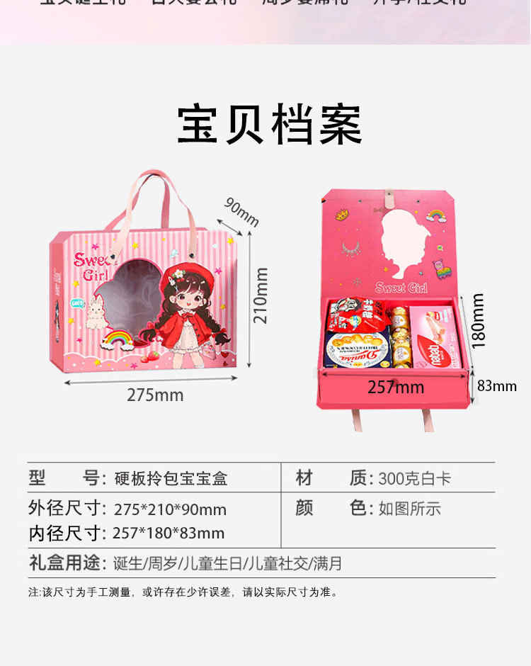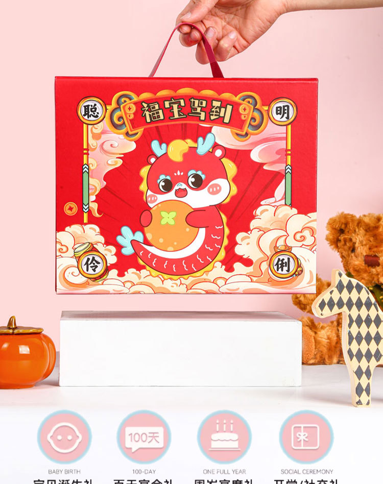 宝宝满月礼盒空盒子伴手礼礼品盒周岁空宴回礼空盒手提满月宴