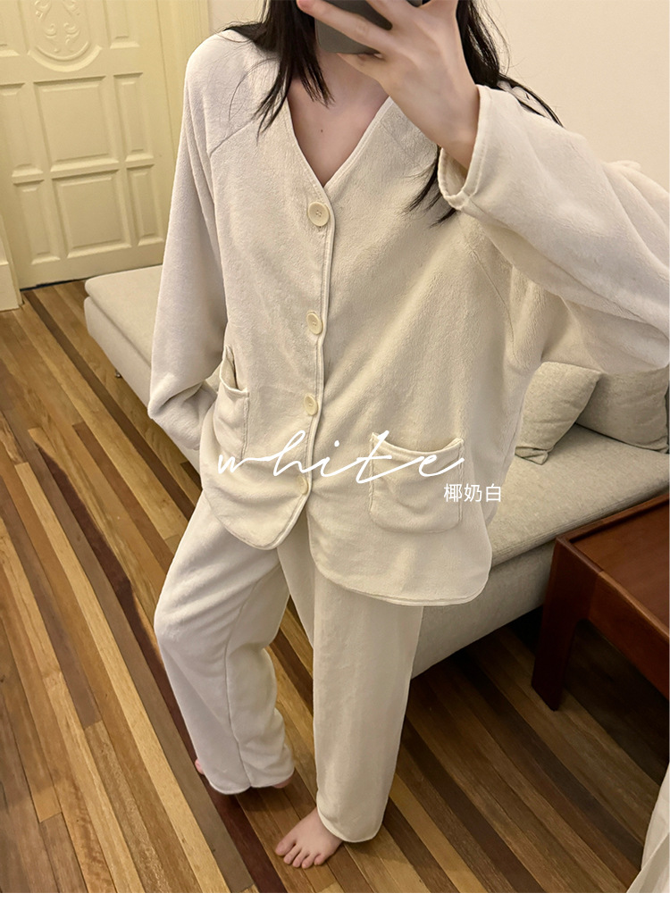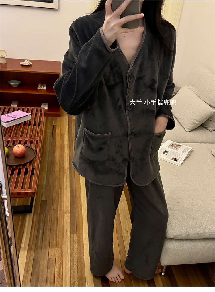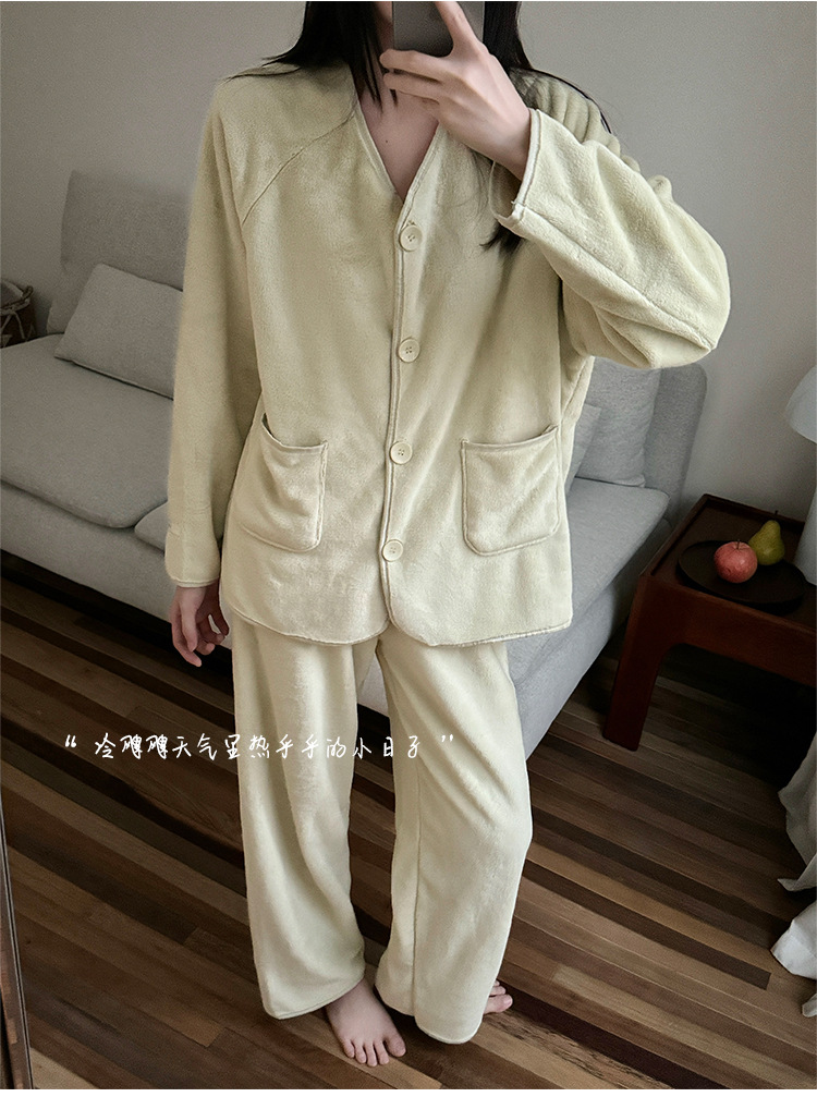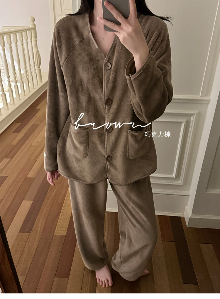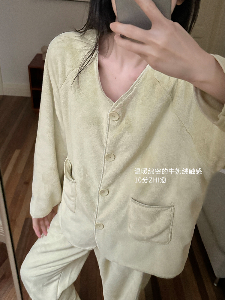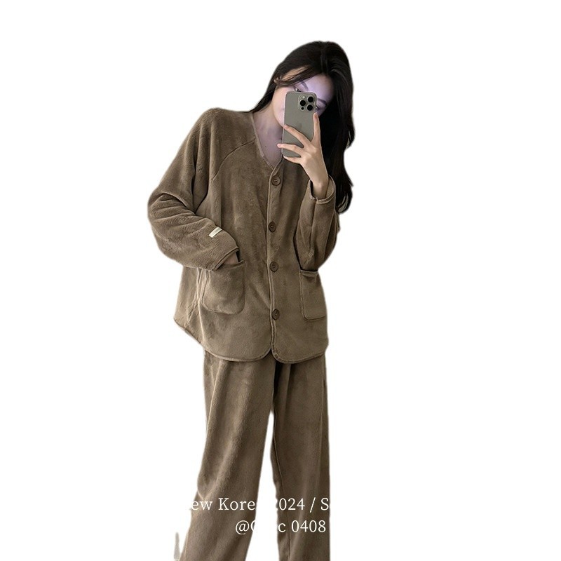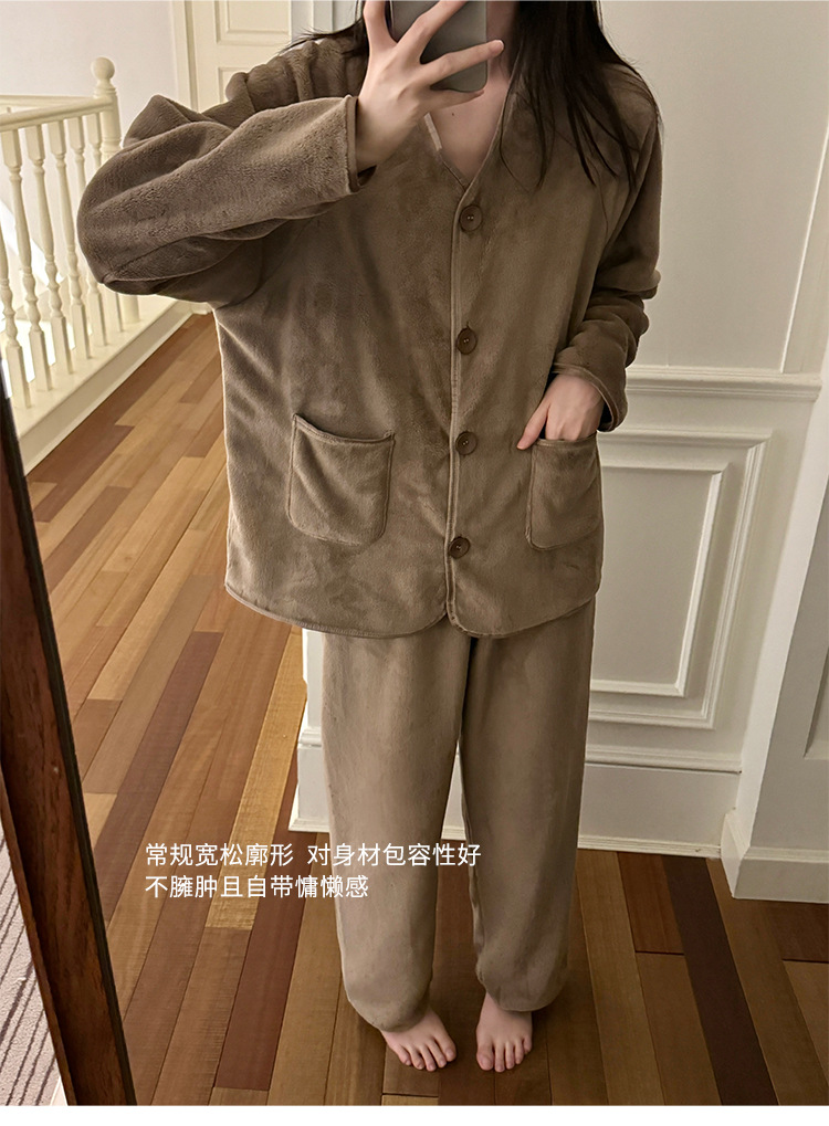 哑光牛奶绒韩风松弛睡衣女套装秋冬季加绒加厚家居服保暖二件套