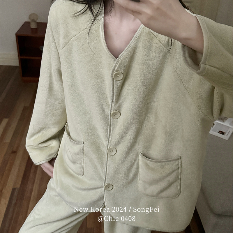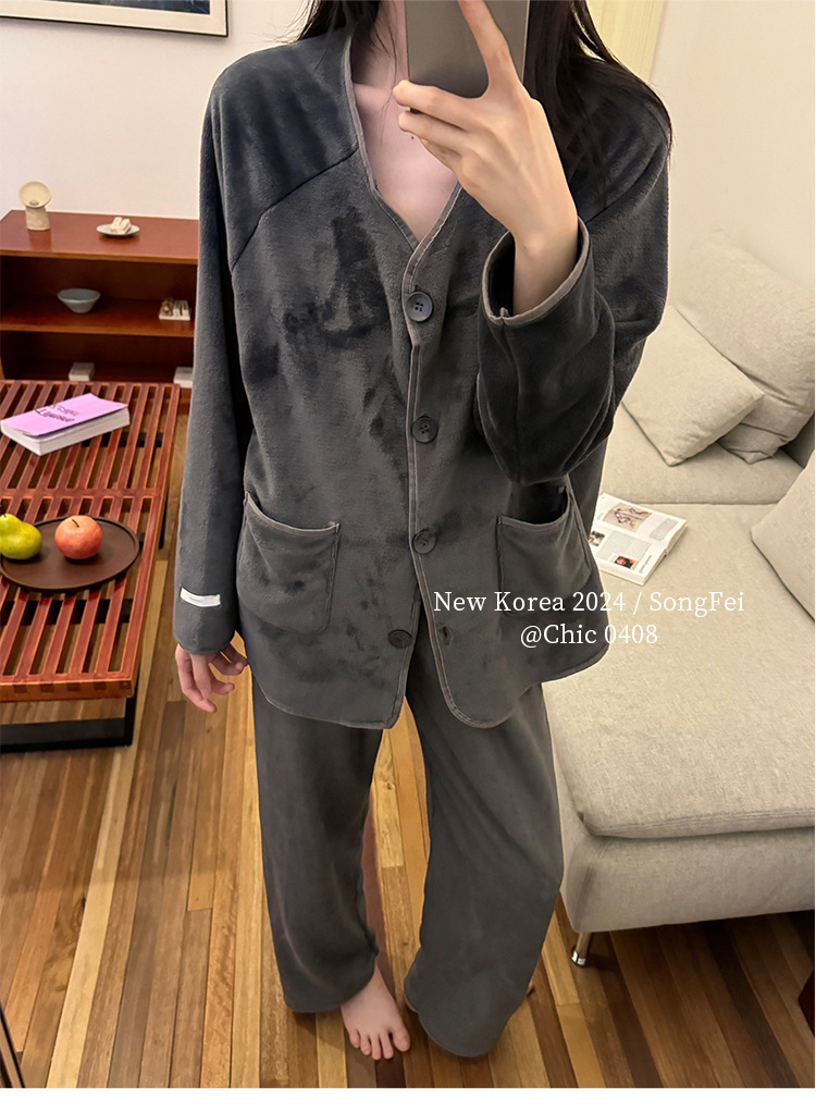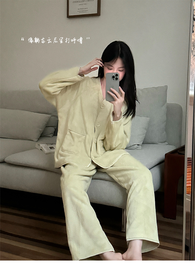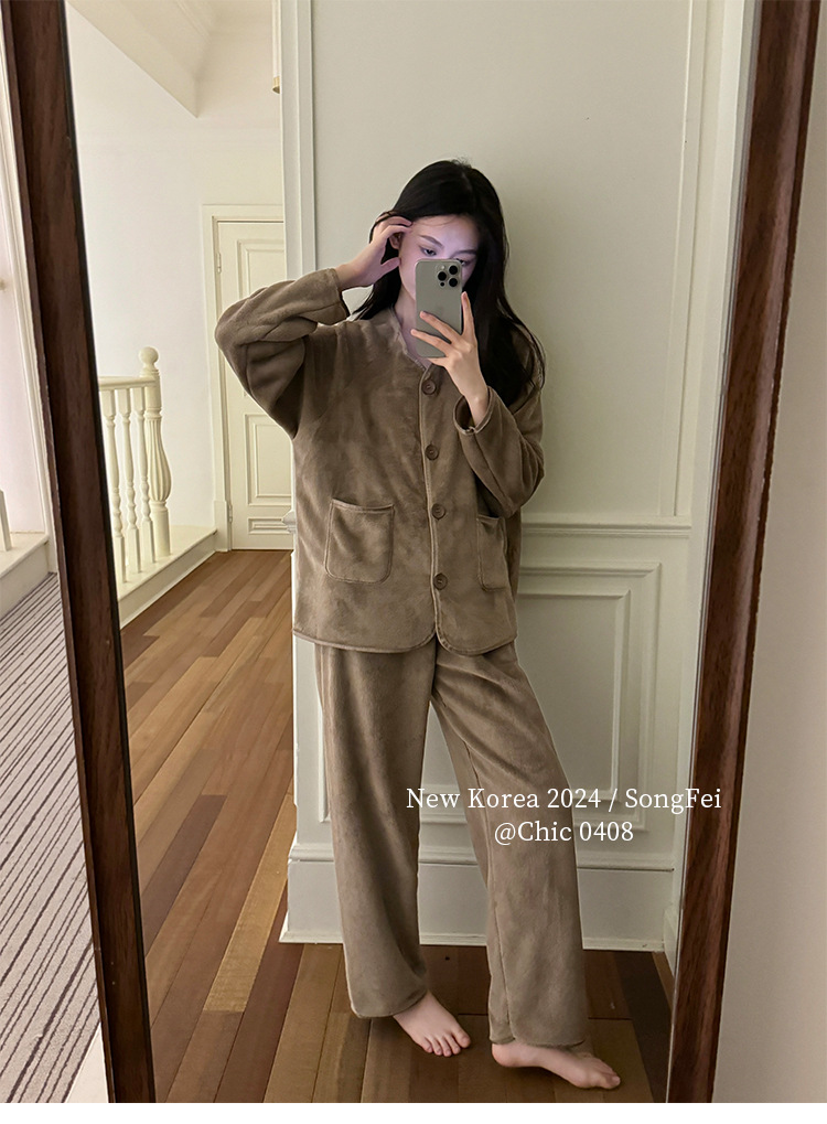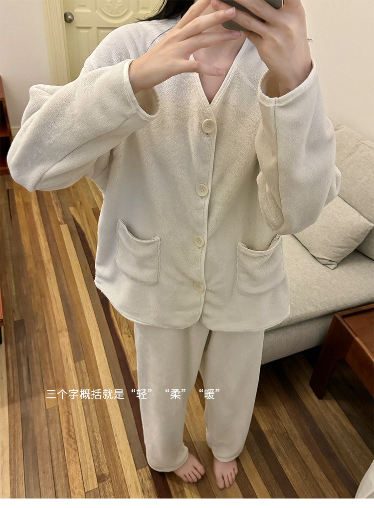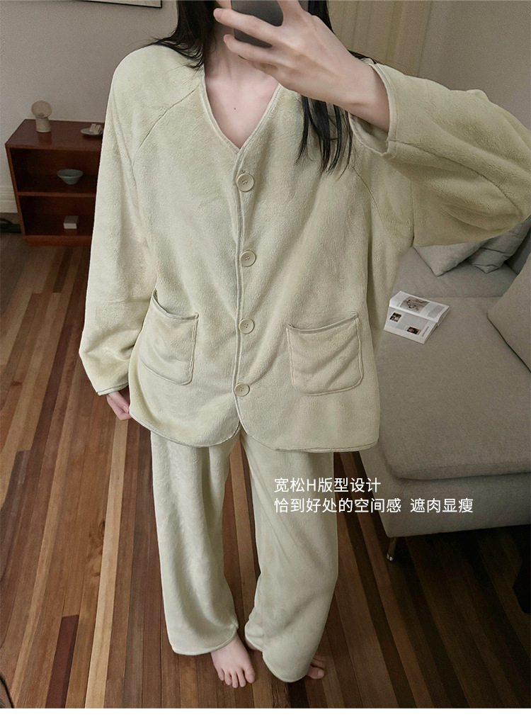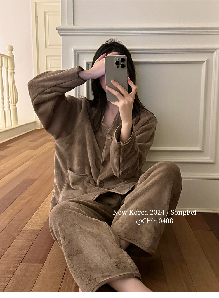 哑光牛奶绒韩风松弛睡衣女套装秋冬季加绒加厚家居服保暖二件套
