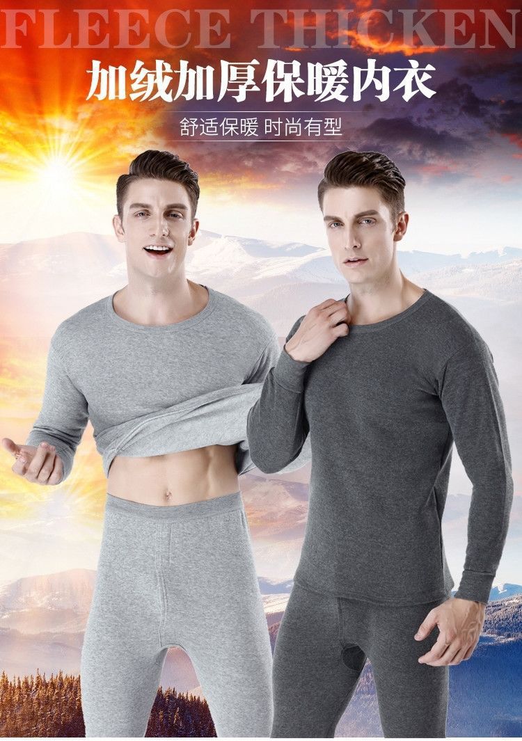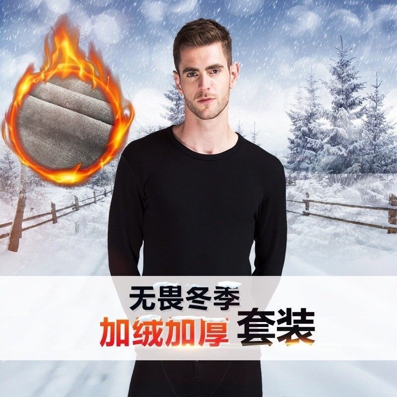 拉绒保暖内衣男士薄款加绒加厚秋衣秋裤秋冬套装修身打底棉毛衫