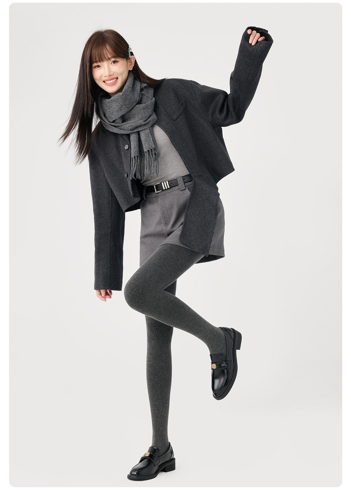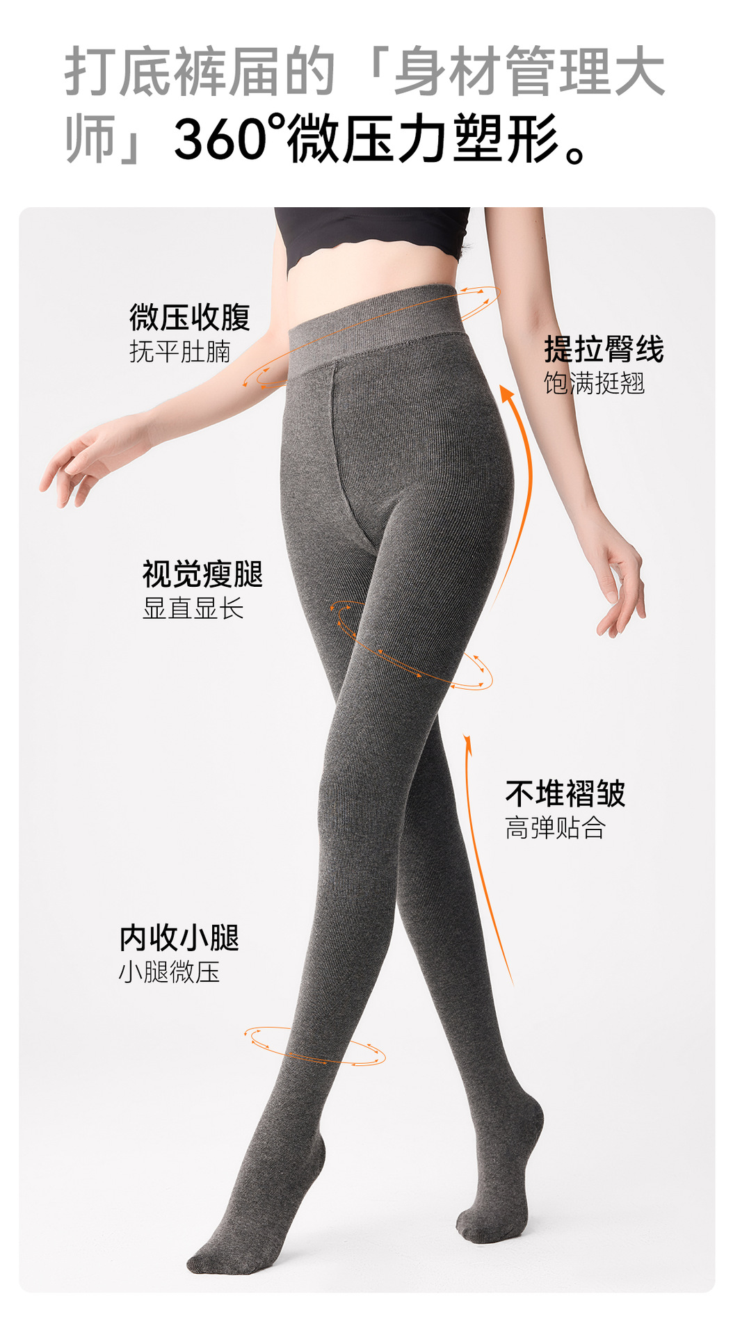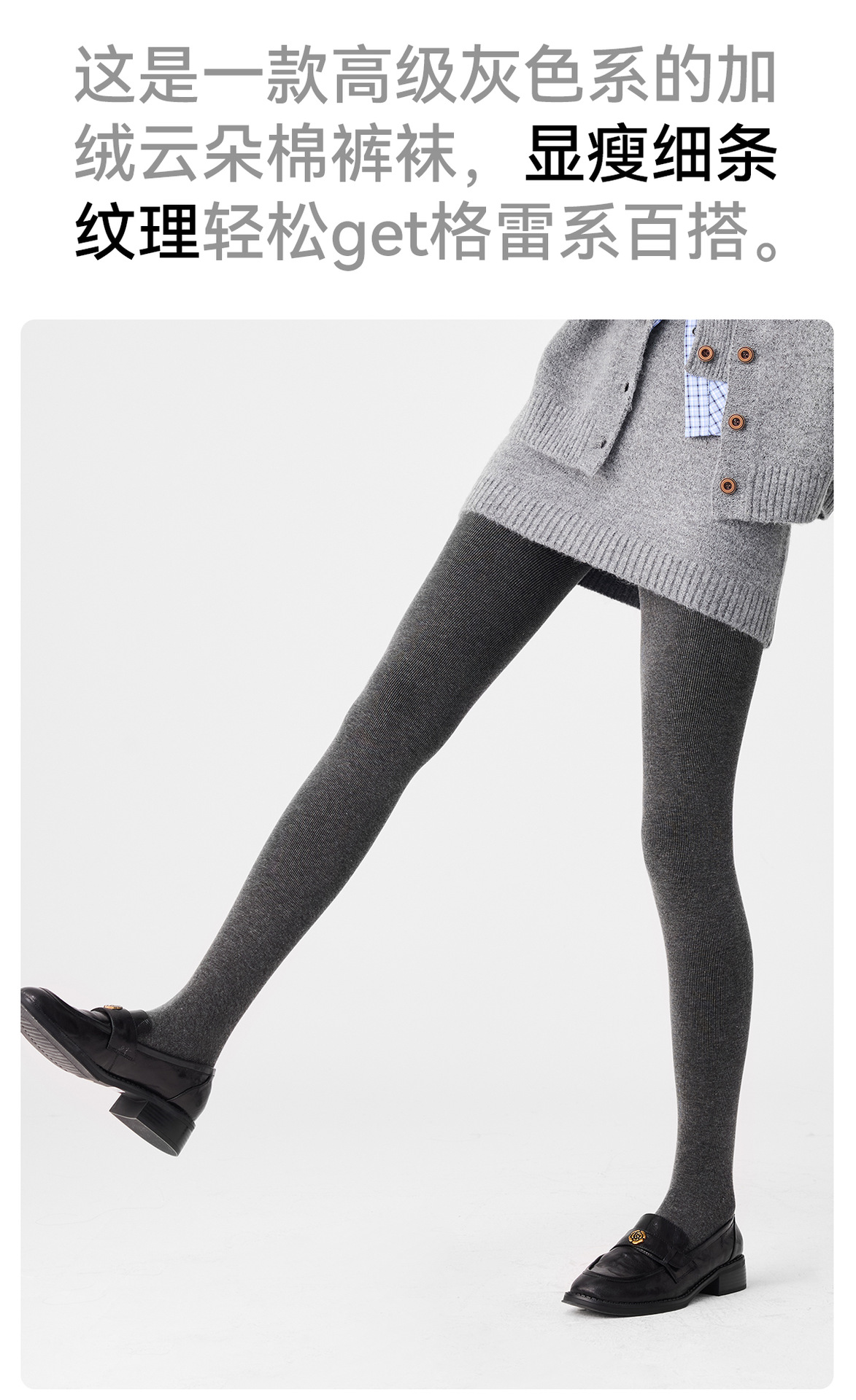 灰色打底裤女士秋冬季竖条纹显瘦一体连裤袜加绒加厚棉竖条打底袜
