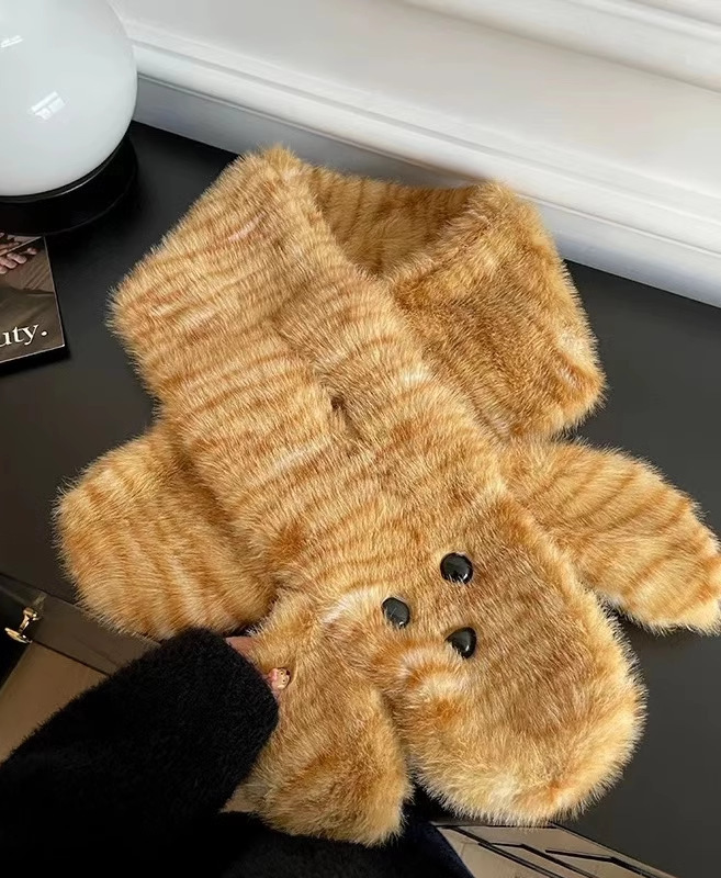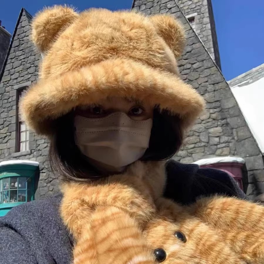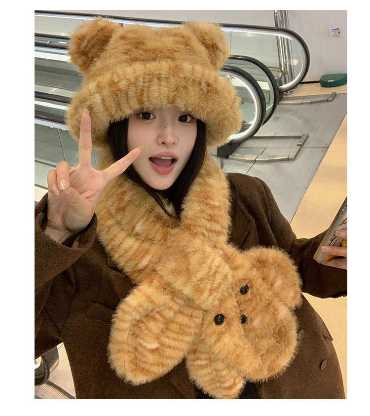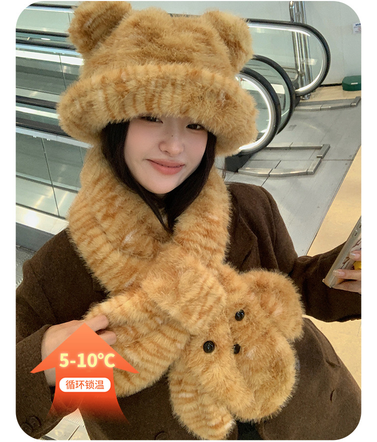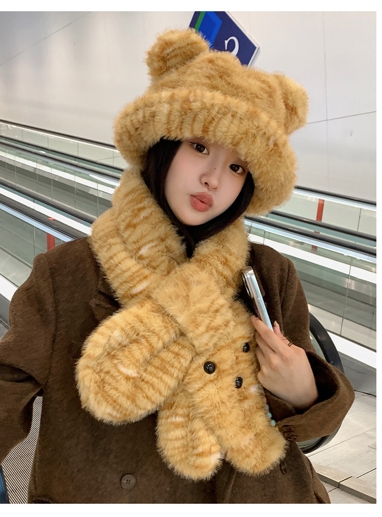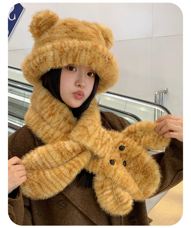 小老虎帽子围巾两件套女秋冬季可爱虎纹豹纹围脖加厚防寒毛绒虎头
