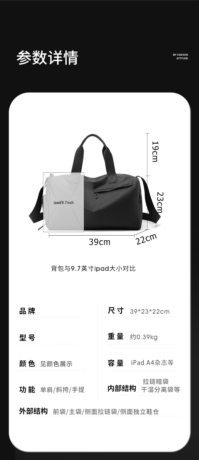 健身包男干湿分离运动瑜伽包鞋仓游泳训练袋女轻便短途行李收纳包