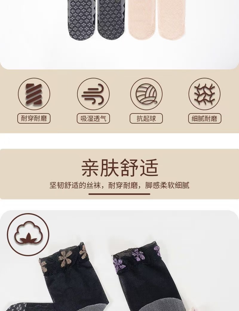 新款蕾丝花边加固袜子女士夏季薄款防滑按摩不勒脚防勾四叶花丝袜