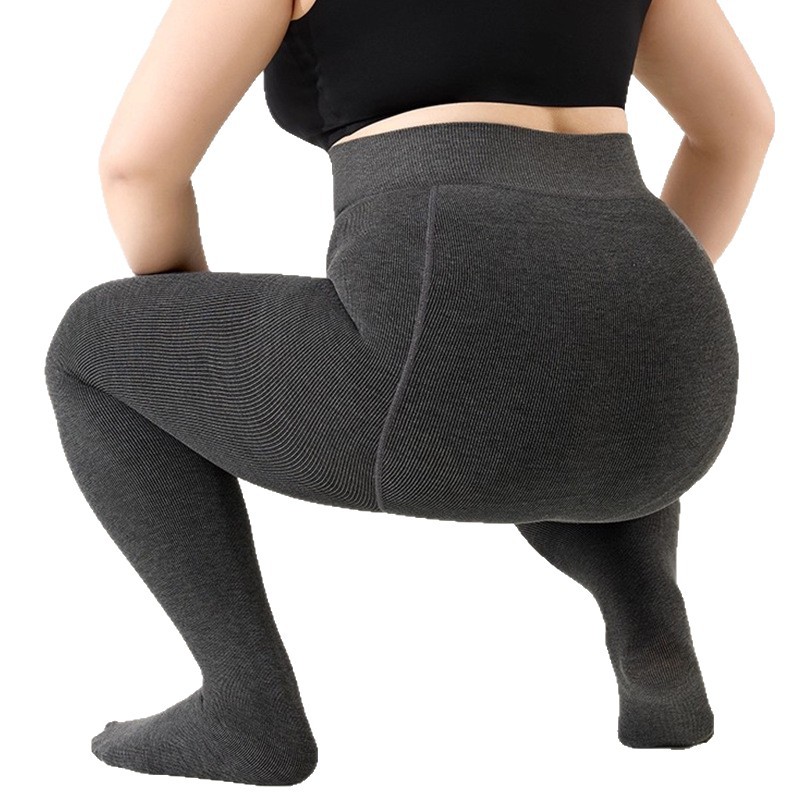 200斤加肥加大码加绒加厚灰色螺纹棉竖条纹打底裤连裤袜保暖裤女
