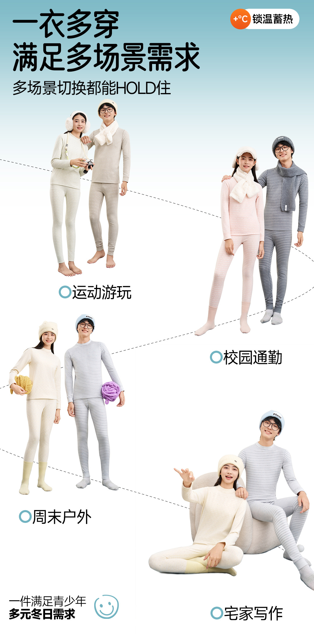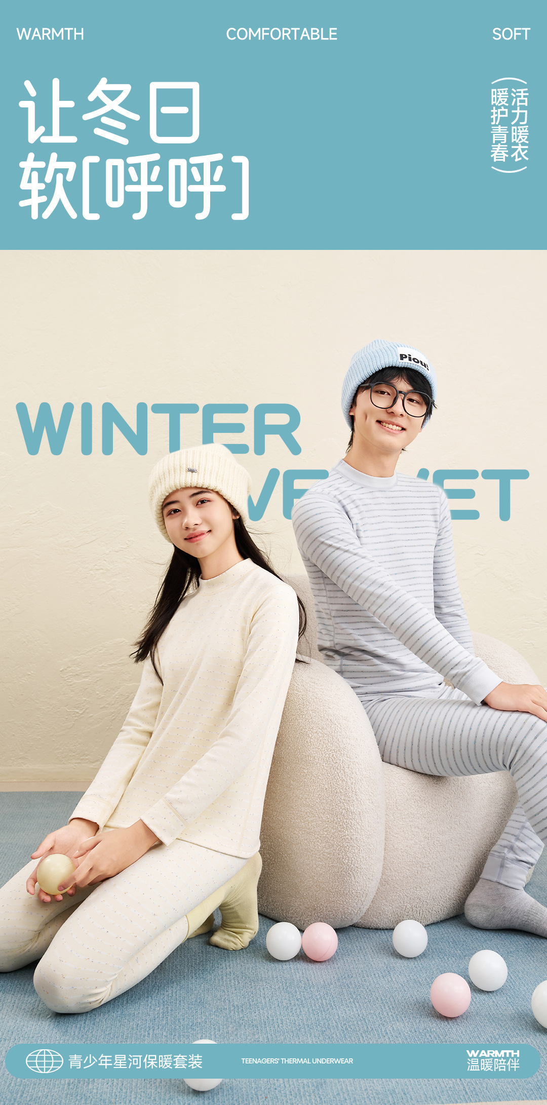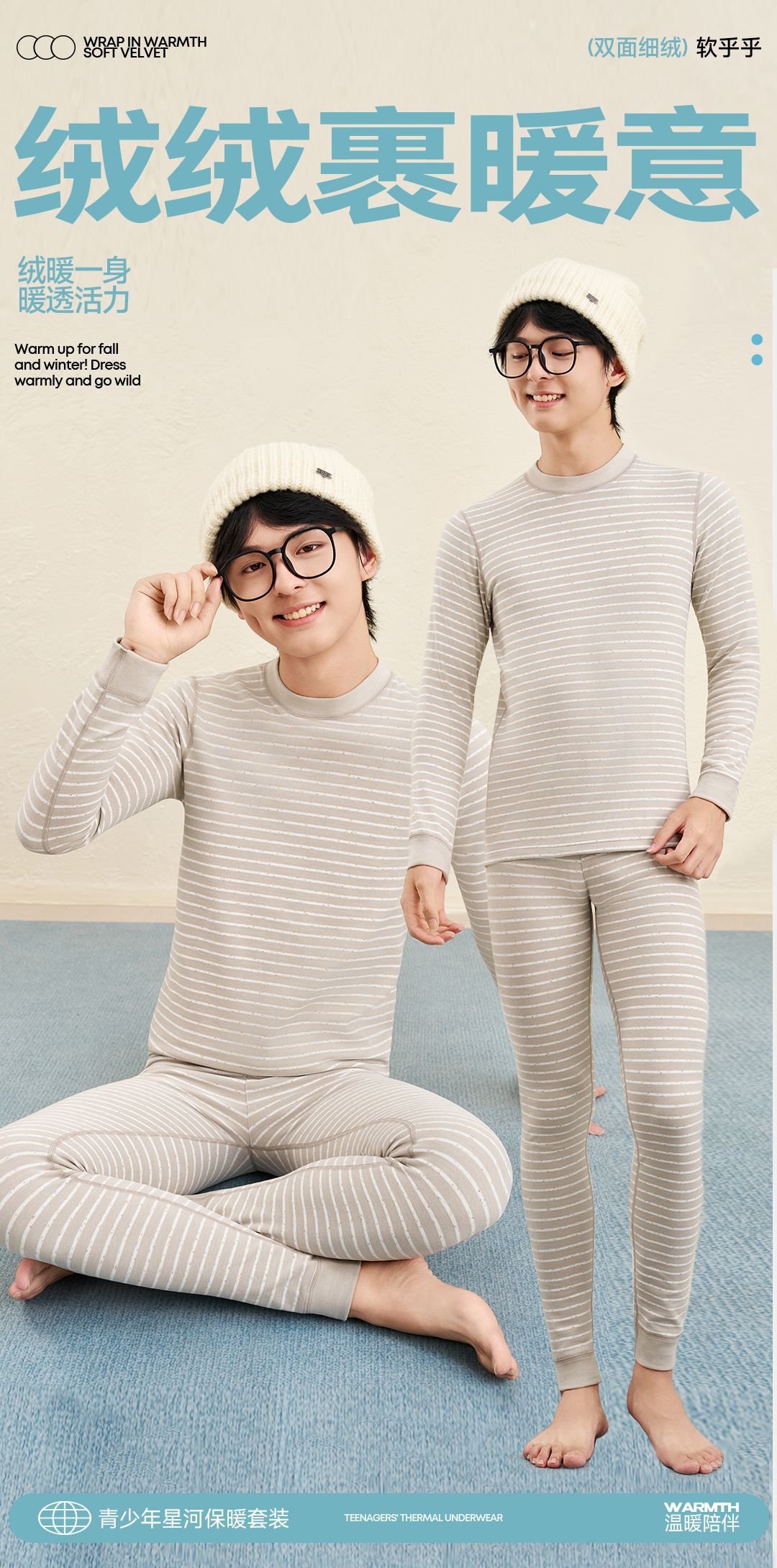 青少年保暖内衣套装初高中大学生加绒加厚秋衣秋裤男生女生睡衣