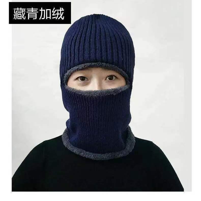 连体针织帽套头蒙面一体帽冬加绒加厚防寒帽保暖护耳帽骑车冷帽