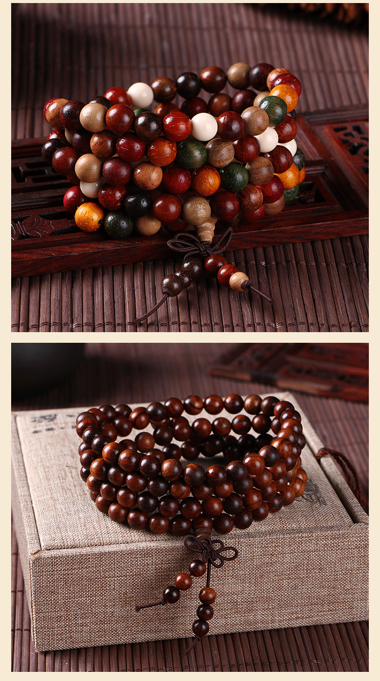 厂家批发108颗佛珠手串多圈檀木佛珠手串念珠文玩黑檀绿檀黑花梨