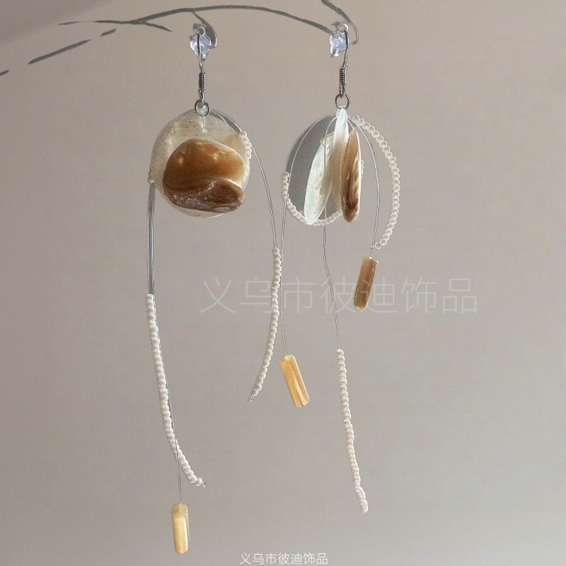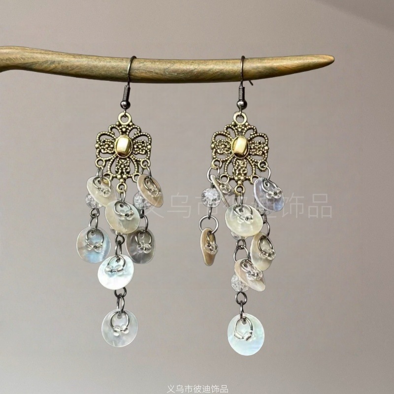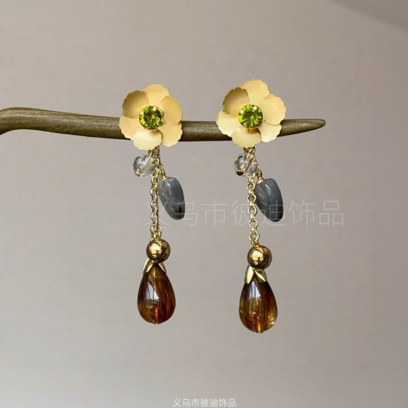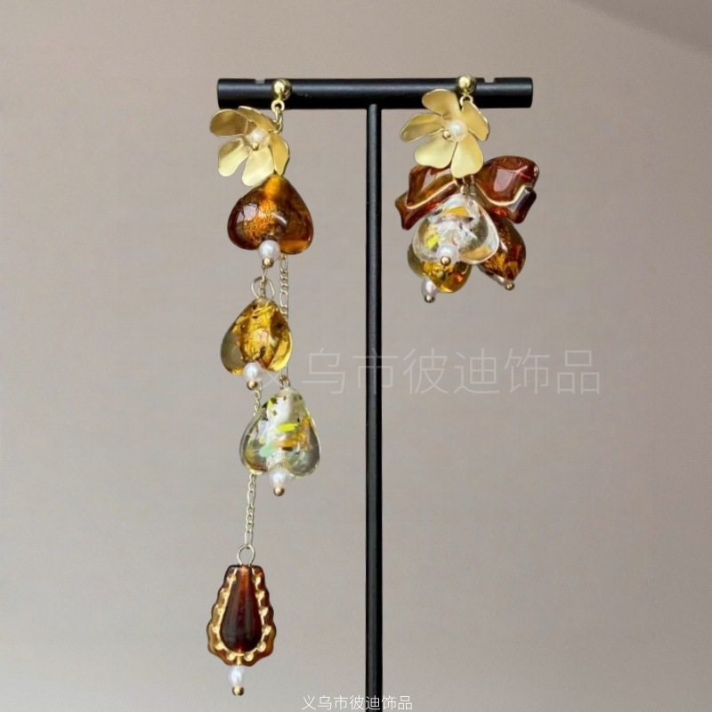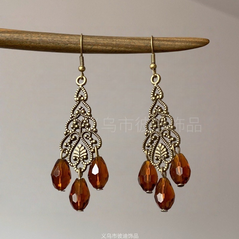 秋冬复古玻璃流苏耳环轻奢高级感耳钩个性时尚百搭耳饰设计感小众