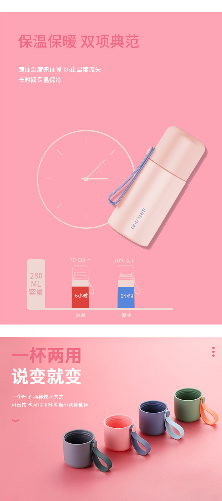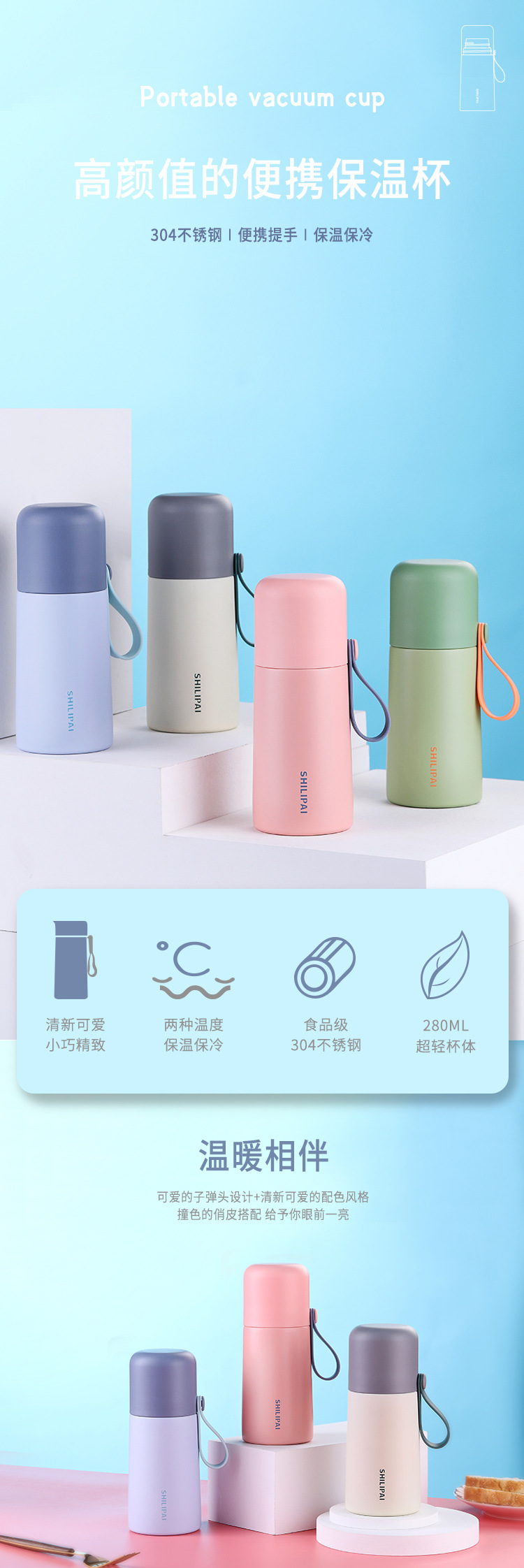 高颜值女生不锈钢子弹头保温杯儿童学生水杯焖茶杯礼品刻字随行杯