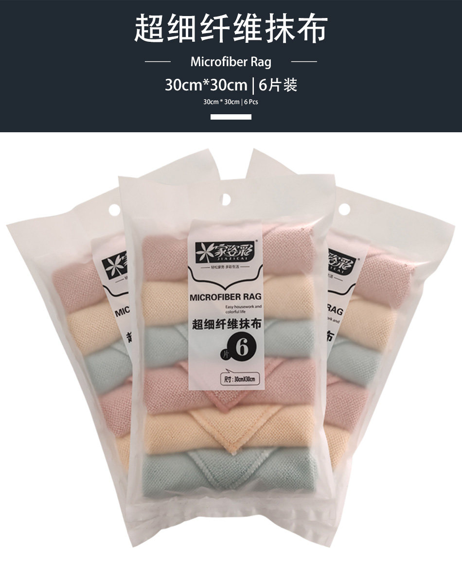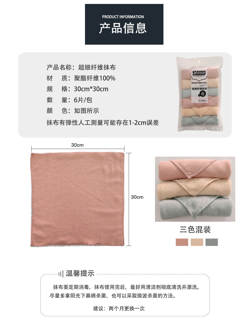 MB055超细纤维6片抹布厨房清洁吸水不易掉毛不沾油洗碗布