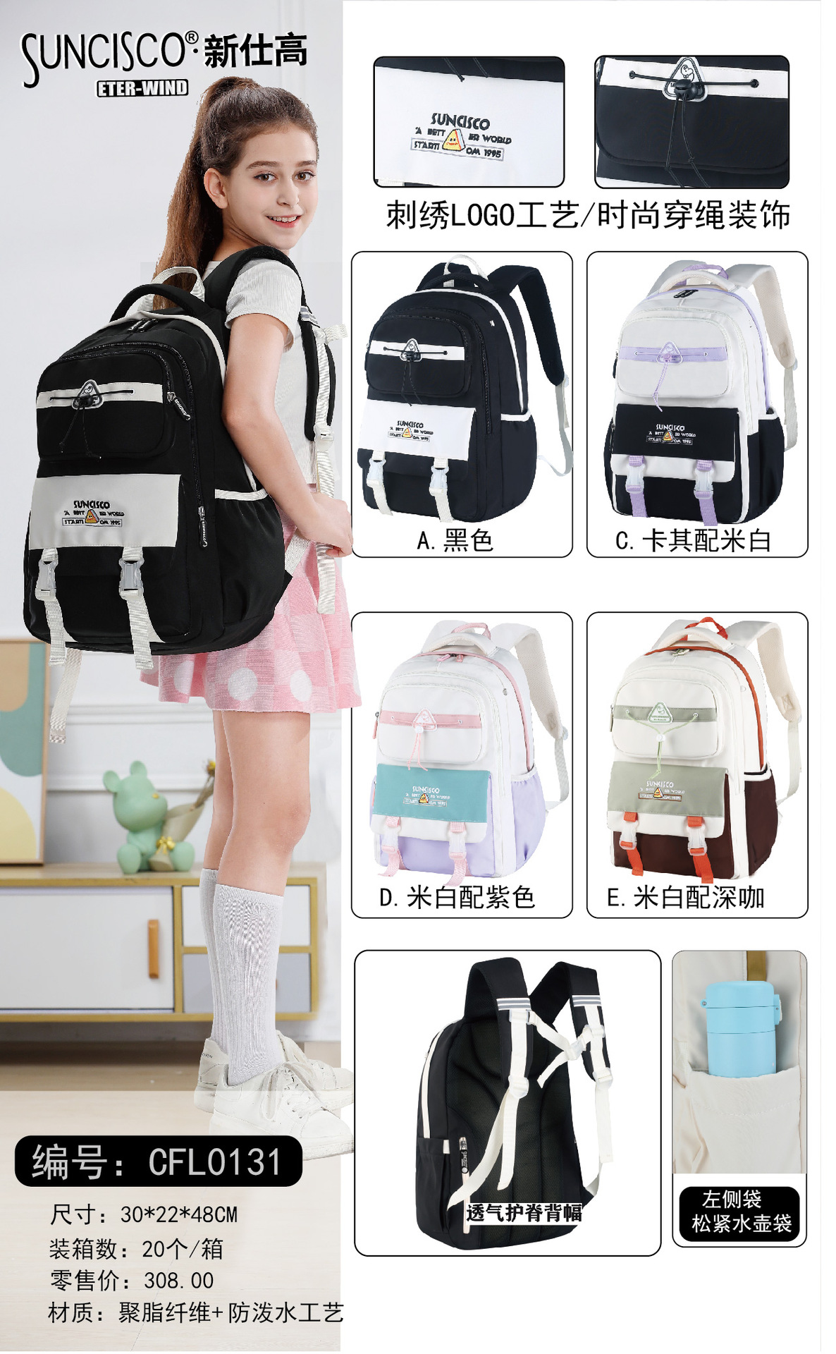 书包女校园风日系女生初中高中生大容量双肩包韩版大学生撞色背包