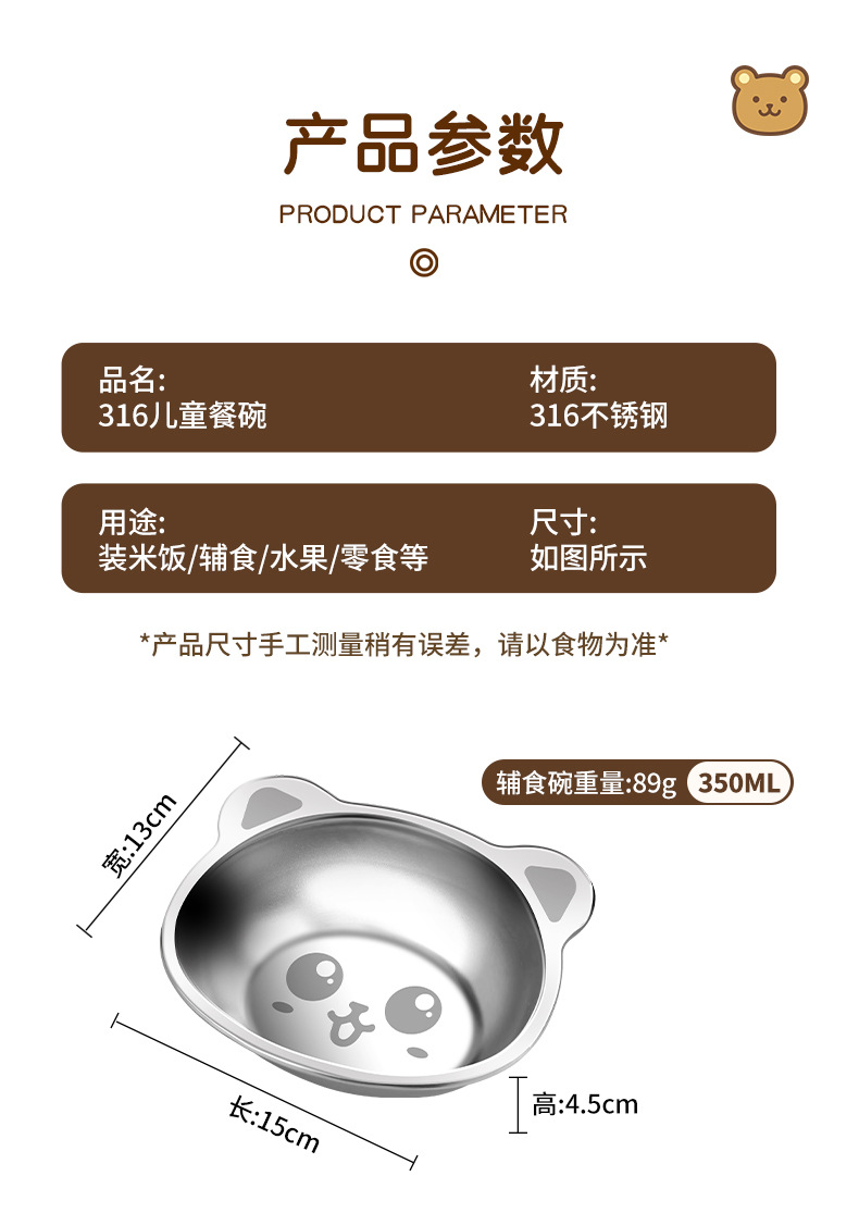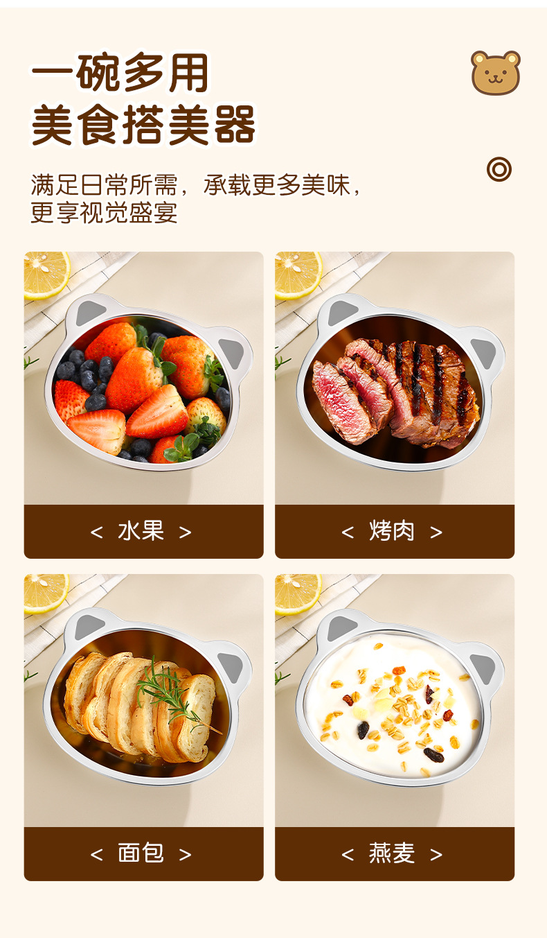 食品级316不锈钢碗儿童专用吃饭碗宝宝辅食小碗防摔餐具婴儿餐盘