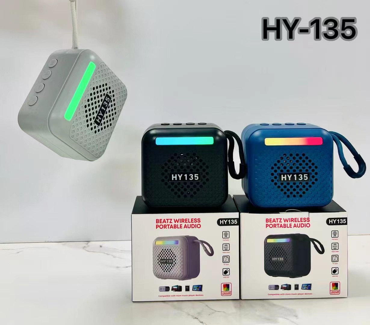 HY-135 跨境新款手提蓝牙音箱迷你插卡便携RGB彩灯户外礼品小音响