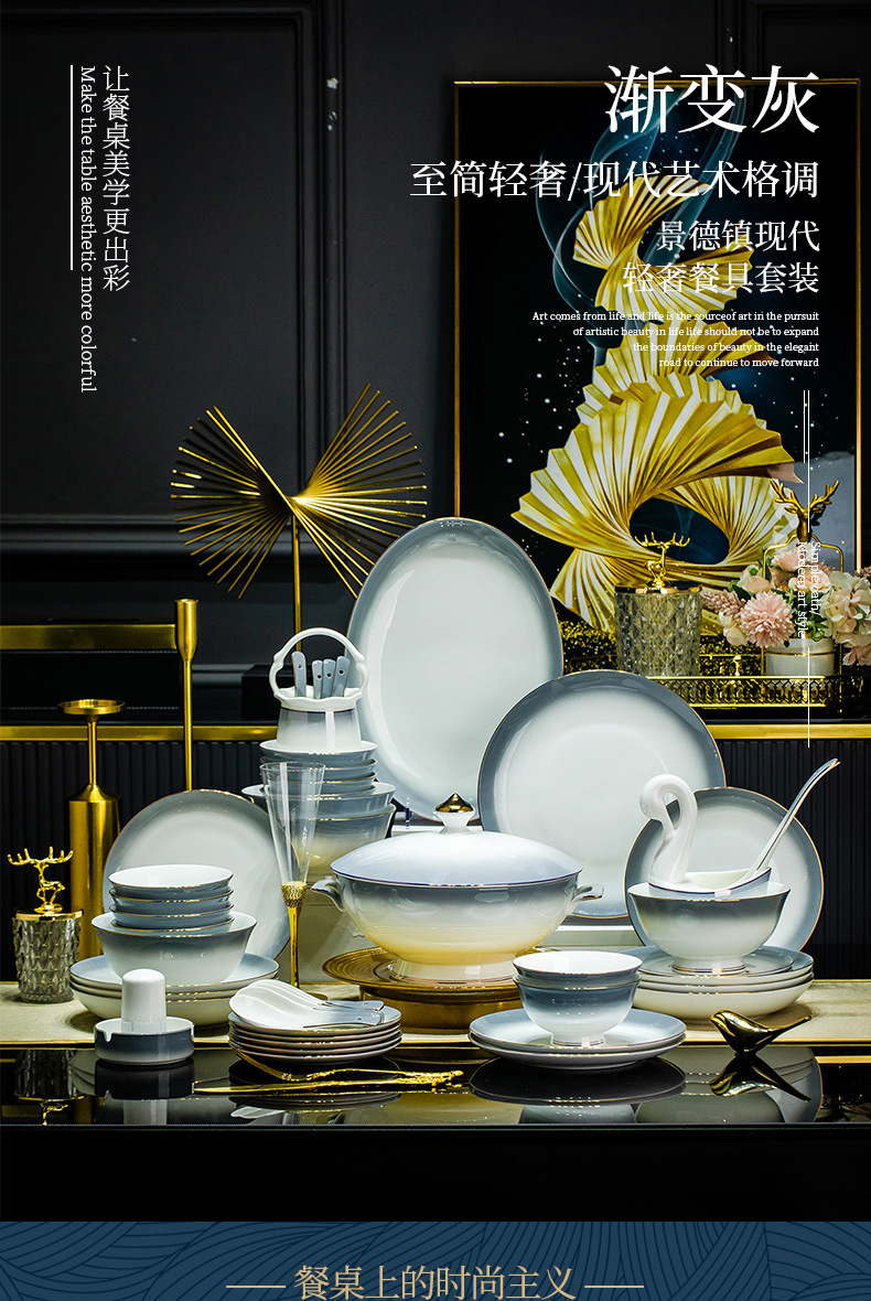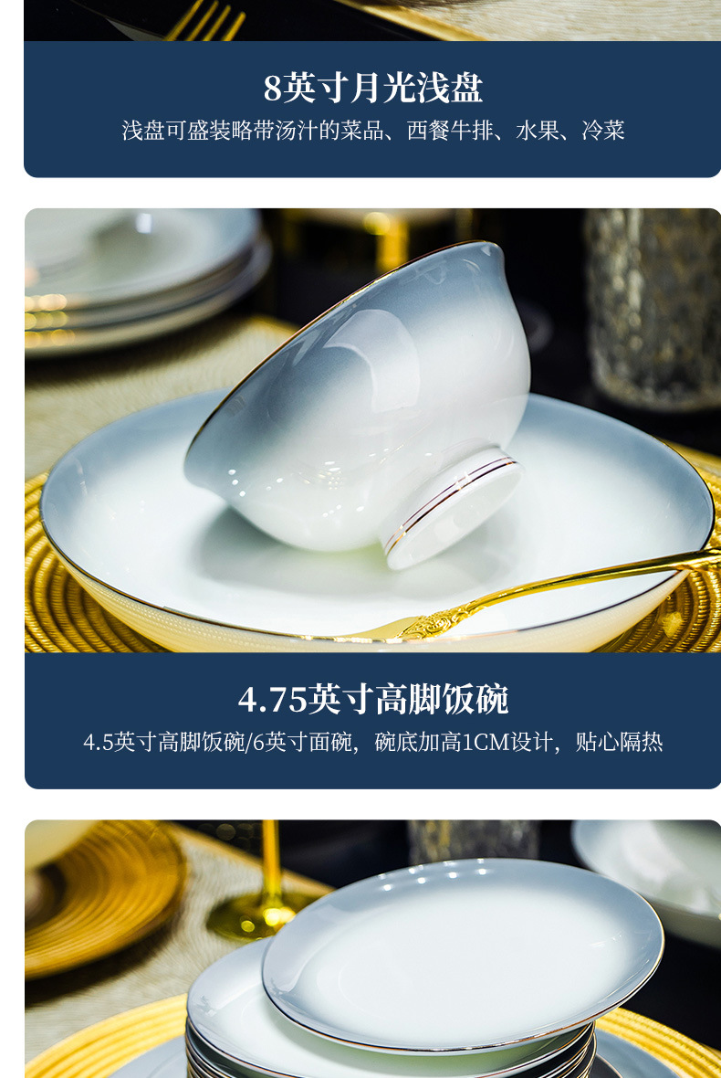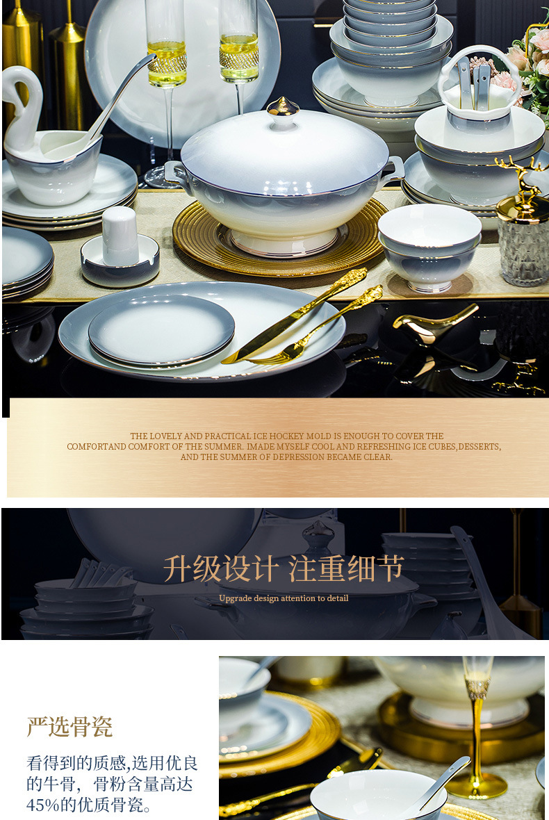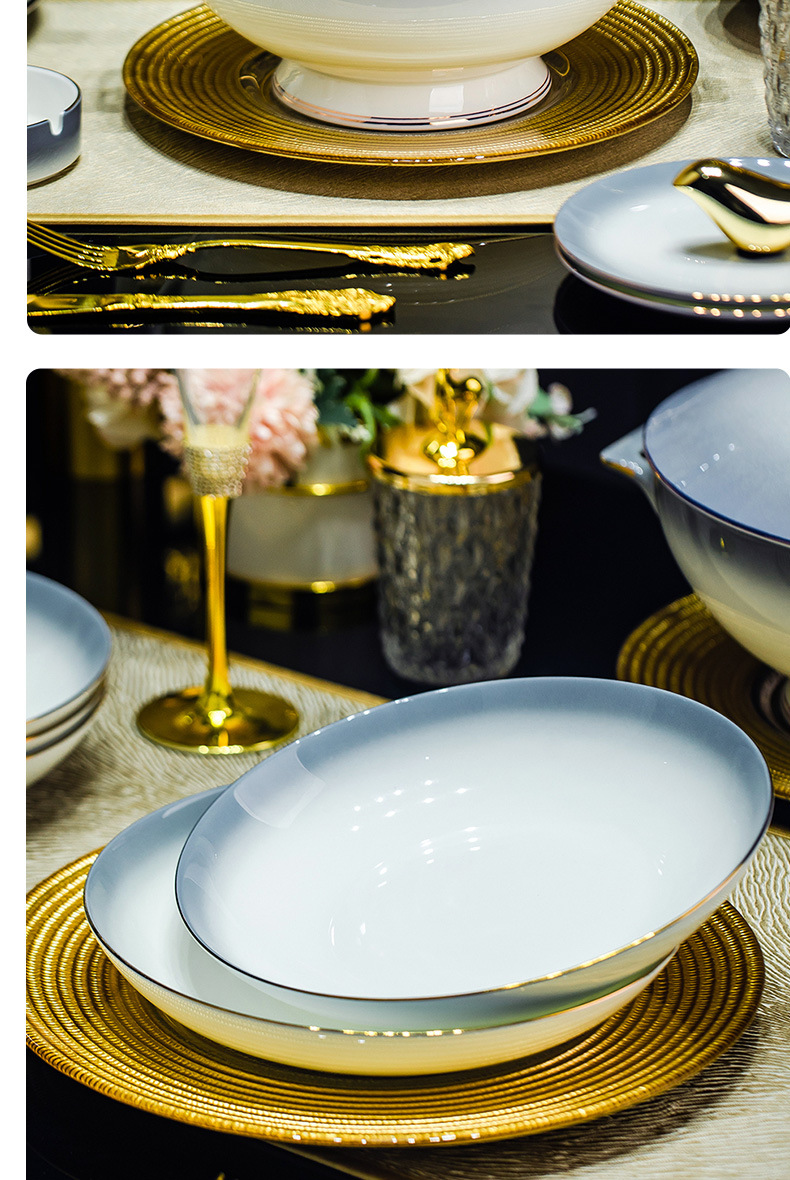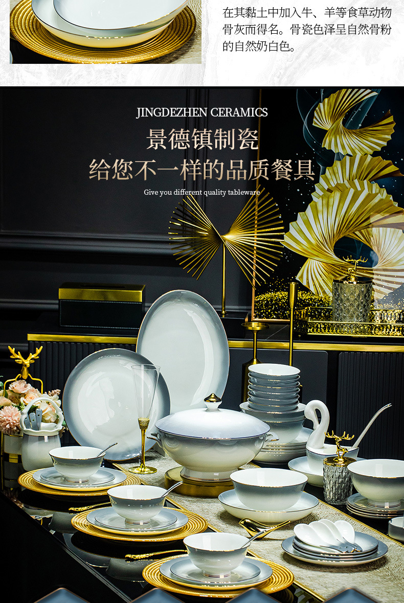 2024碗碟套装家用轻奢骨瓷餐具景德镇碗盘组合乔迁碗筷盘子陶瓷器