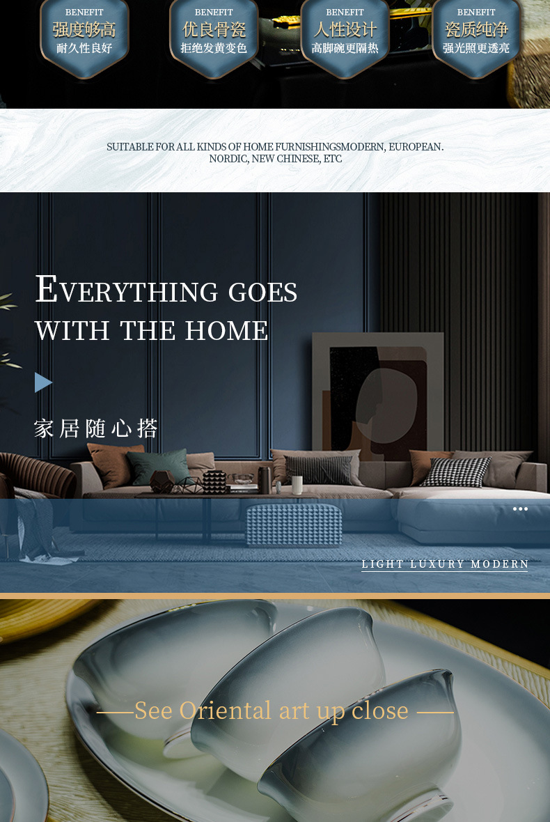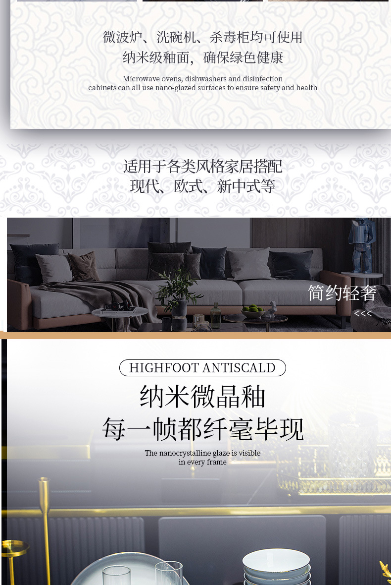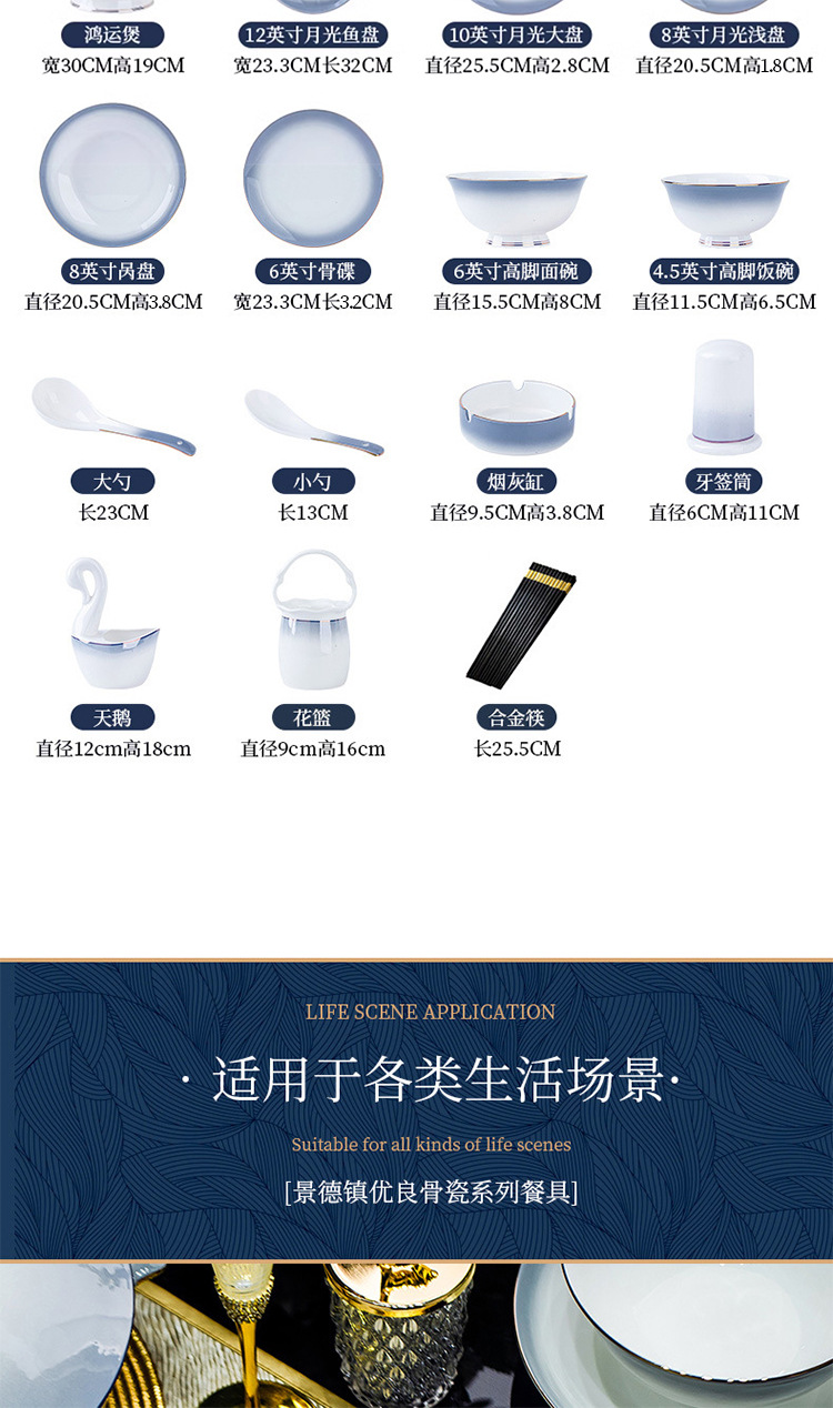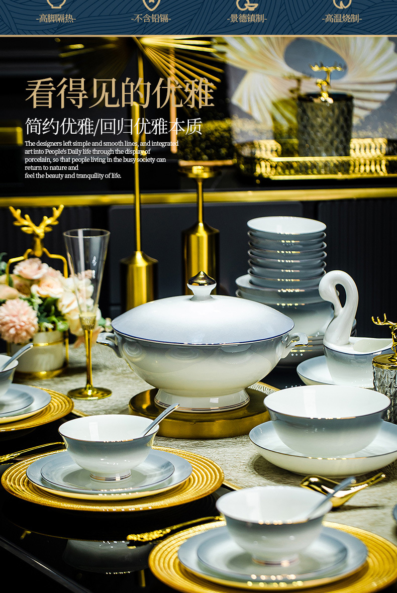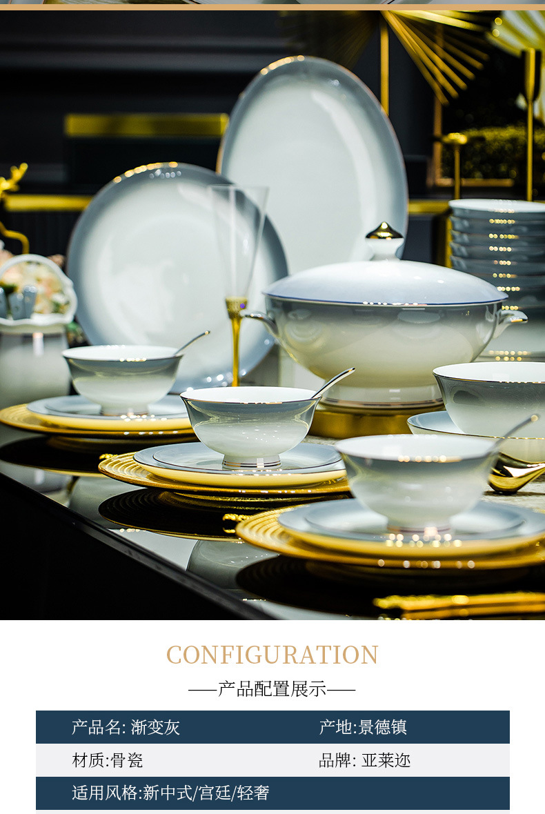 2024碗碟套装家用轻奢骨瓷餐具景德镇碗盘组合乔迁碗筷盘子陶瓷器