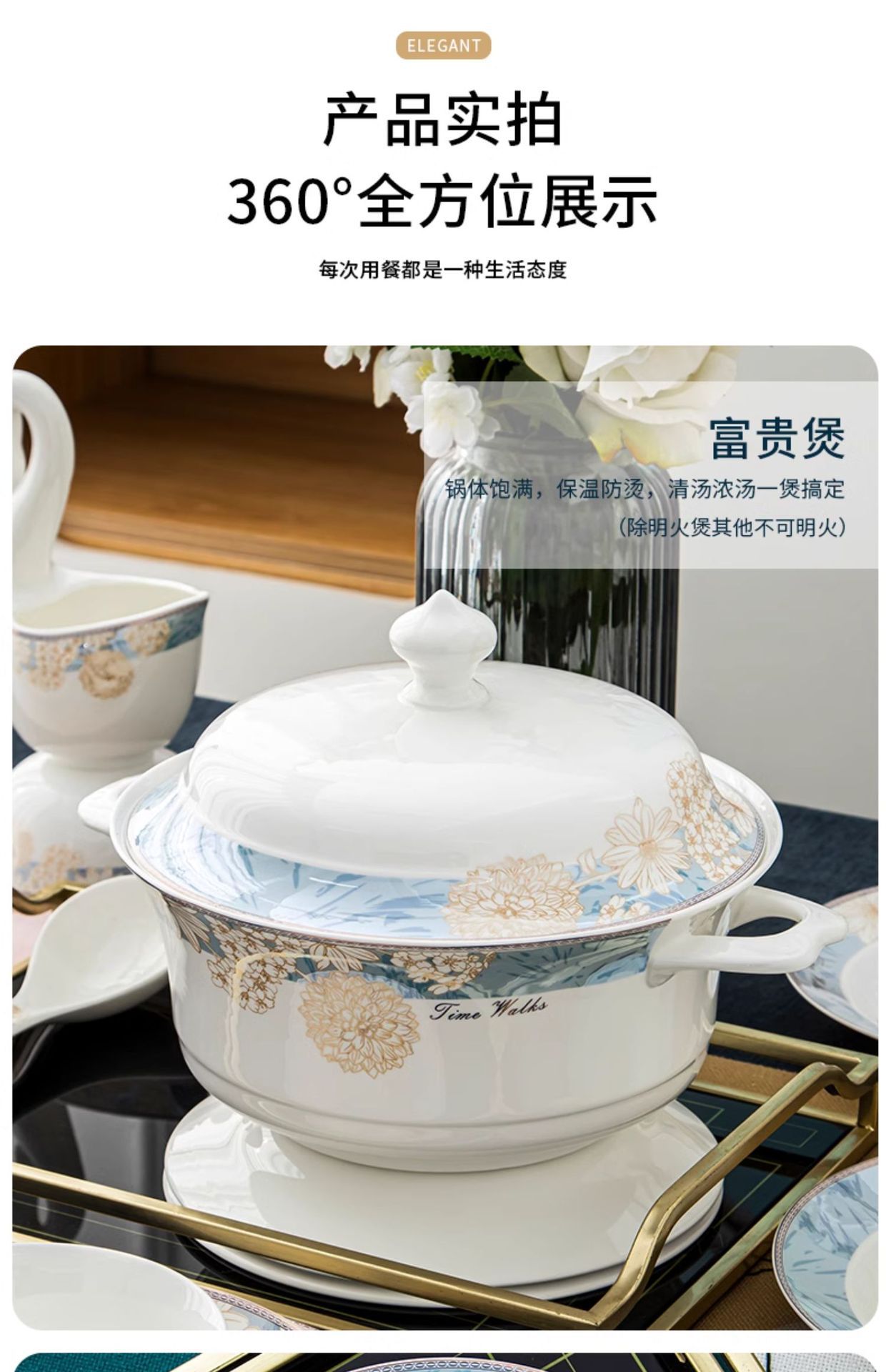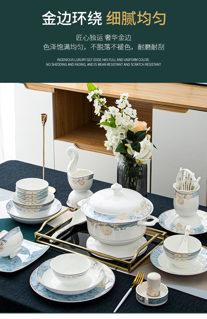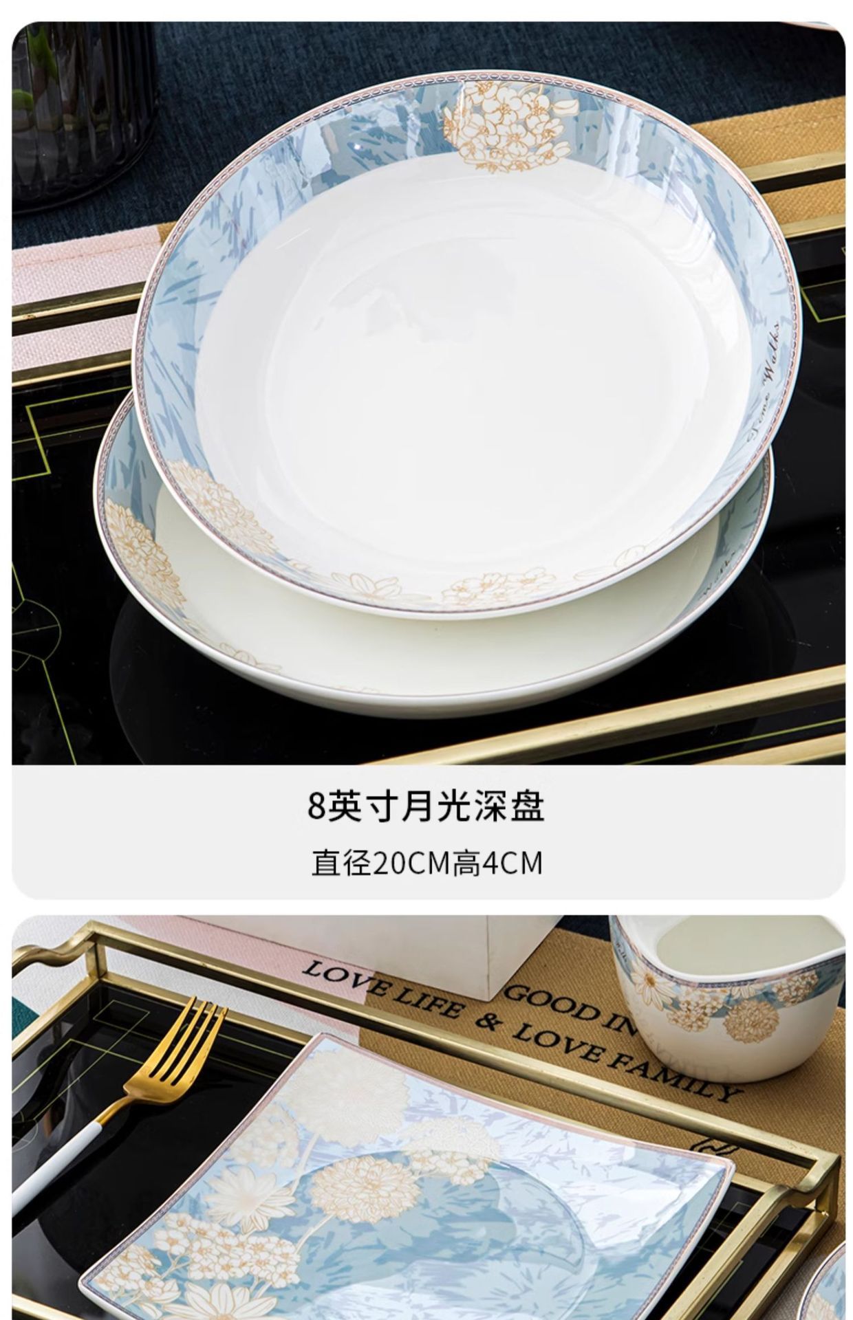 景德镇餐具套装送礼DIY现代中式骨瓷餐具套装碗盘家用组合