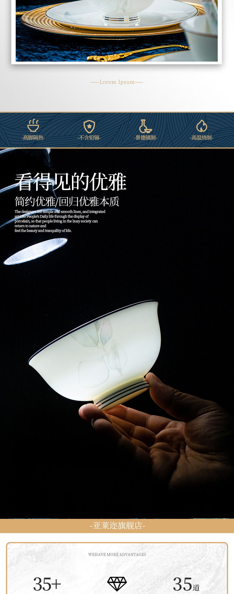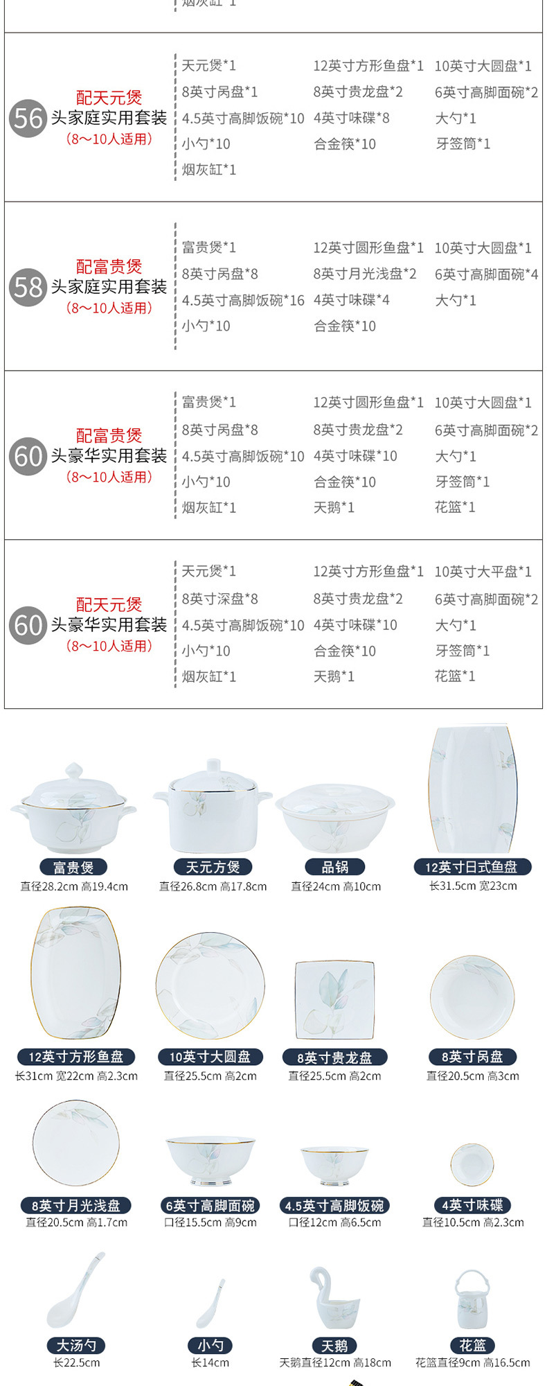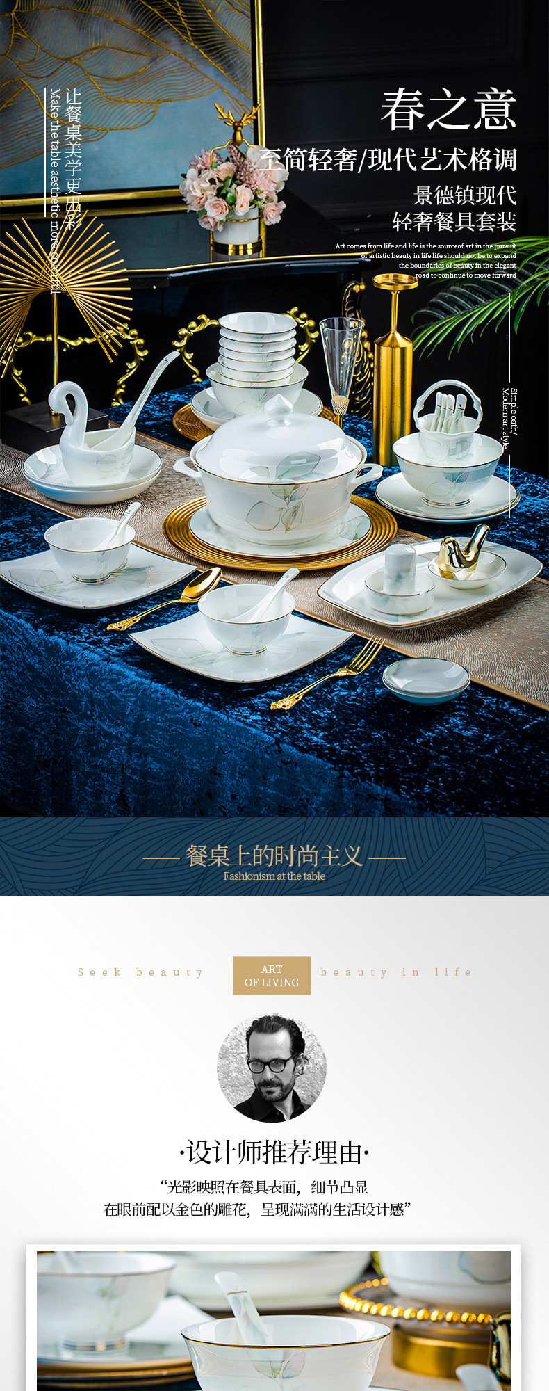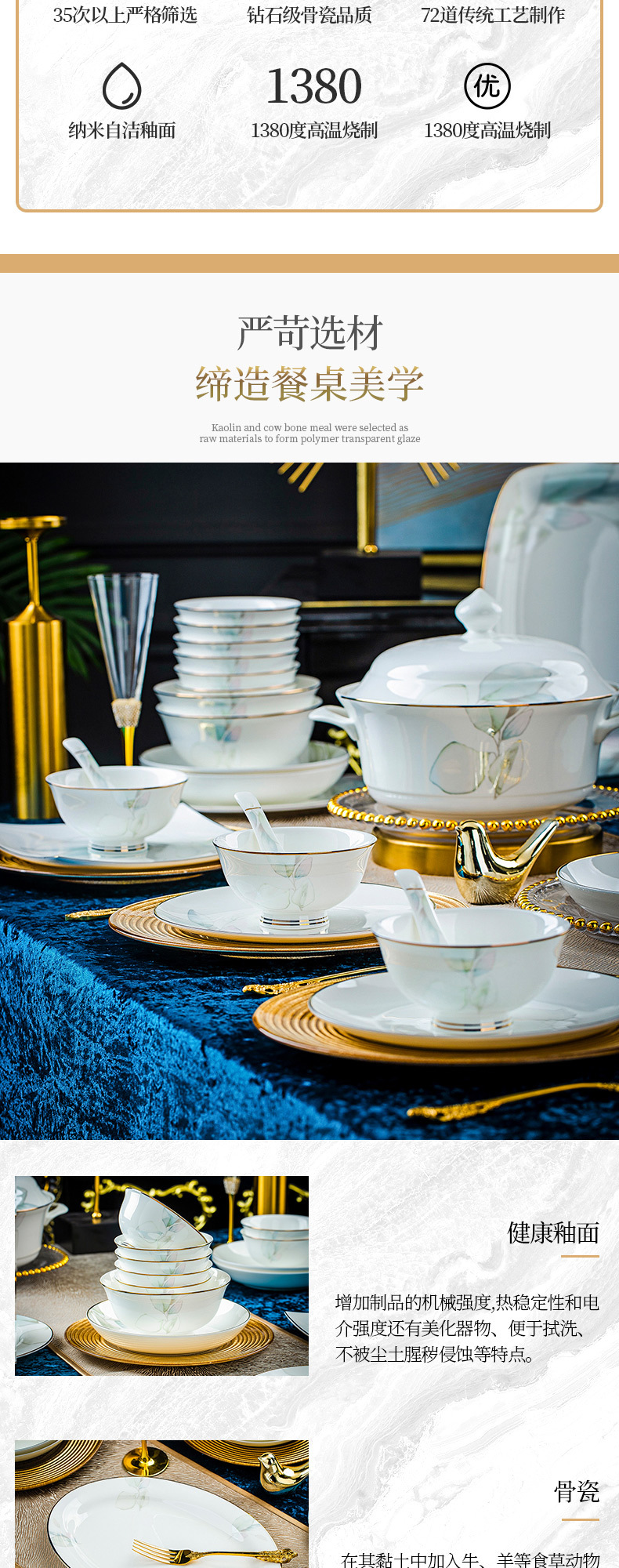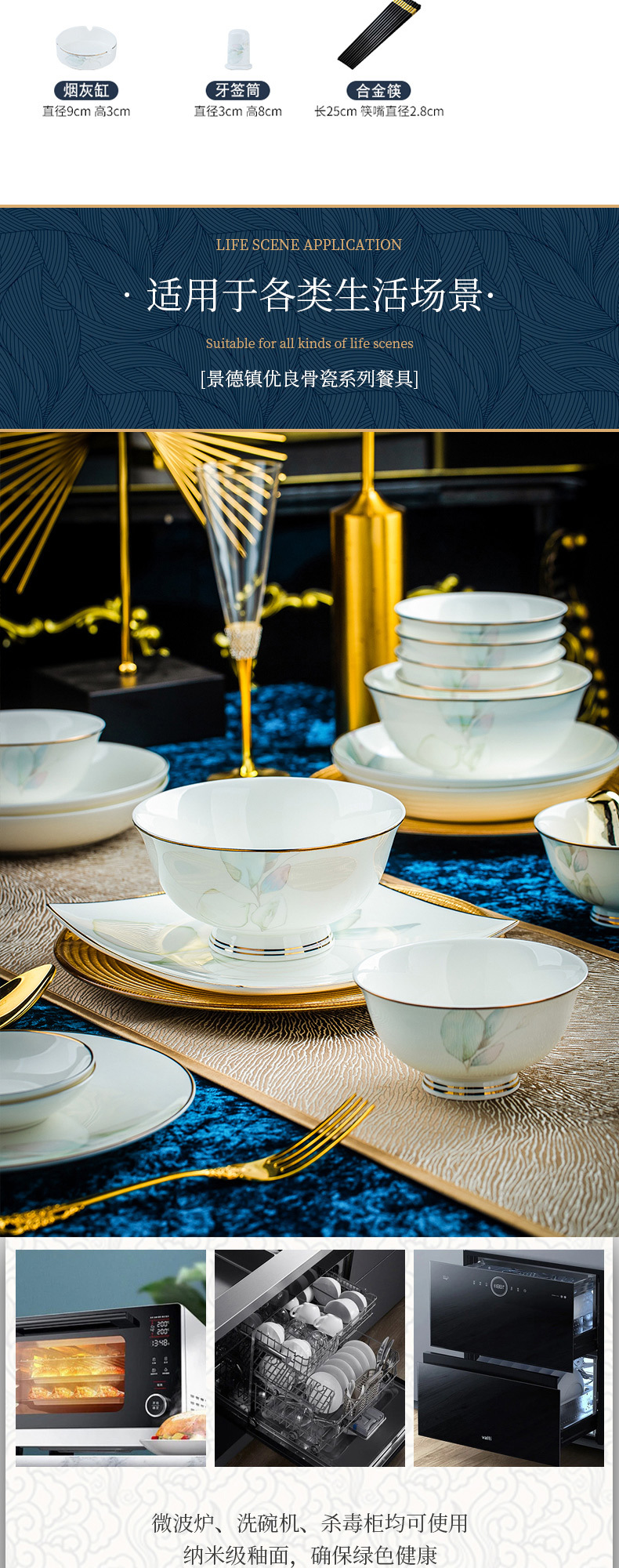 碗碟套装家用轻奢骨瓷餐具景德镇碗盘组合乔迁碗筷盘子陶瓷器