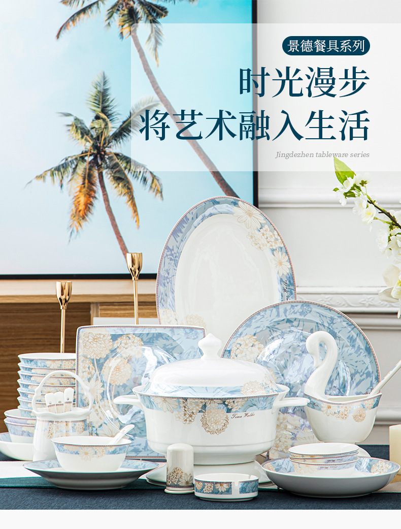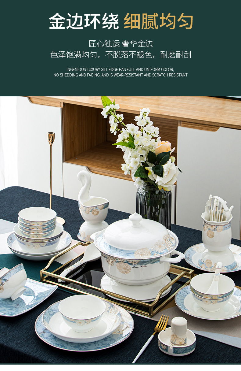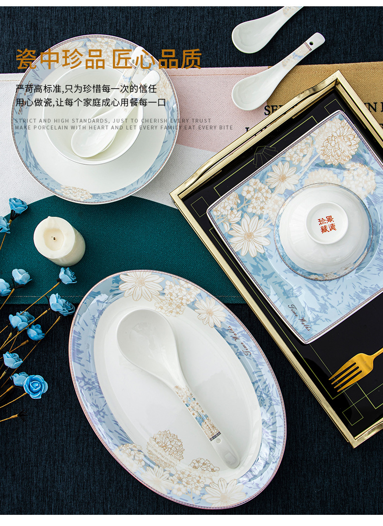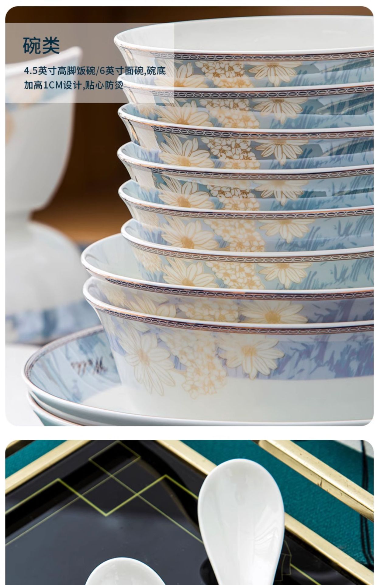 2025新款碗碟套装家用现代轻奢景德镇陶瓷骨瓷餐具套装碗盘家用