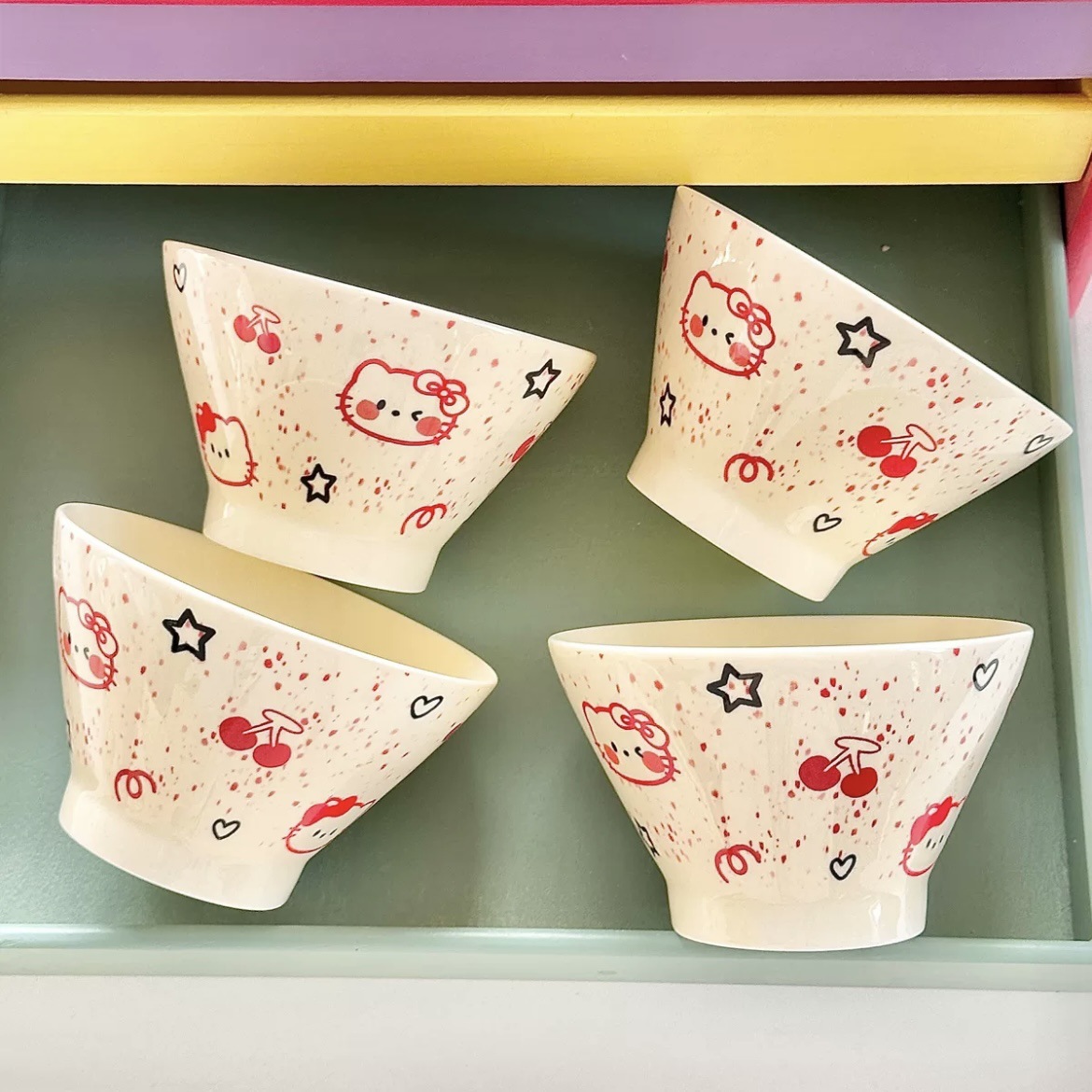 日式卡通5寸陶瓷碗斗笠碗高颜值网红米饭碗家用饭碗水果碗酸奶碗