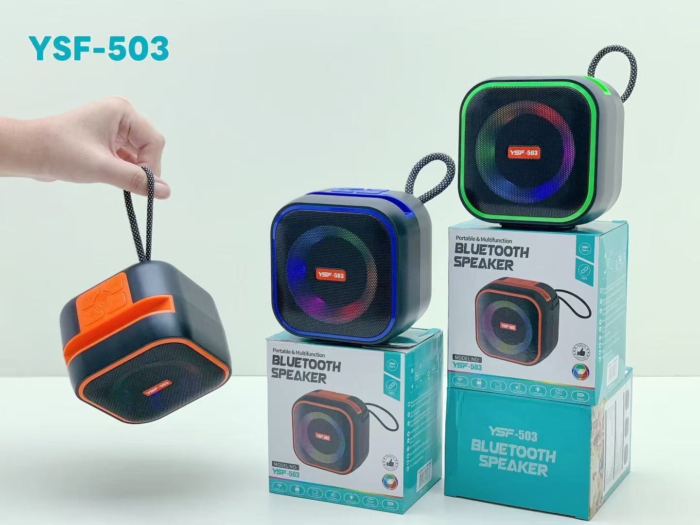 YSF-503跨境手提蓝牙音箱小钢炮户外RGB灯低音炮便携手机支架音响