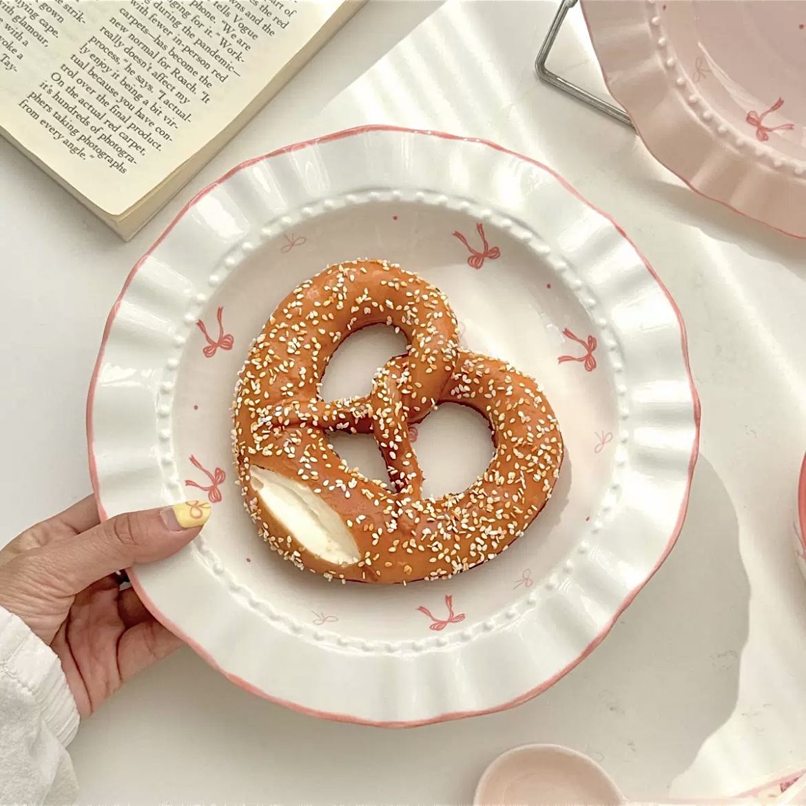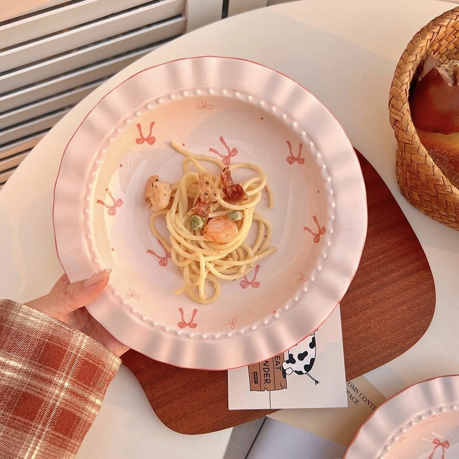 蝴蝶结盘子陶瓷餐具高温釉下彩少女心可爱家用深盘早餐盘甜品盘