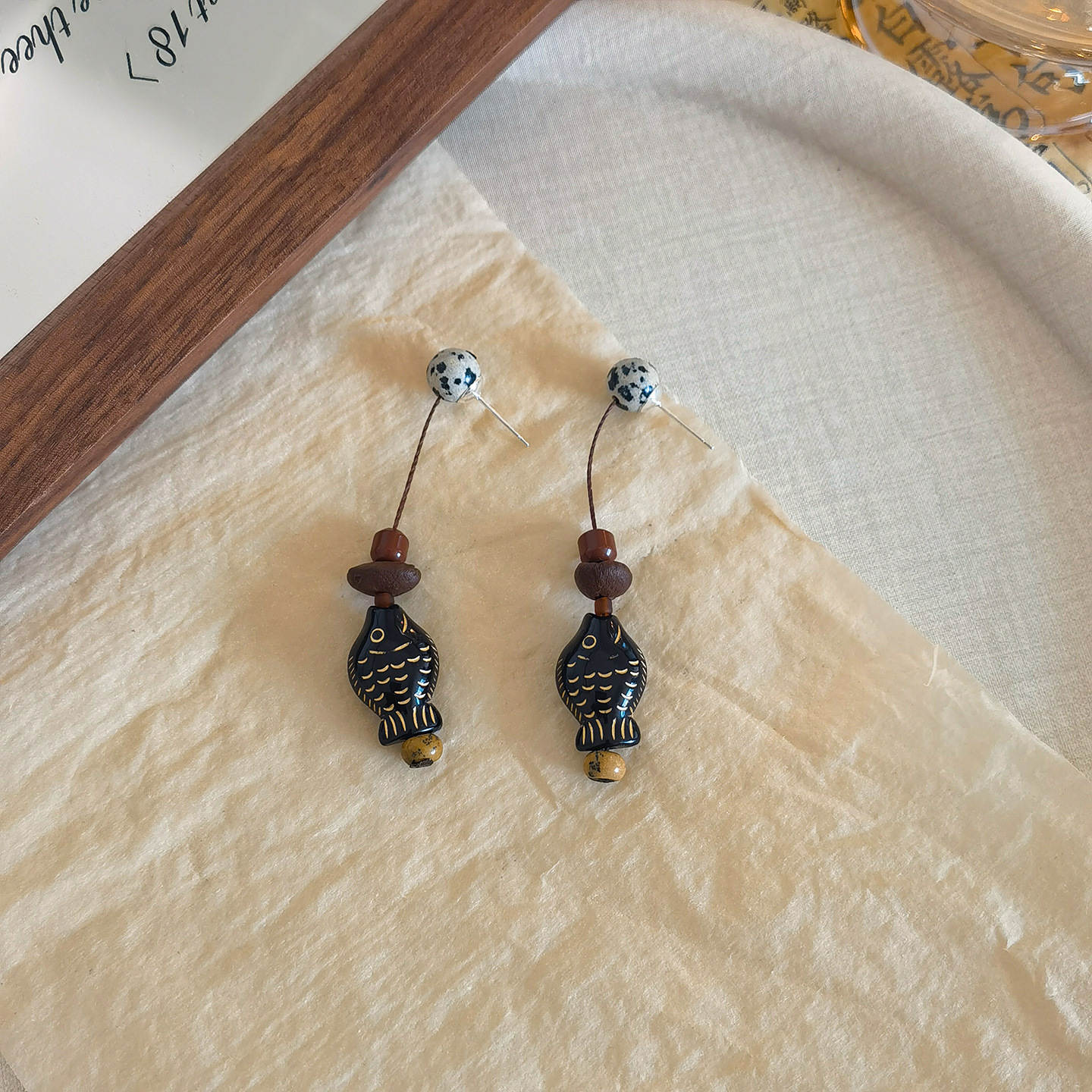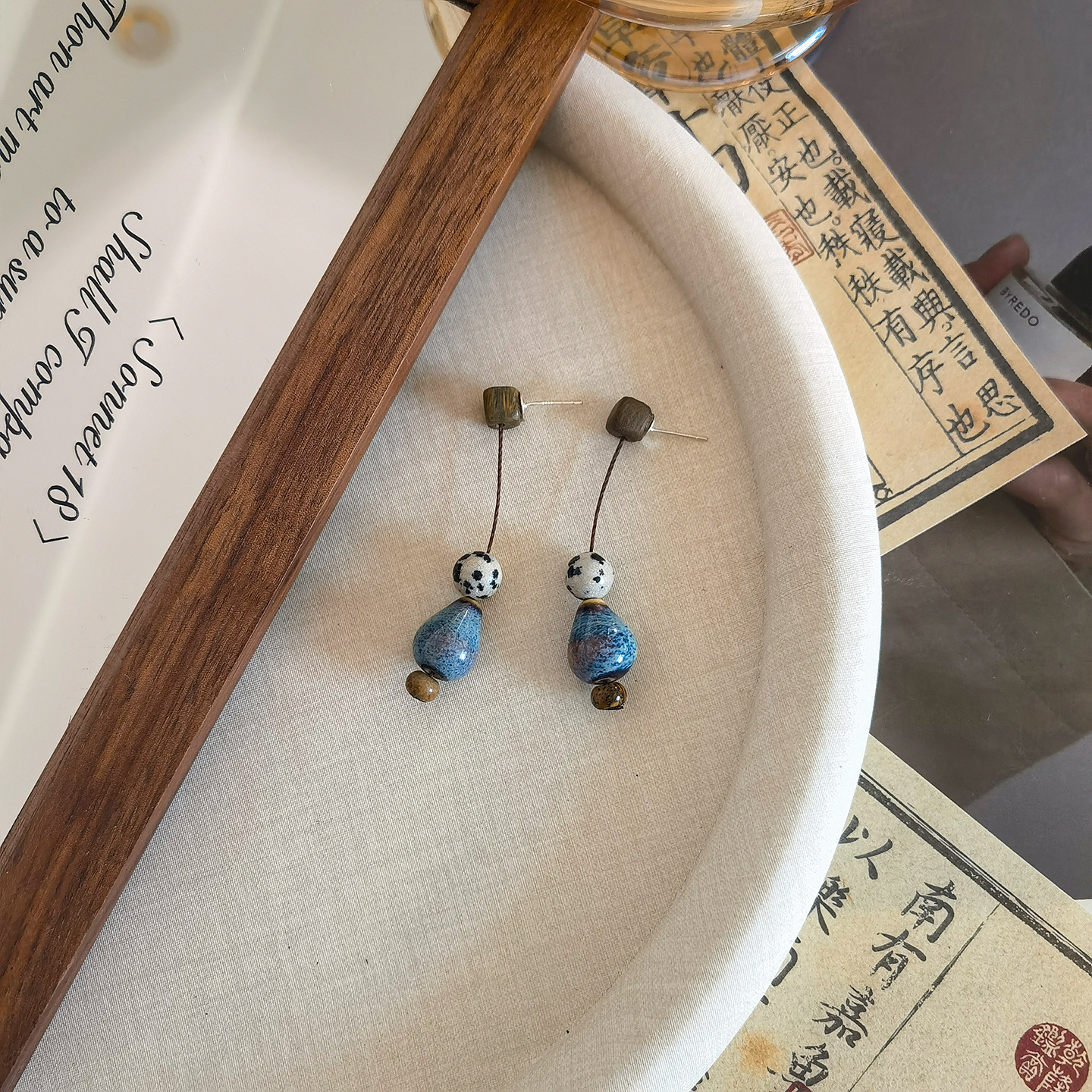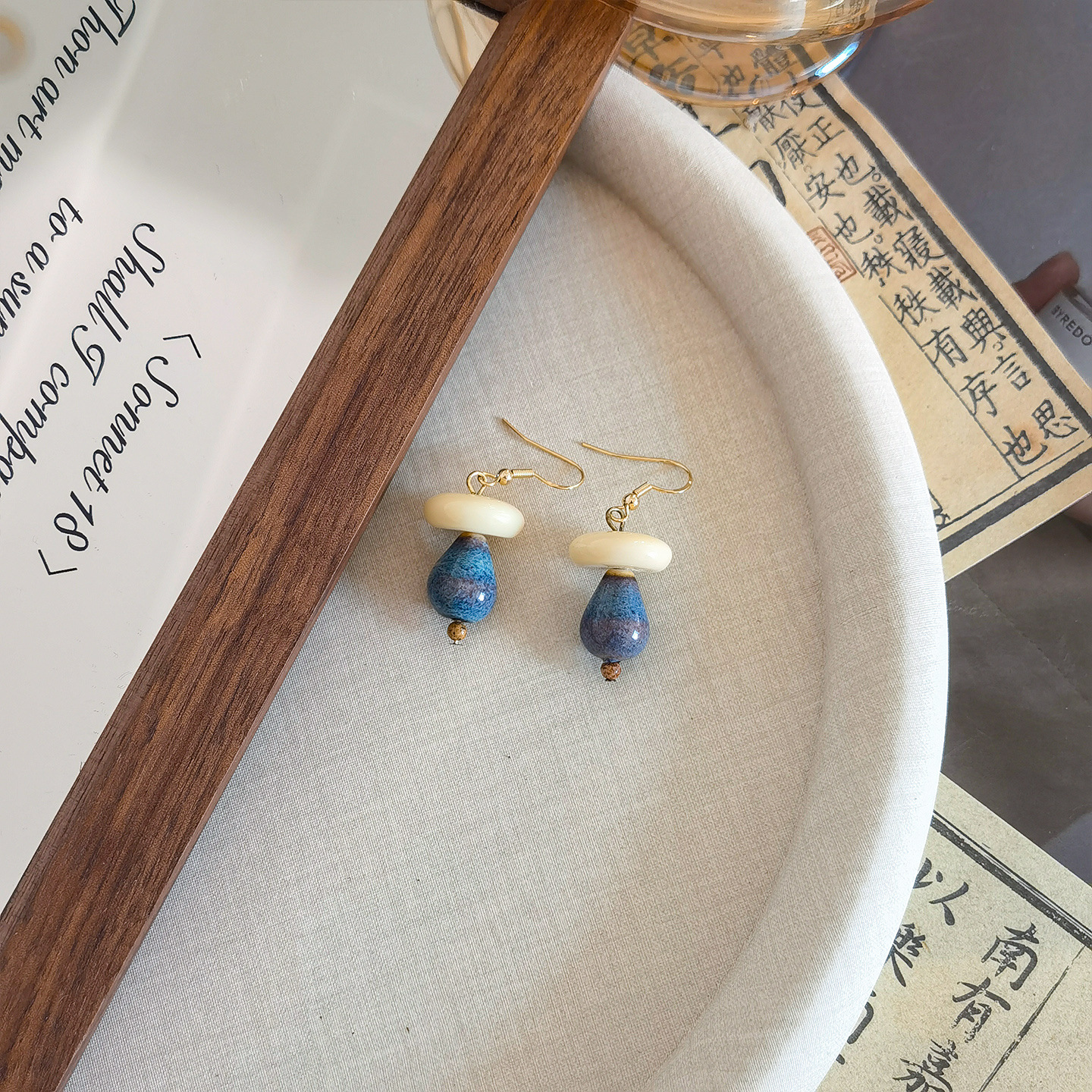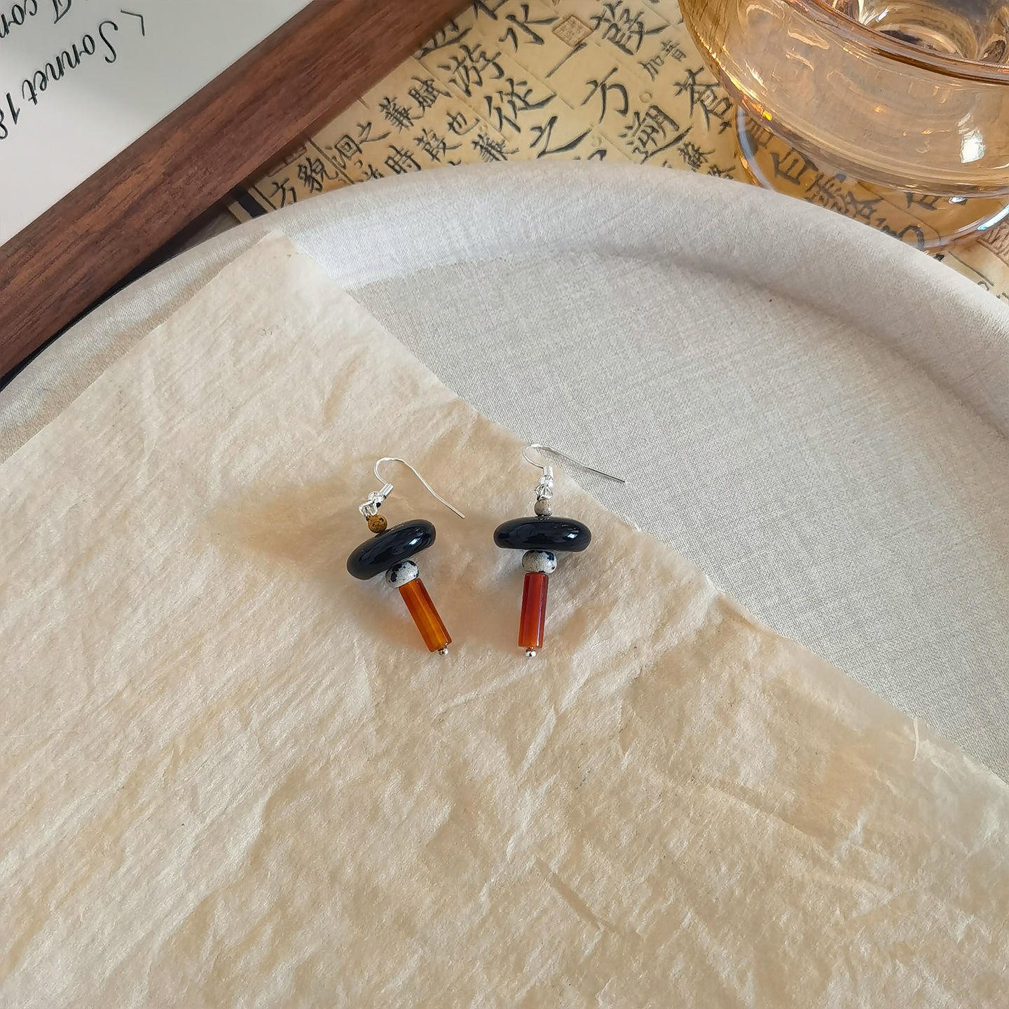 原创设计天然石真咖啡豆陶瓷手作耳环合集小众设计感咖啡耳钉耳饰
