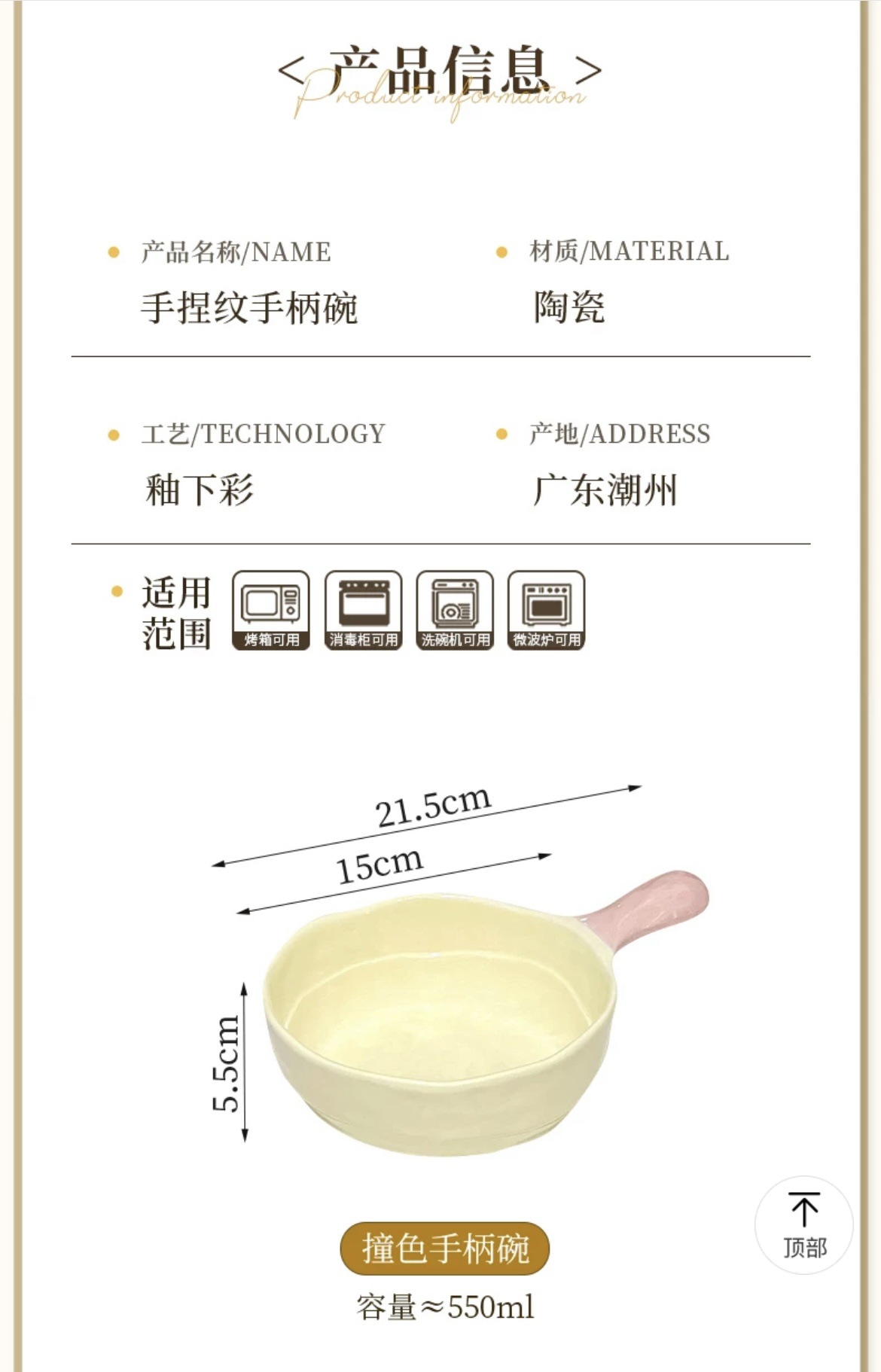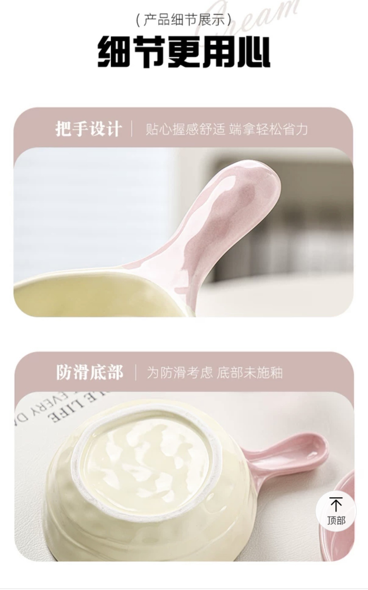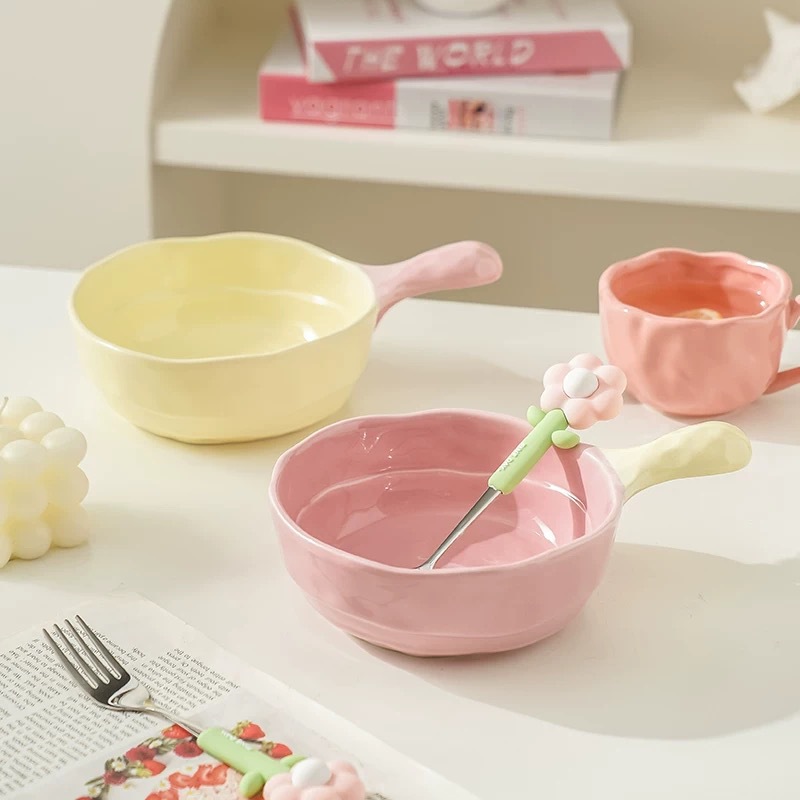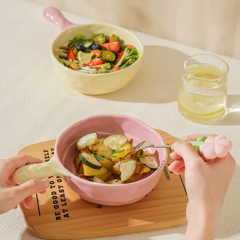 韩国ins手柄碗陶瓷烤碗高颜值陶瓷餐具宿舍学生水果沙拉碗泡面碗