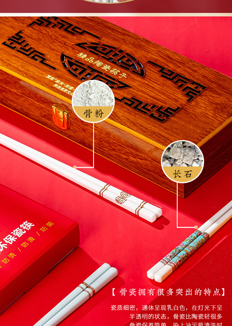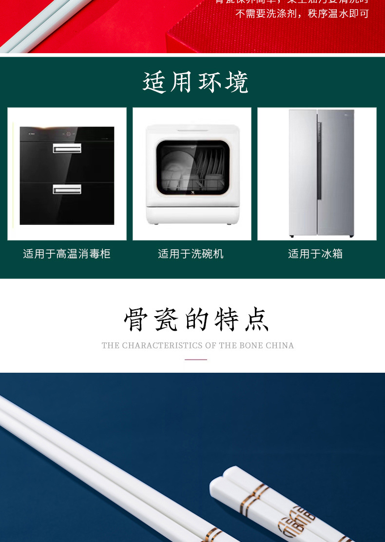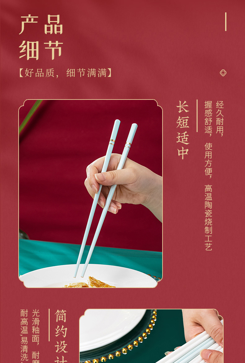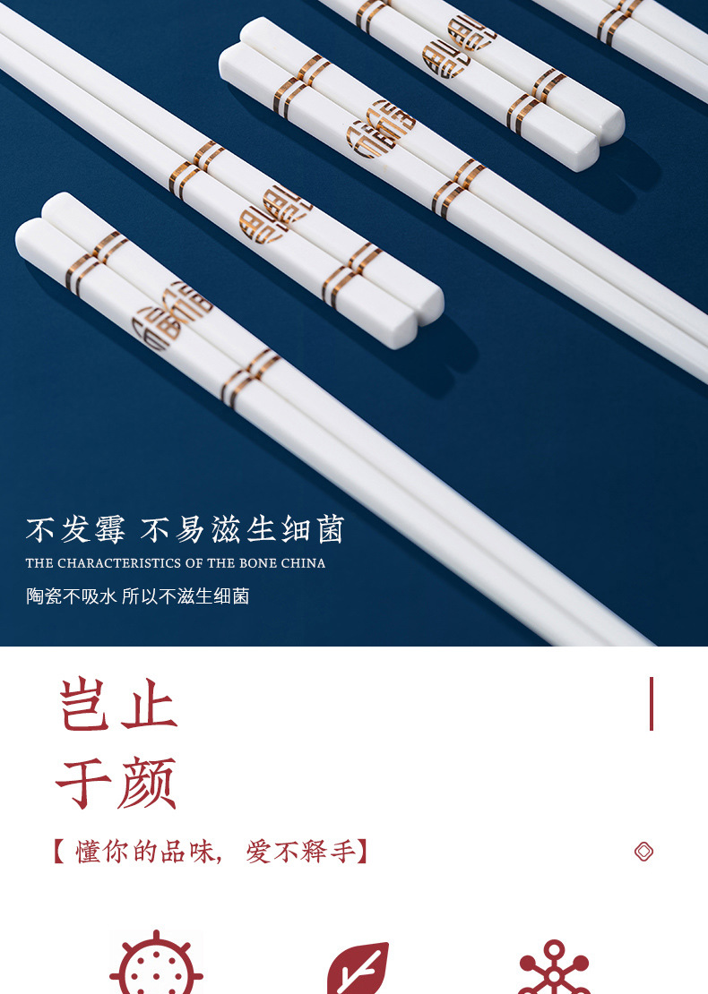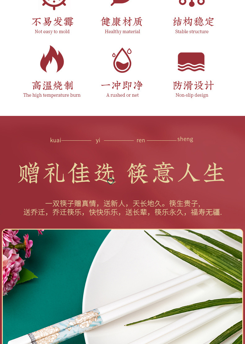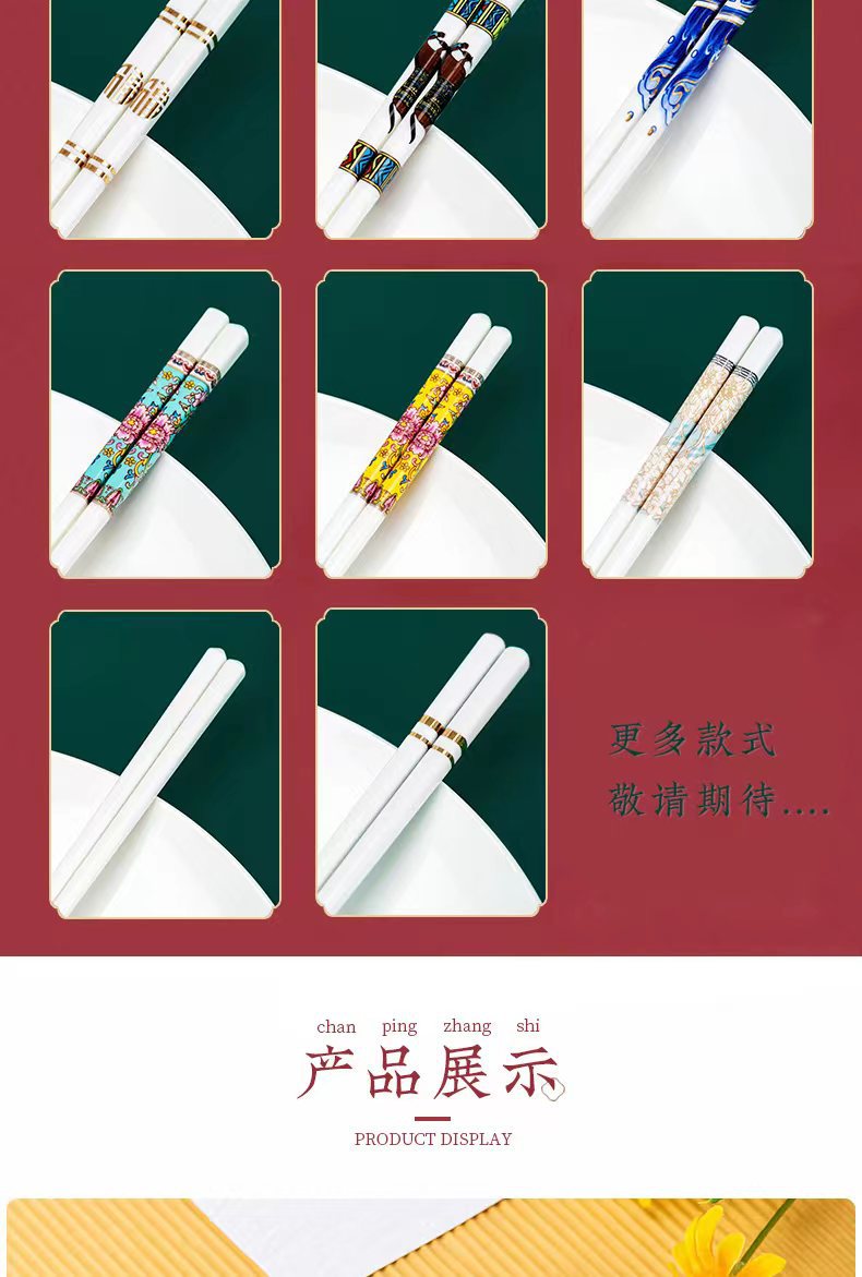 陶瓷筷子家用批发景德镇高温骨瓷筷子防滑防霉新中式家庭筷子公筷