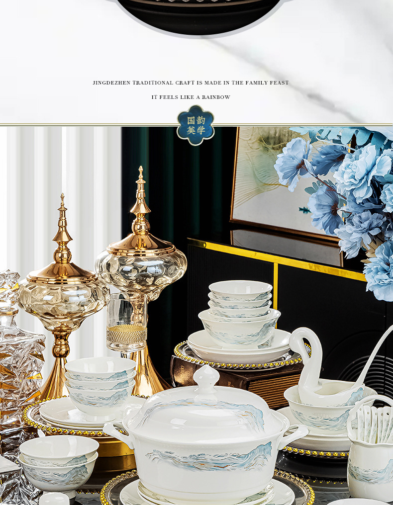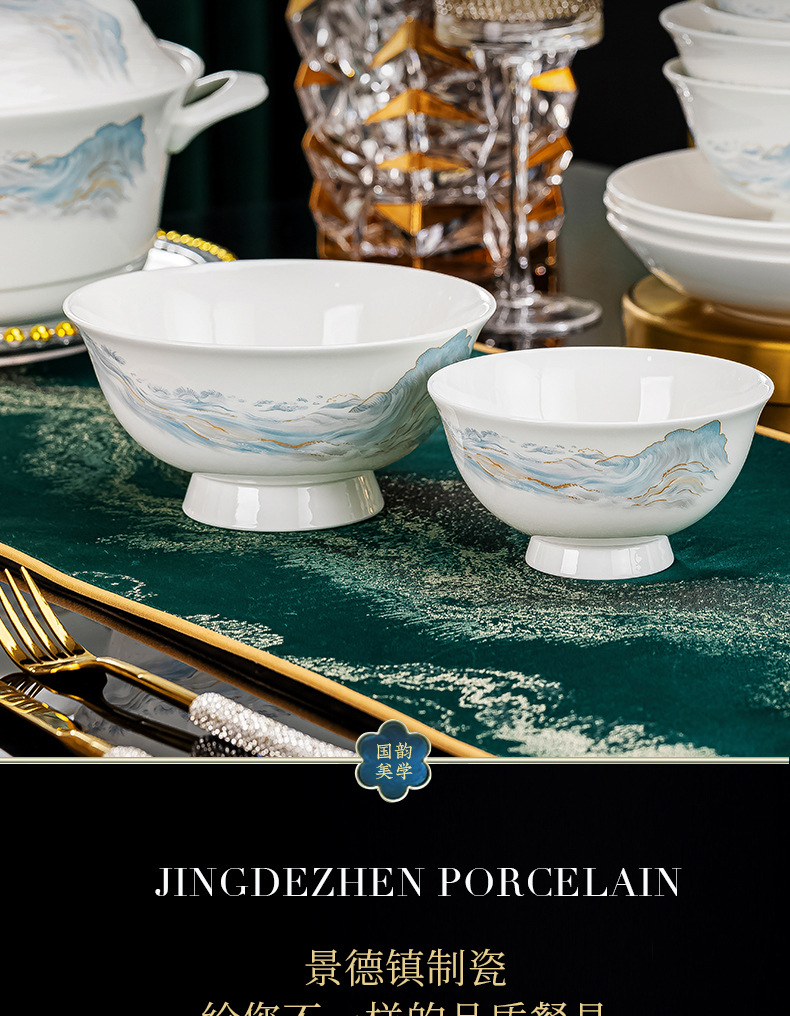 景德镇高端陶瓷餐具2025新款中式碗碟套装家用高级感碗盘活动送礼