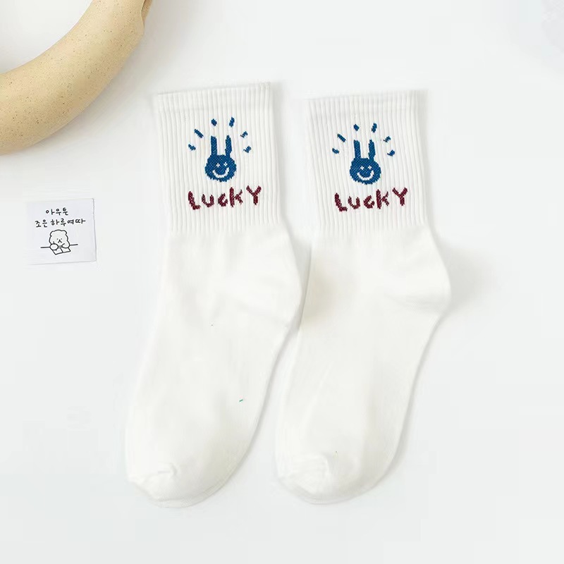 小熊中筒袜子女ins潮日系可爱卡通网红长袜韩国秋冬白色透气袜子