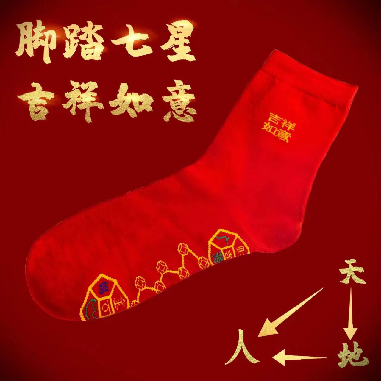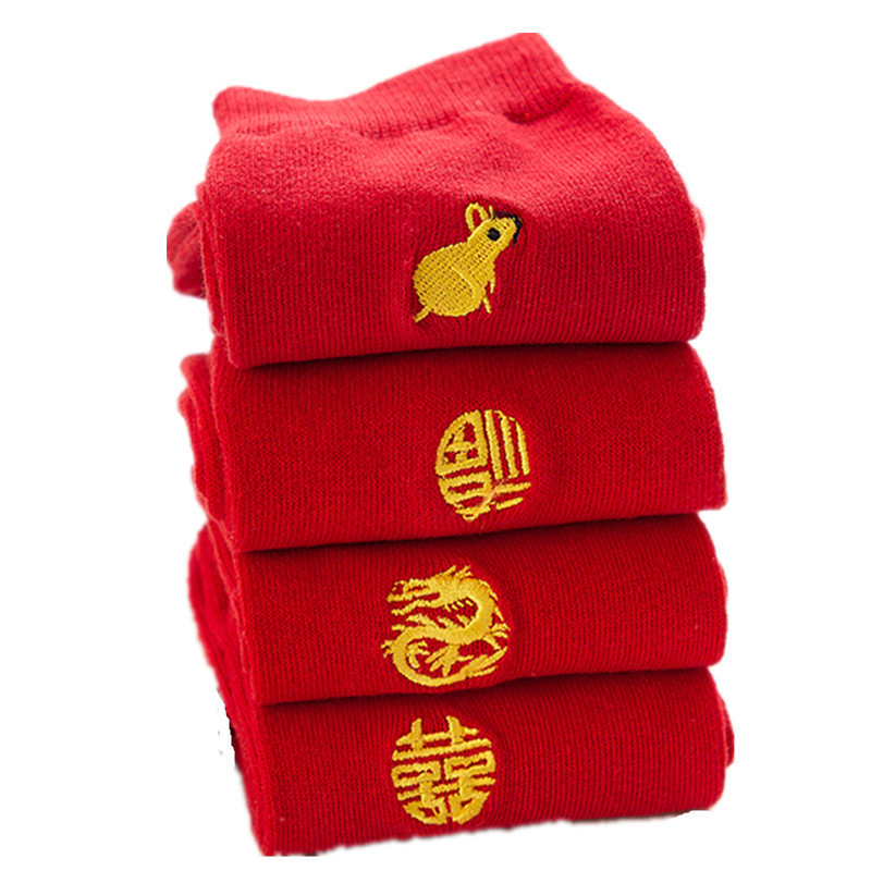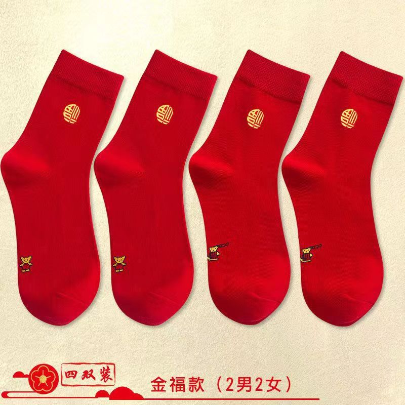 龙年红袜子男本命年中筒红袜子秋冬款棉袜大红色新年结婚喜庆女袜
