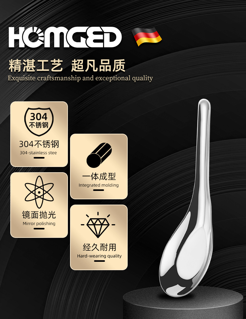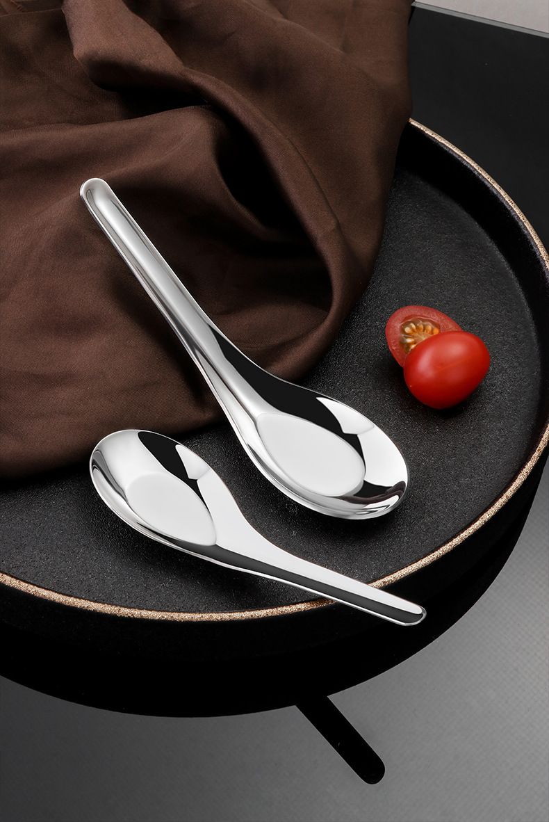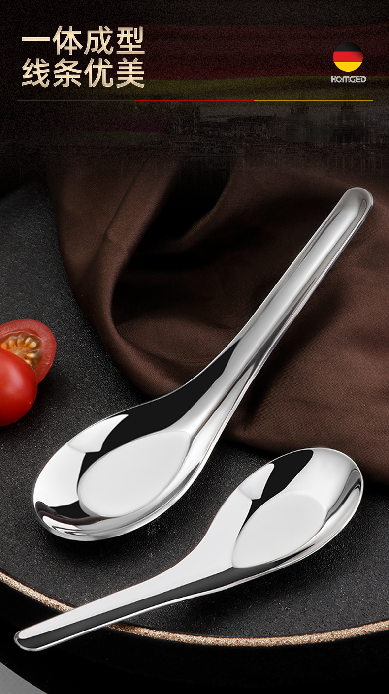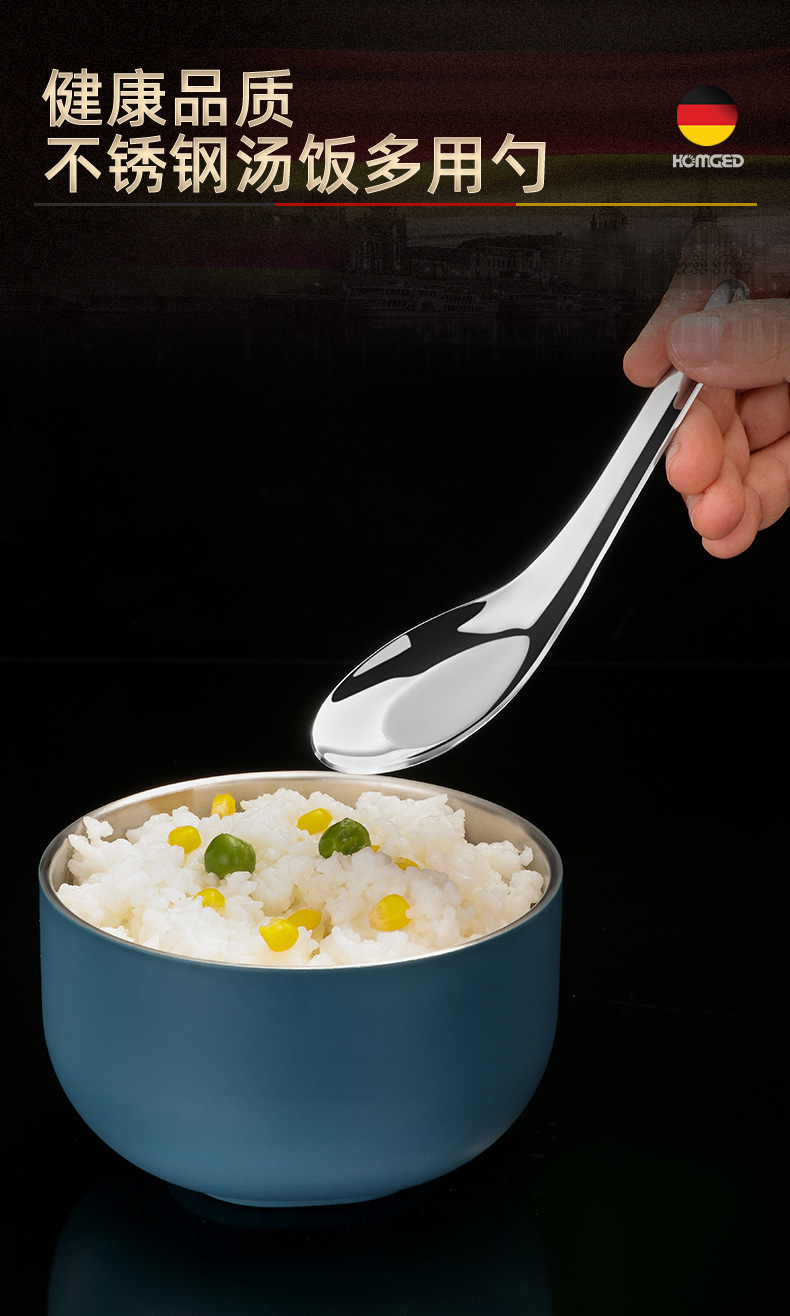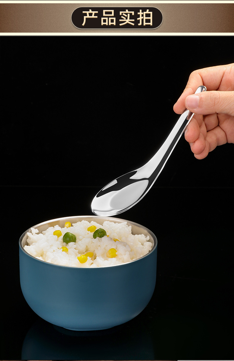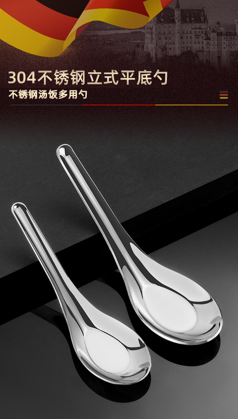 跨境304不锈钢勺子家用平底勺汤匙中式调羹吃饭汤勺logo加厚耐用