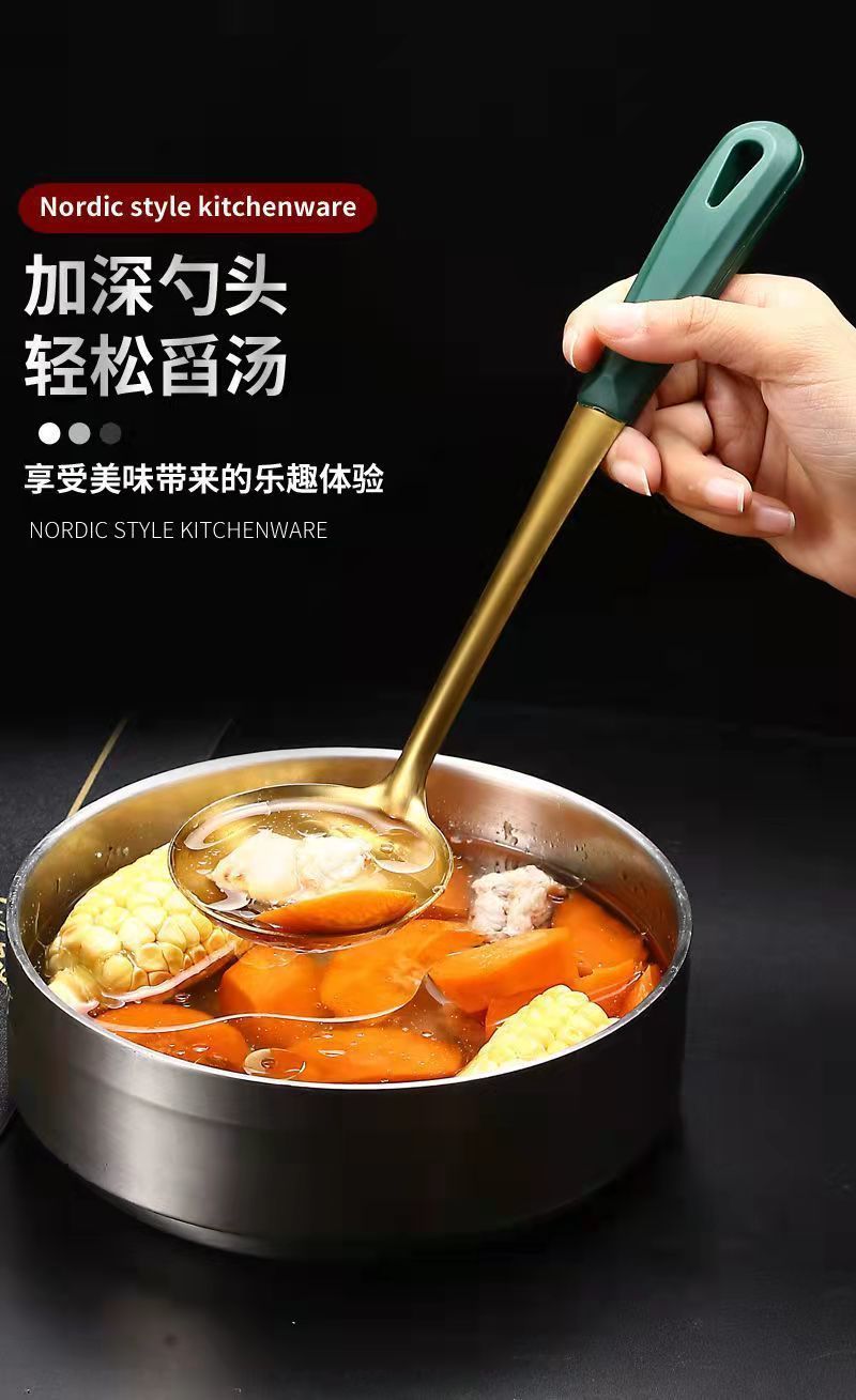 304不锈钢加厚火锅勺 家用厨具长柄大汤勺烹饪汤勺漏勺套装批发