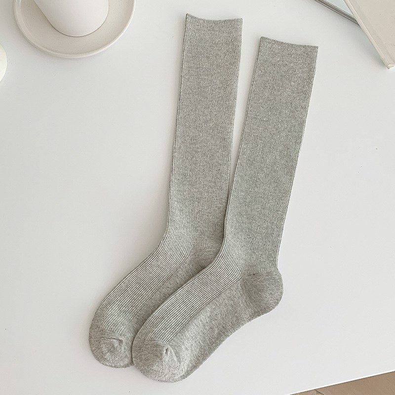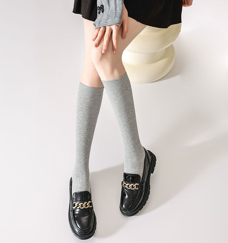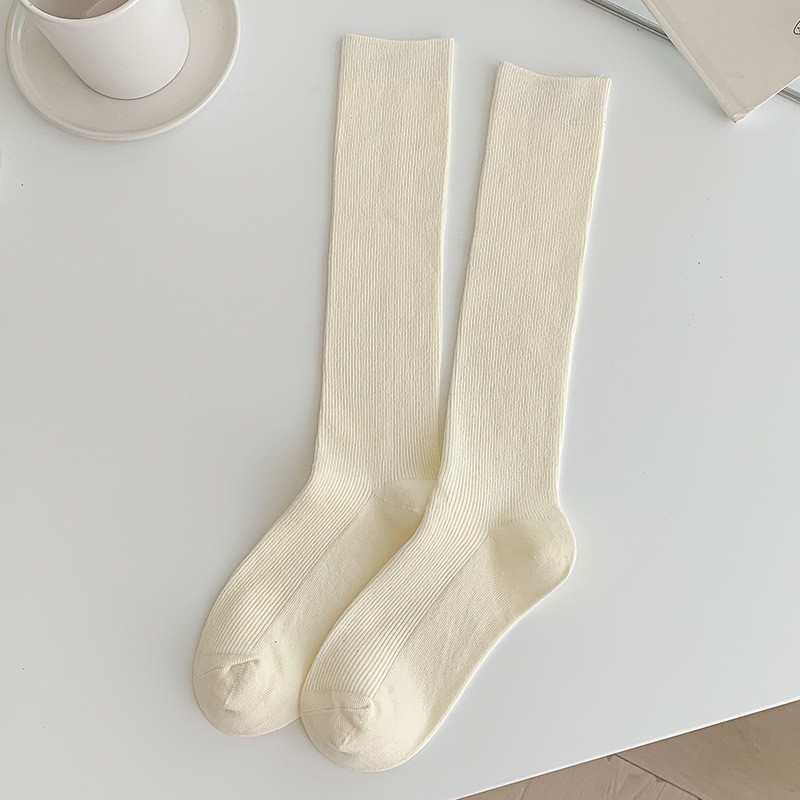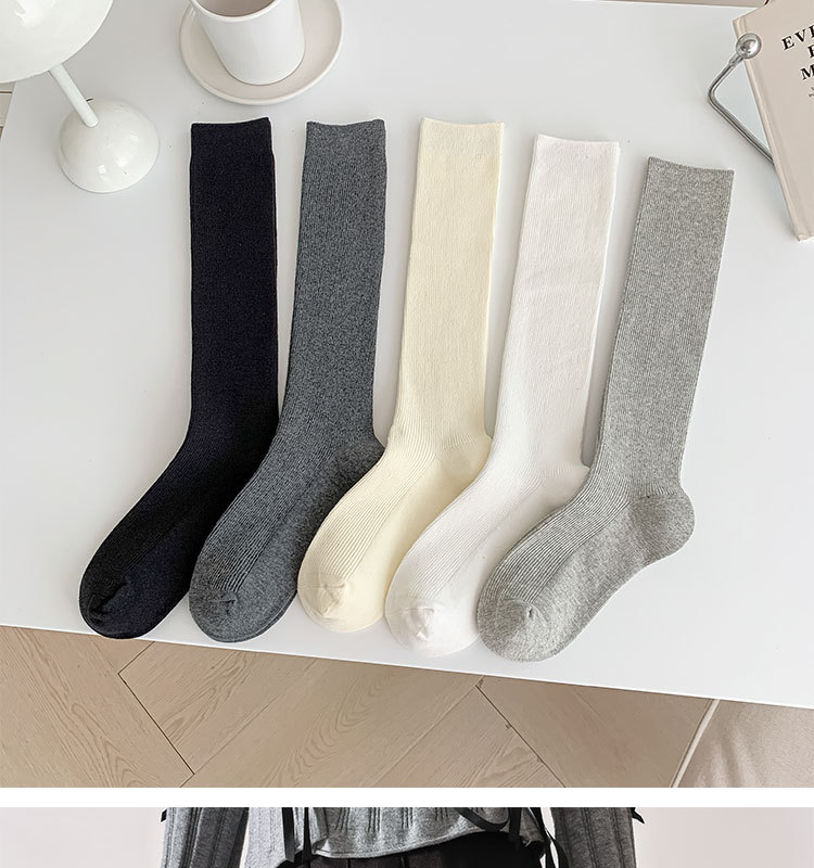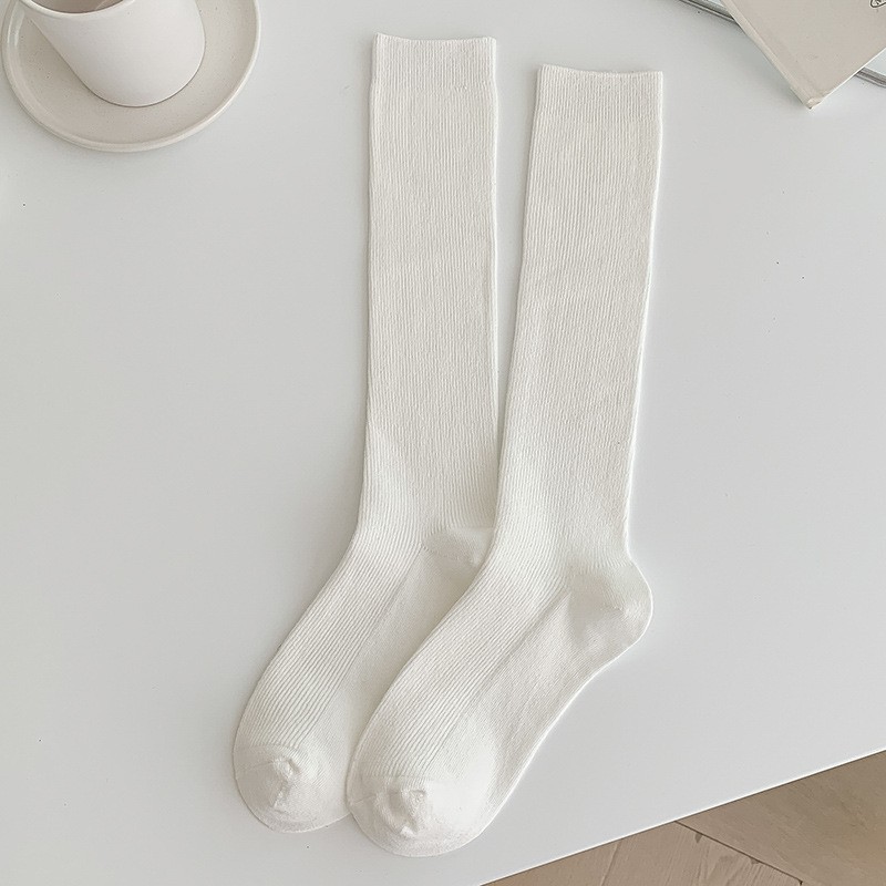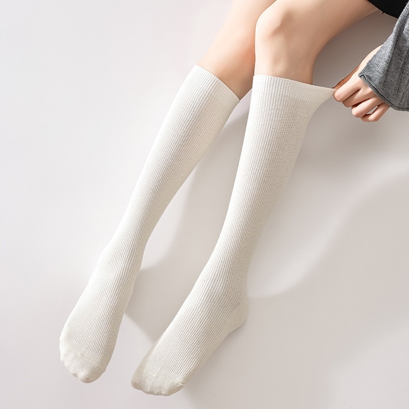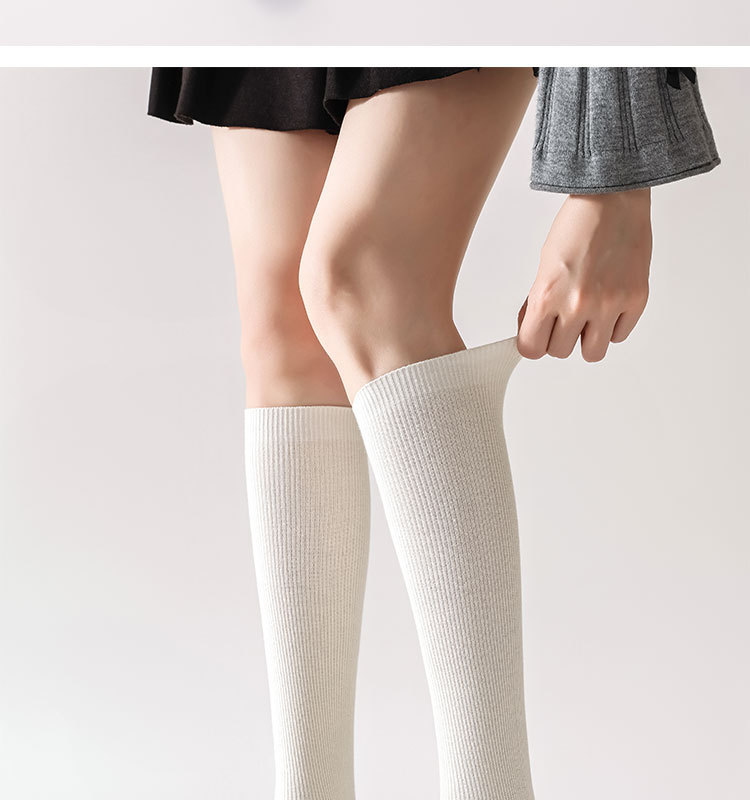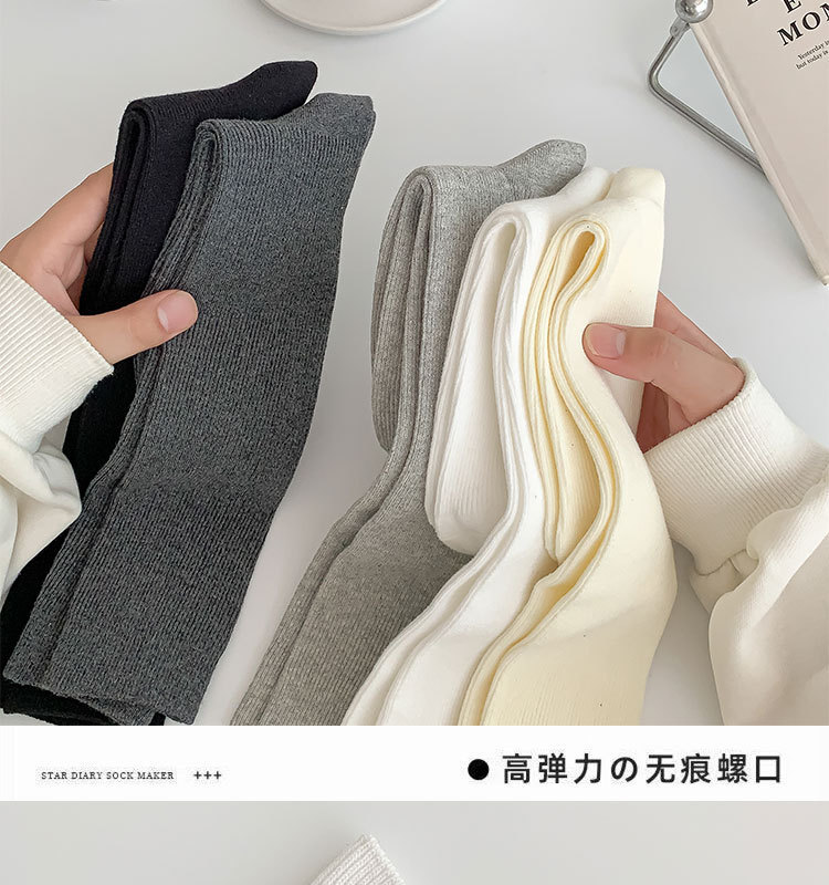 双针袜子女纯棉无骨小腿袜jk风日系纯色显瘦及膝袜春秋季薄款长袜