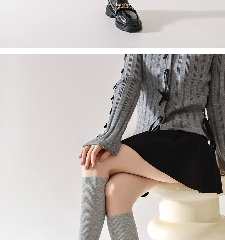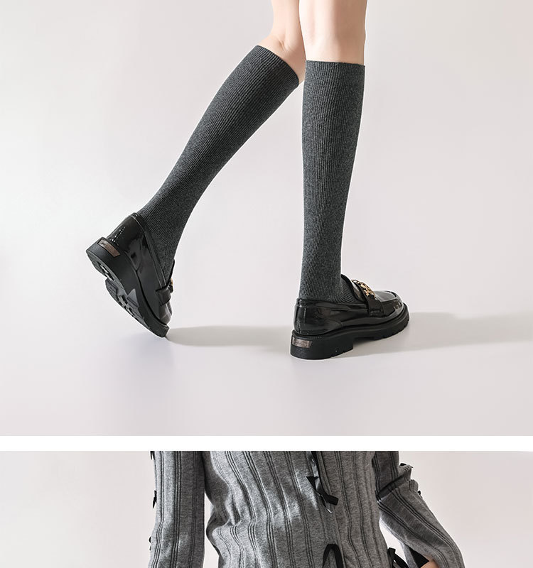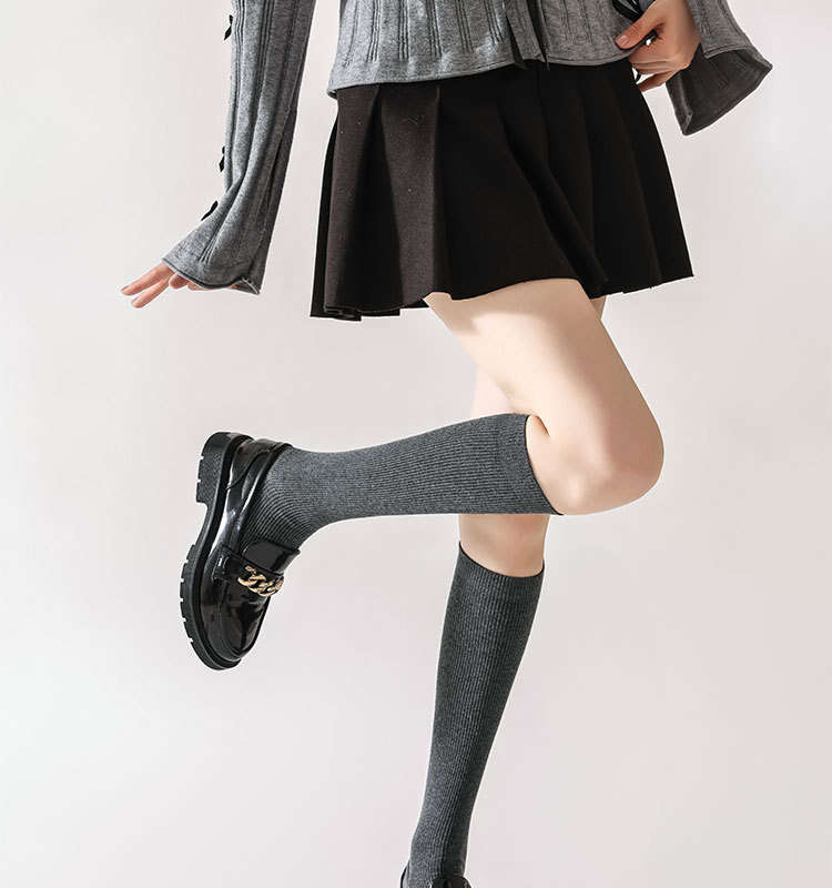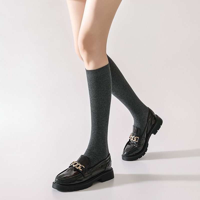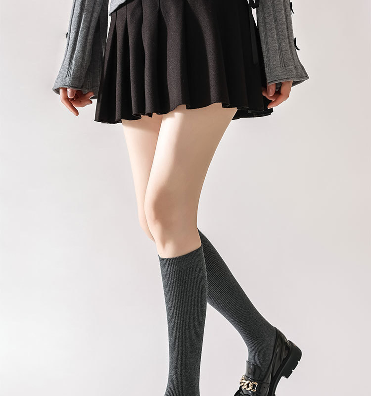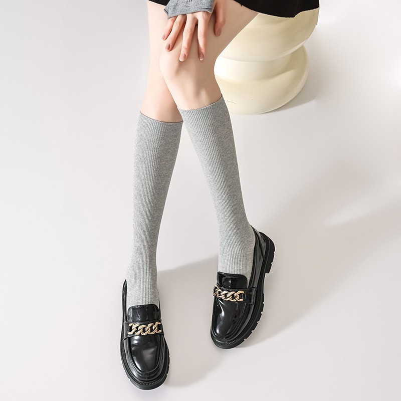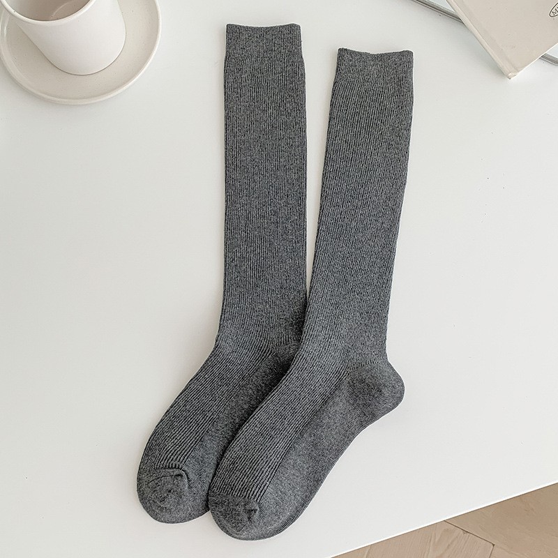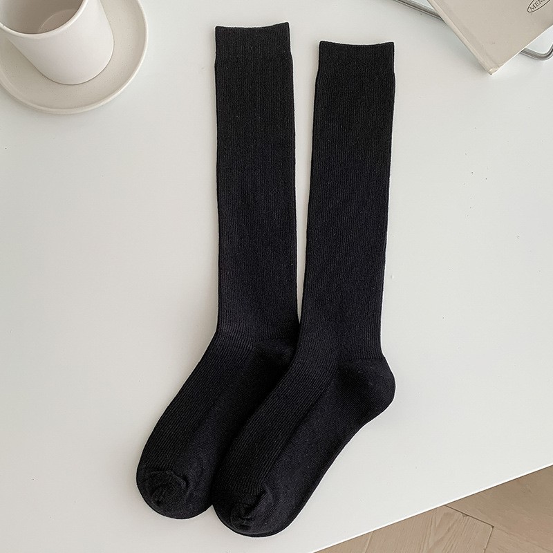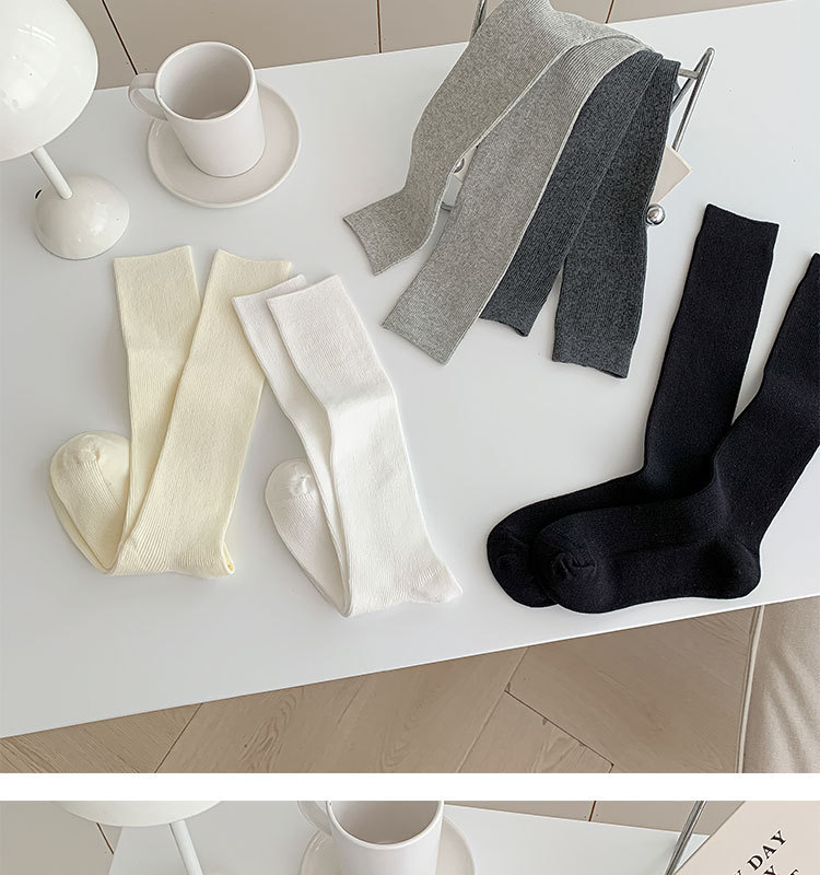 双针袜子女纯棉无骨小腿袜jk风日系纯色显瘦及膝袜春秋季薄款长袜