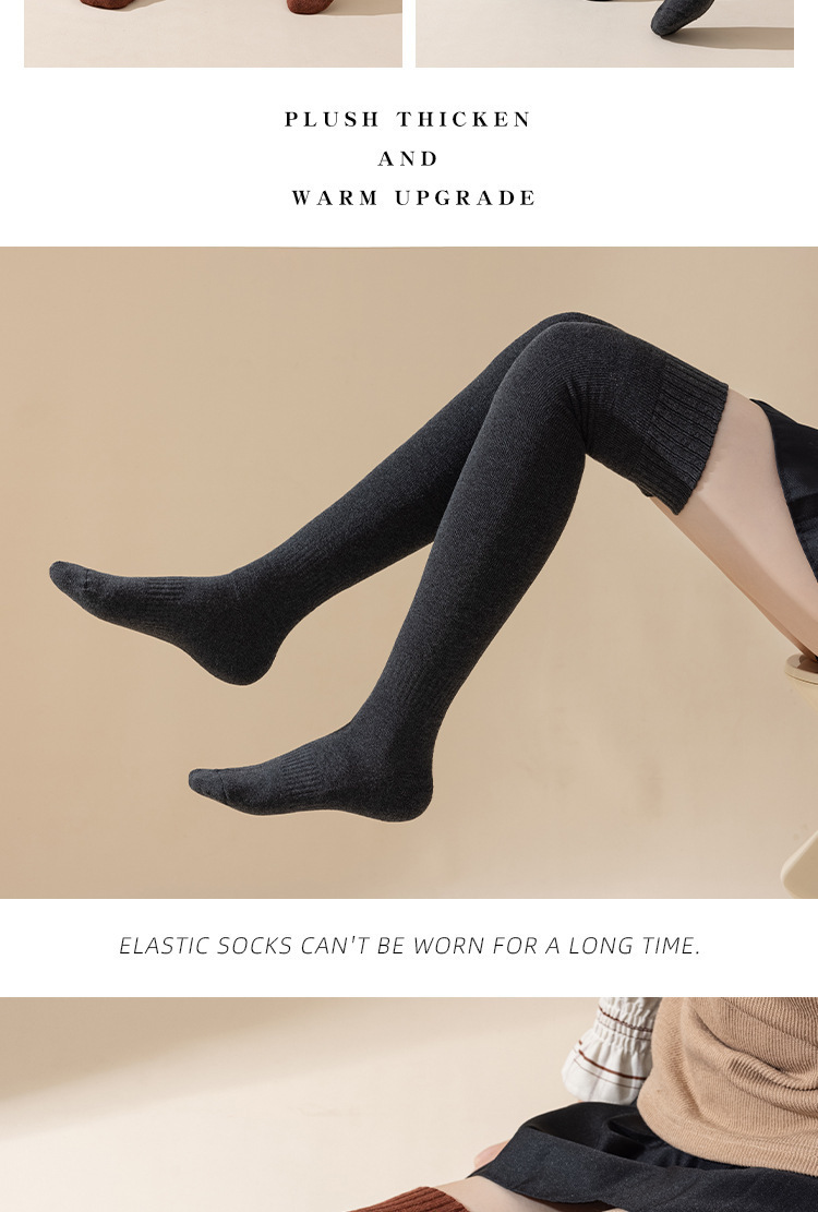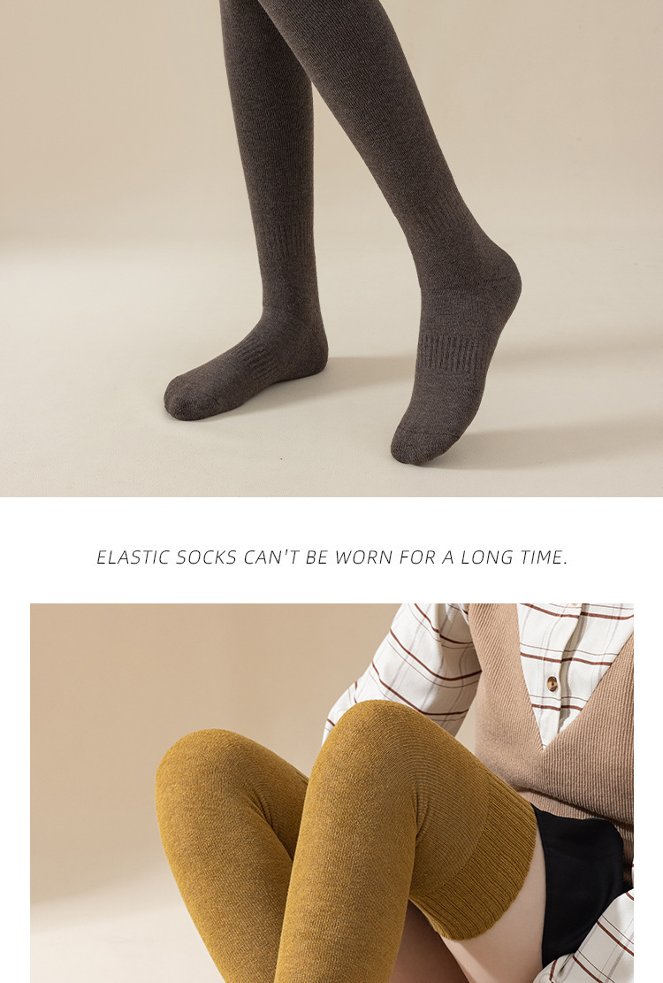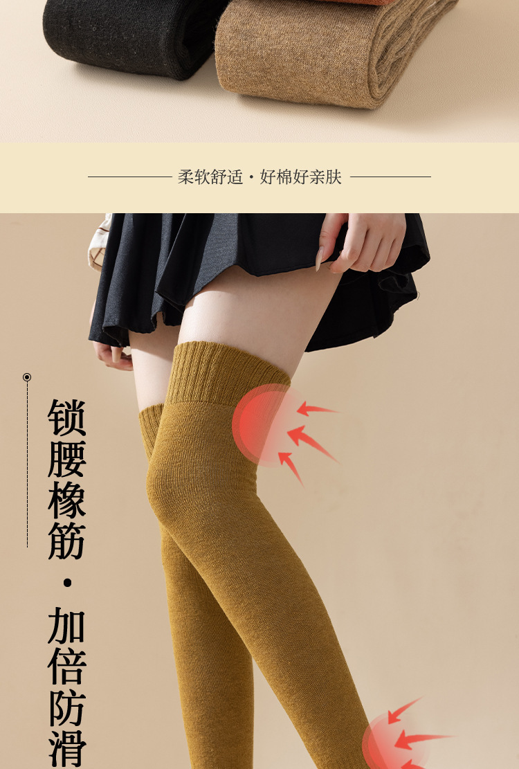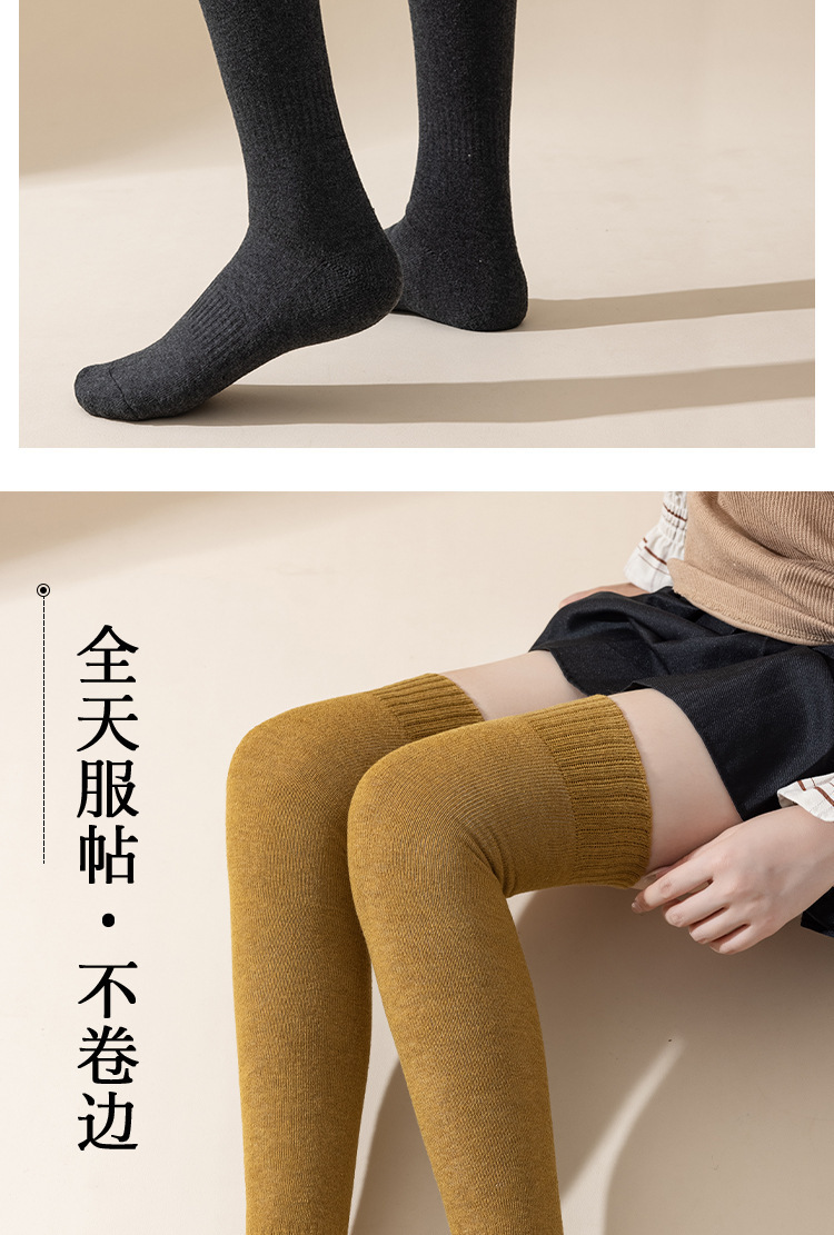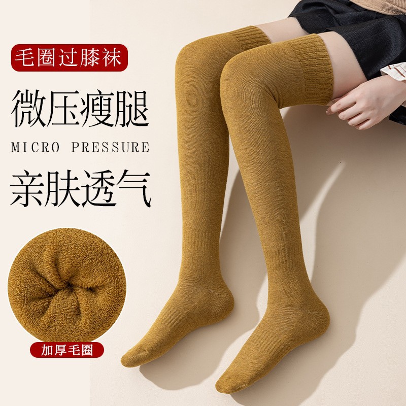 长袜子女高筒过膝袜秋冬季毛圈加厚保暖纯色显瘦防滑护膝长筒袜女