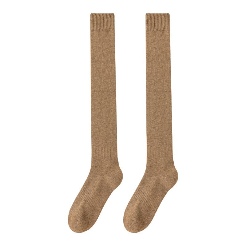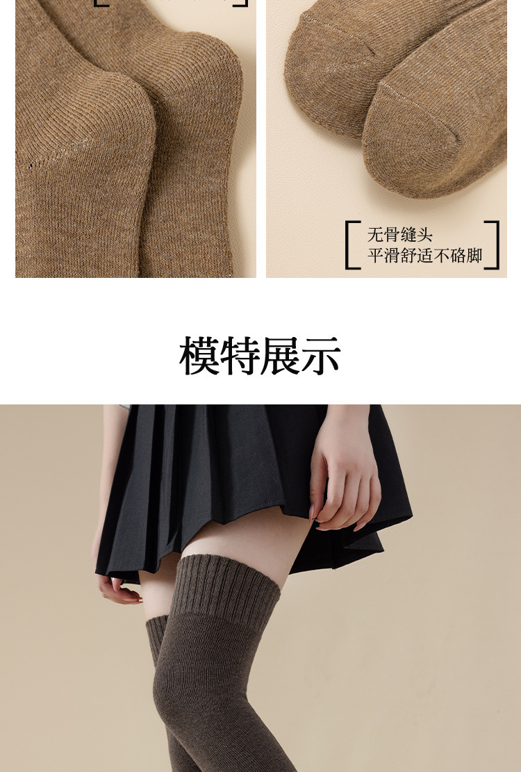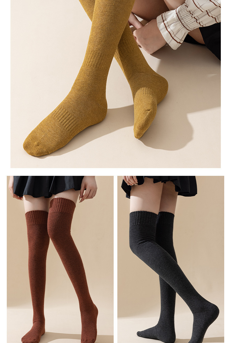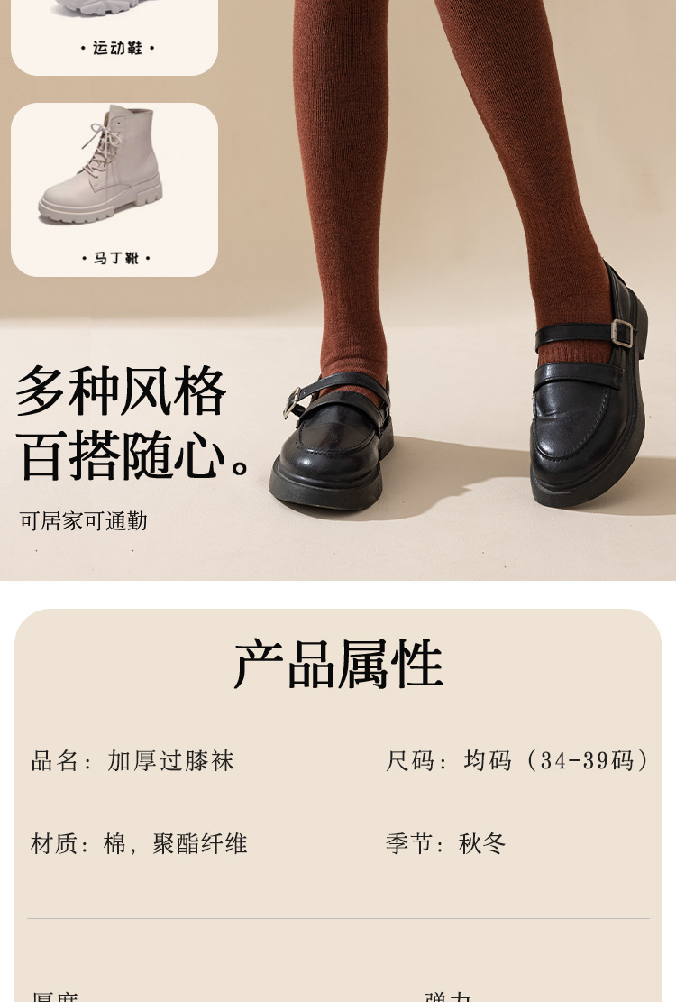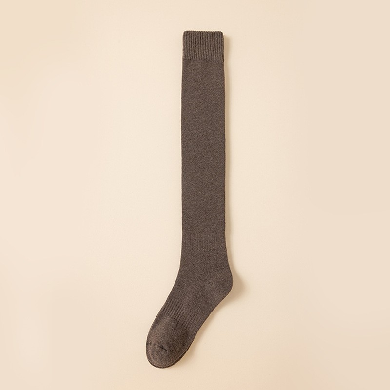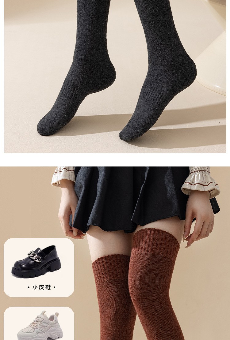 长袜子女高筒过膝袜秋冬季毛圈加厚保暖纯色显瘦防滑护膝长筒袜女