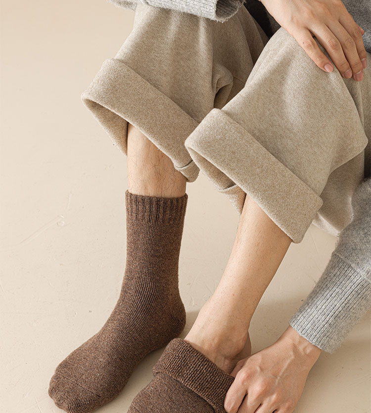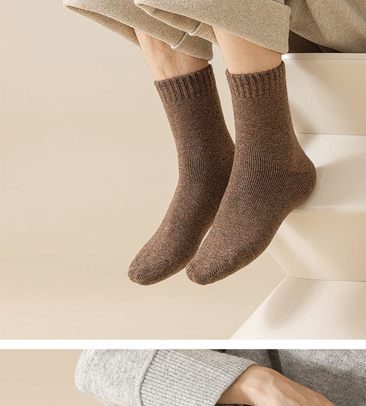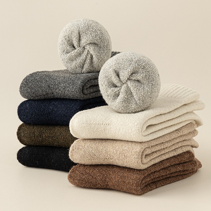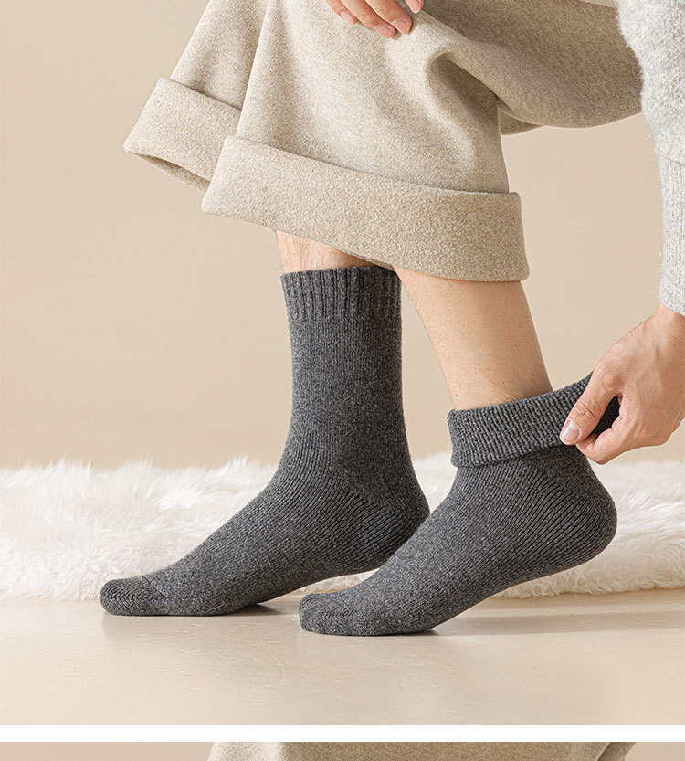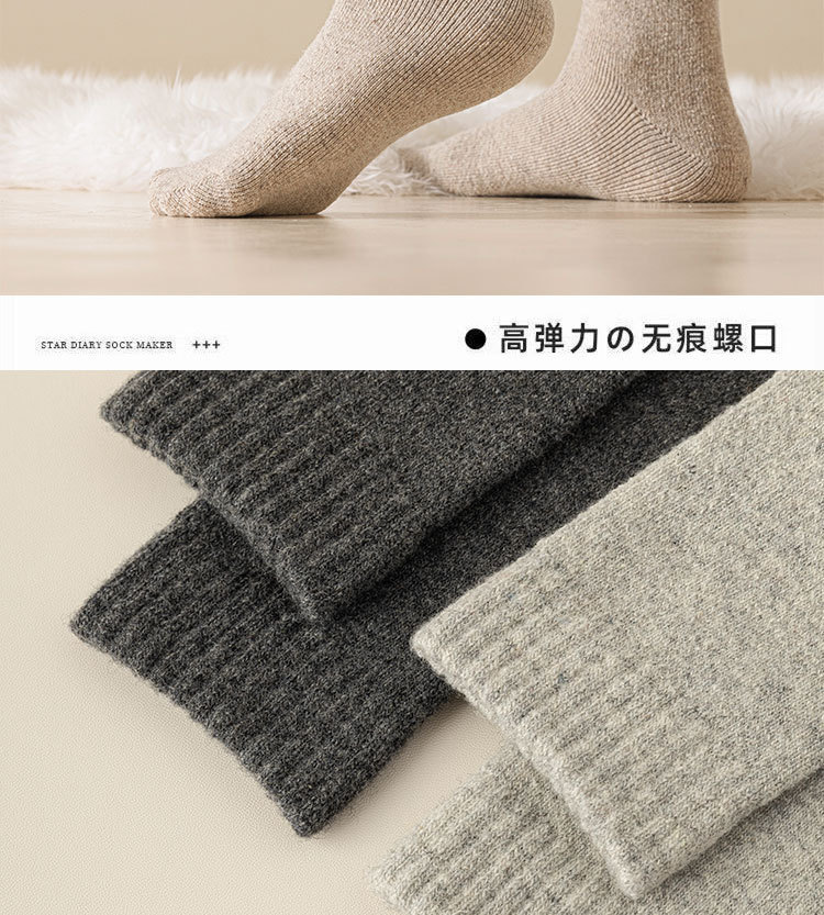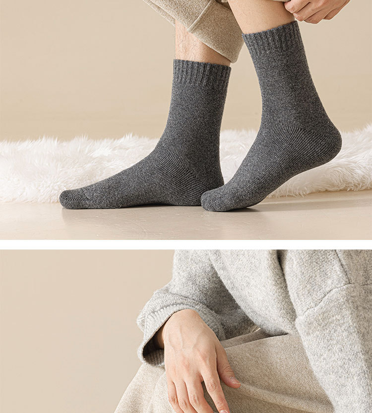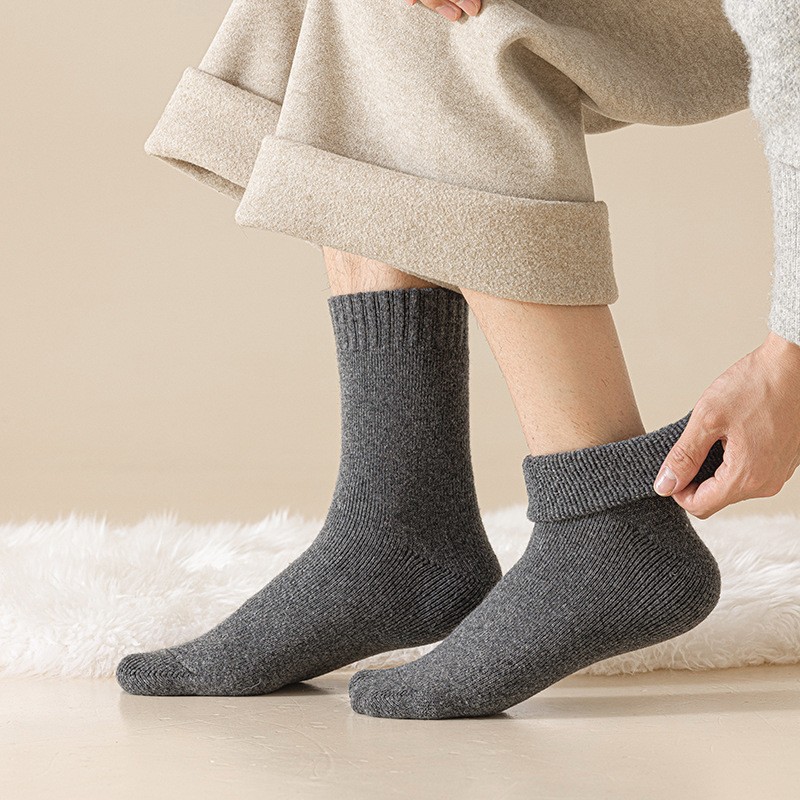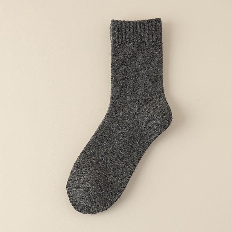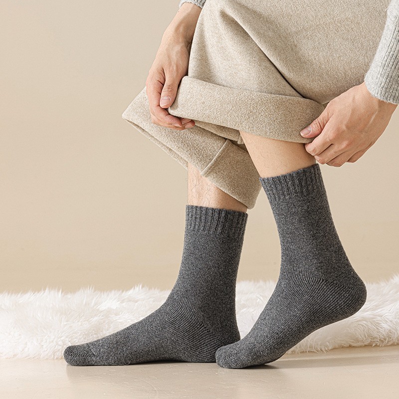袜子男中筒袜秋冬季加厚保暖羊毛袜男士吸汗防臭毛圈袜纯色长袜男