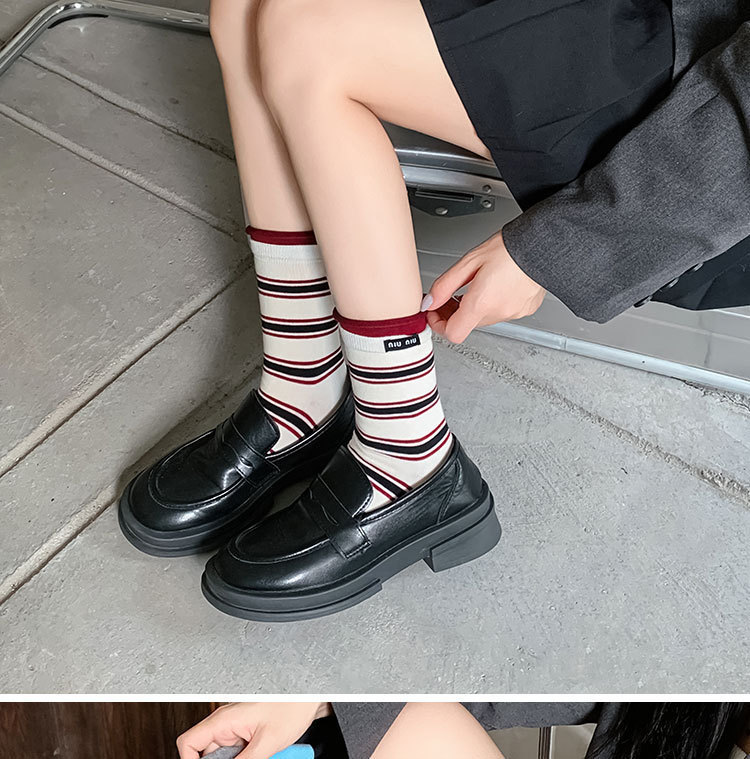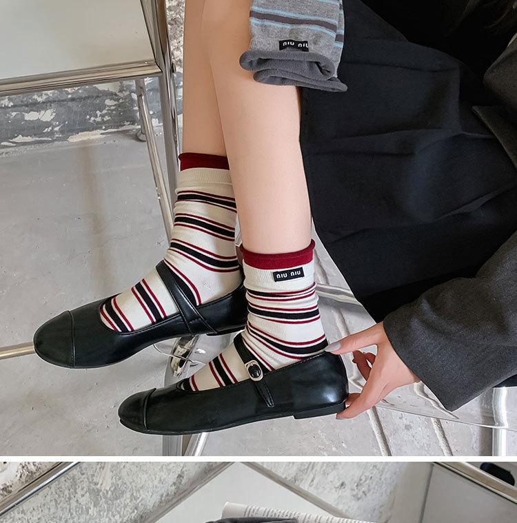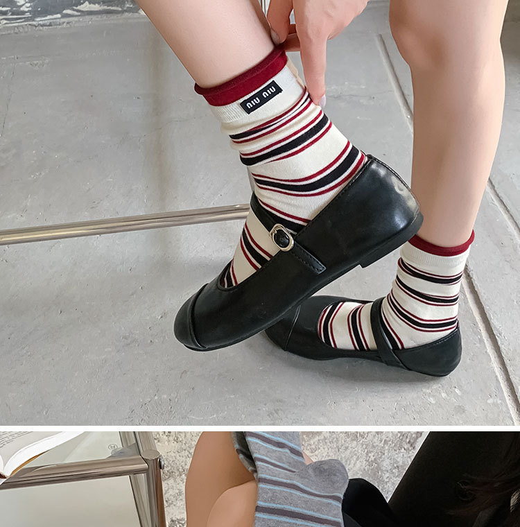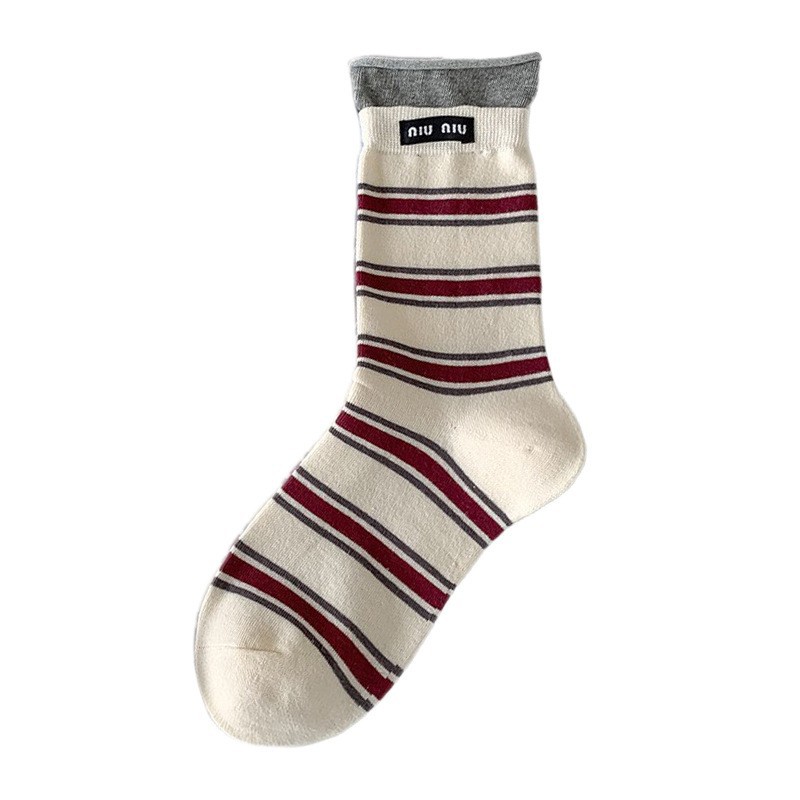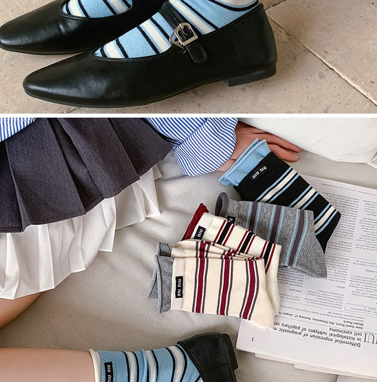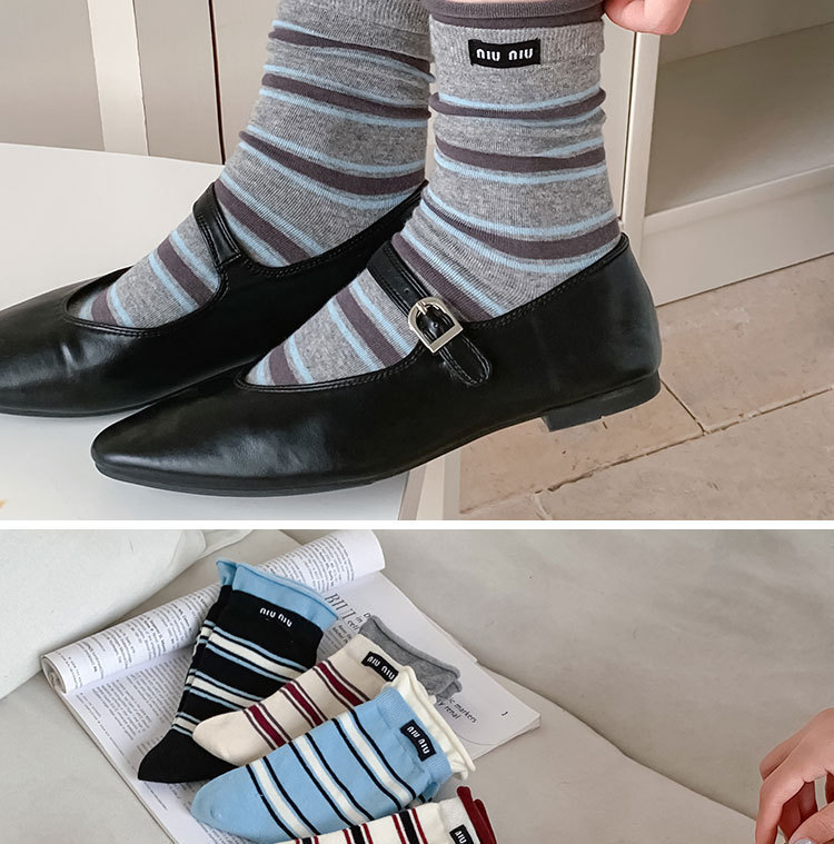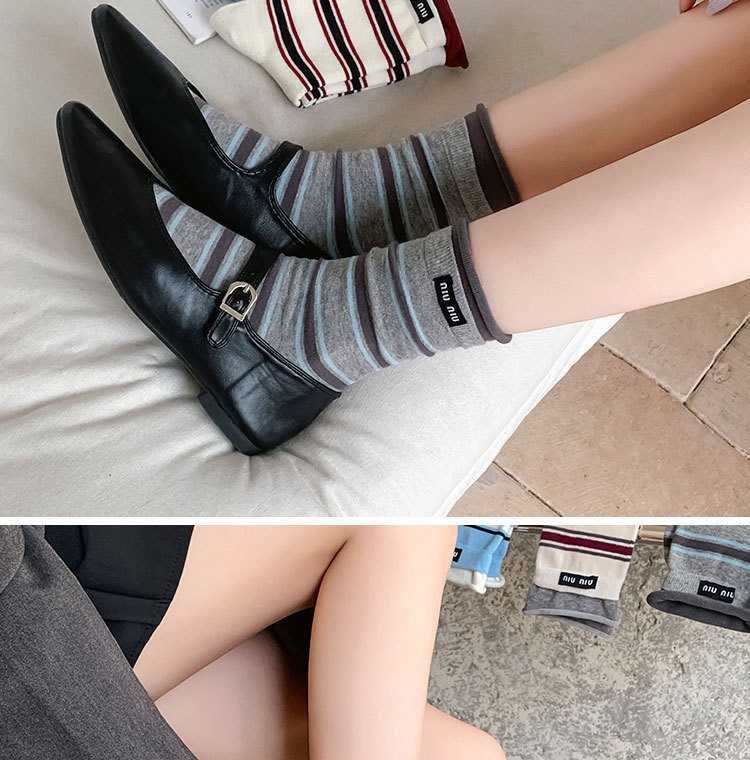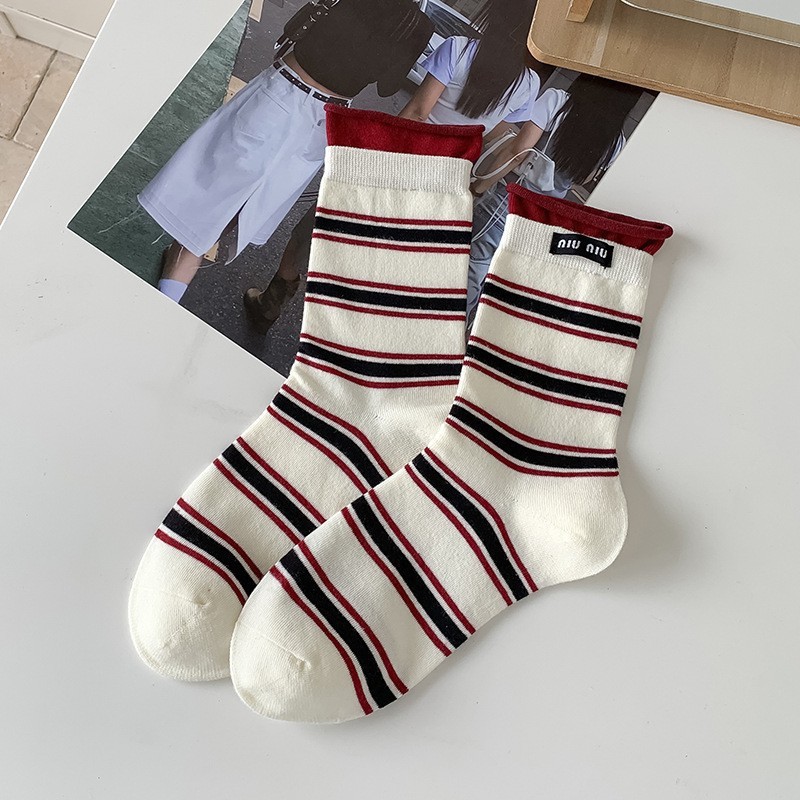 条纹袜子女堆堆袜春秋季薄款miu系双层口卷边ins潮流纯棉中筒袜女