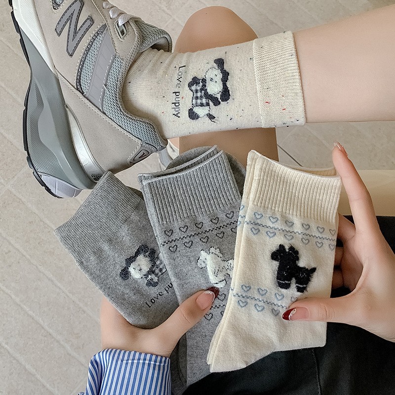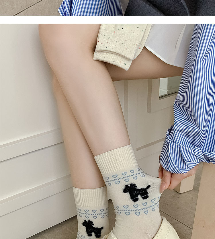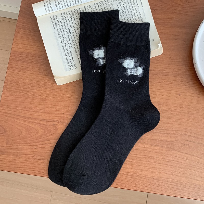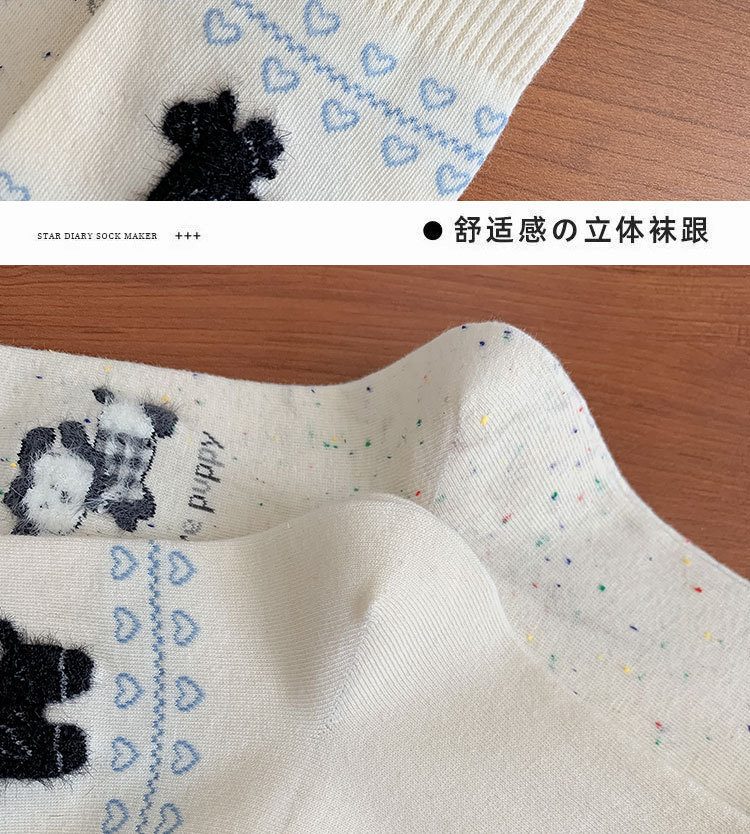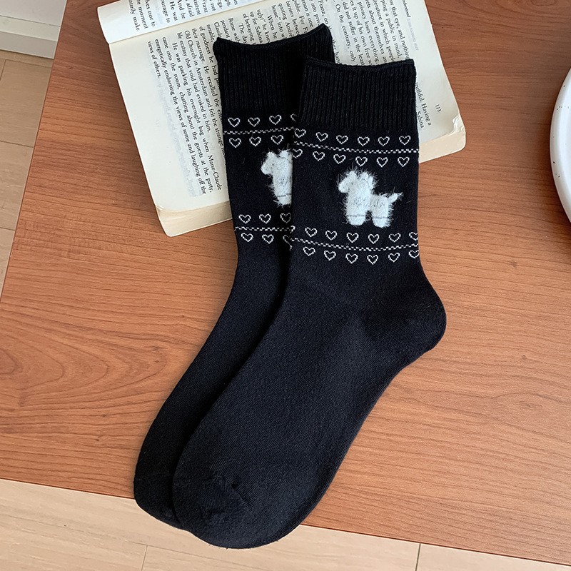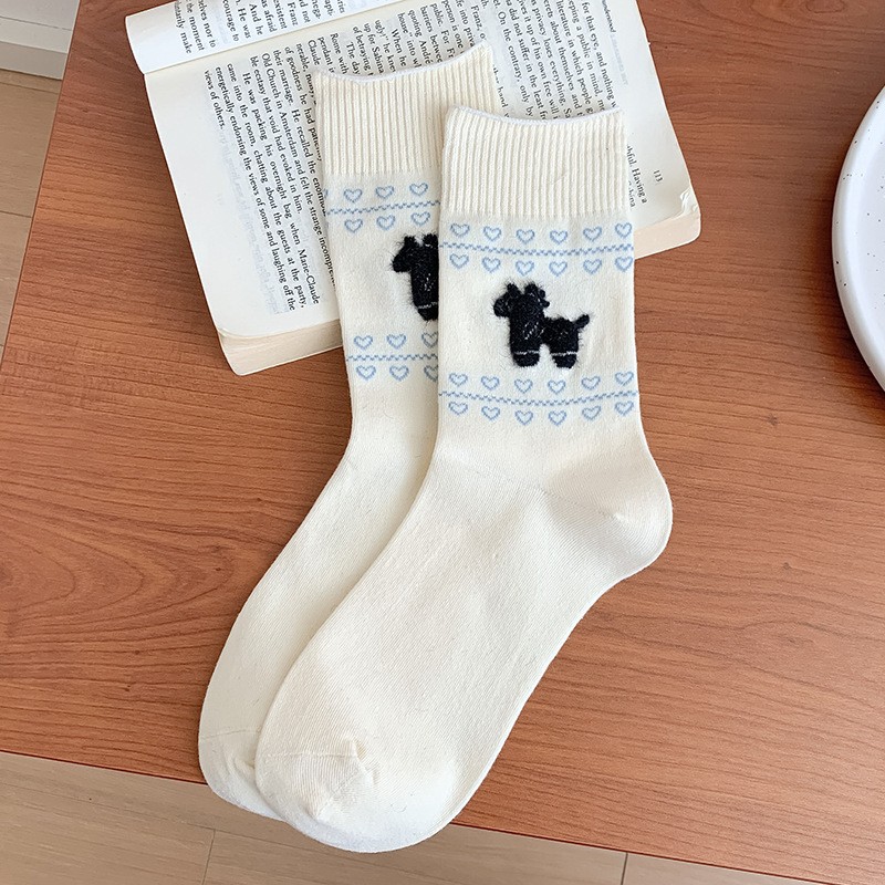 田园风袜子女纯棉中筒袜秋冬季费尔岛植绒可爱立体卡通全棉长袜女