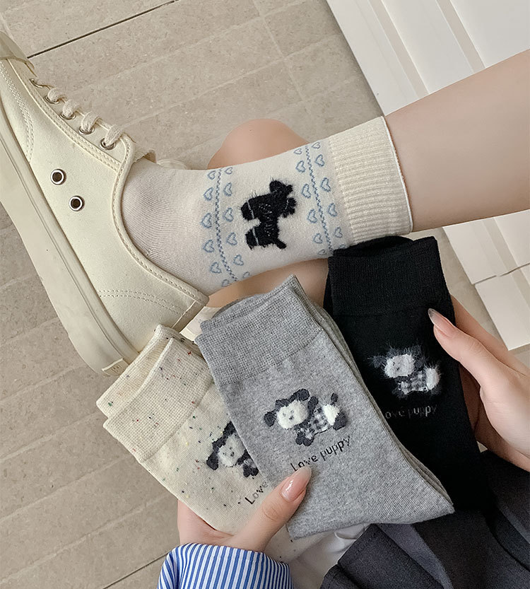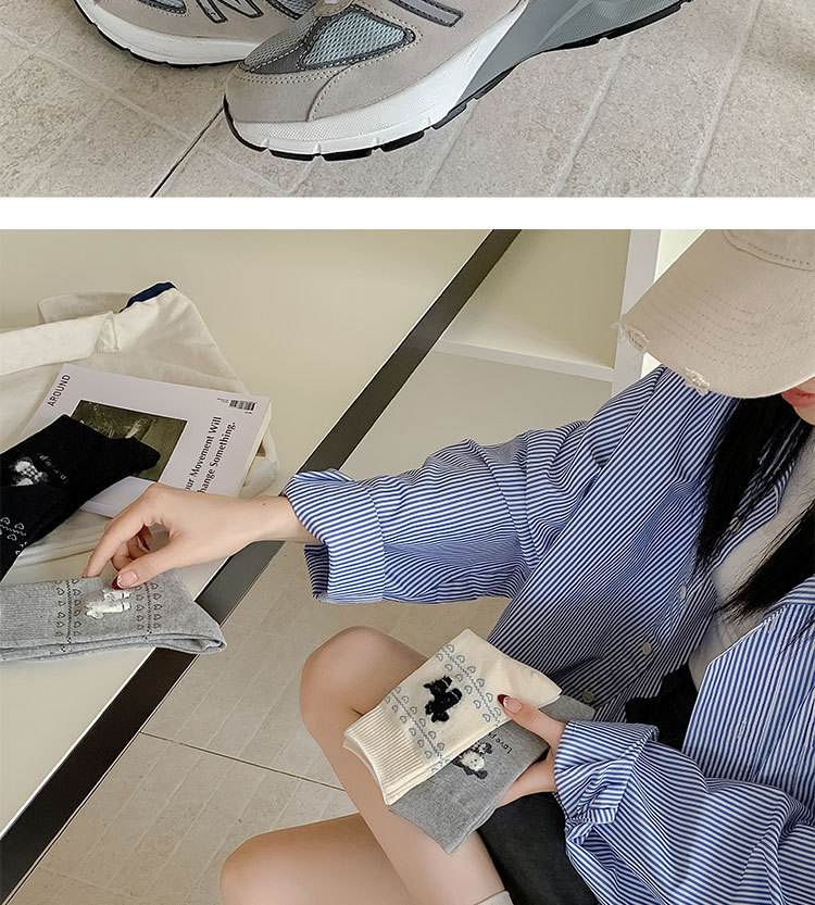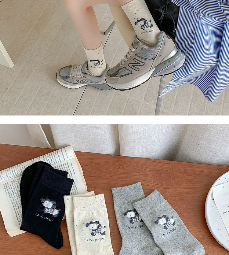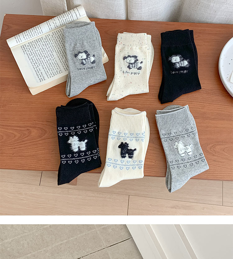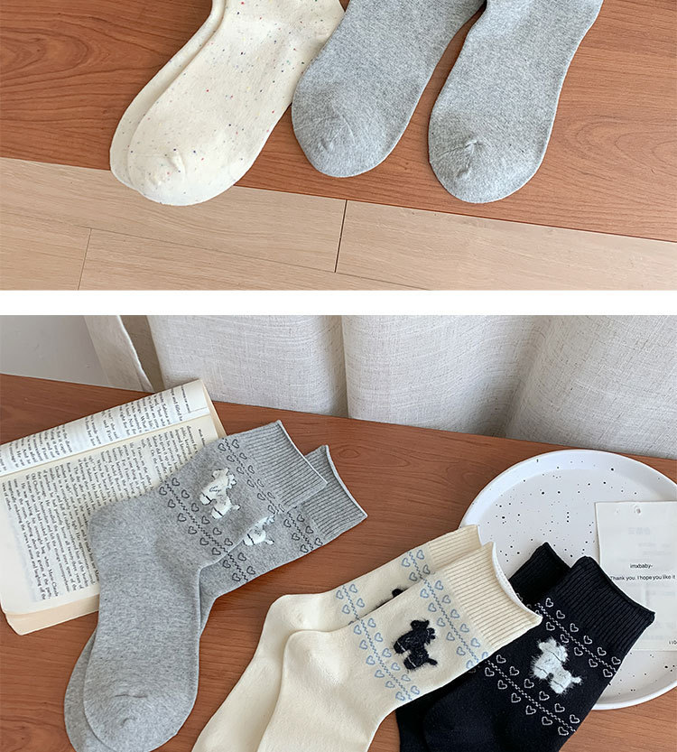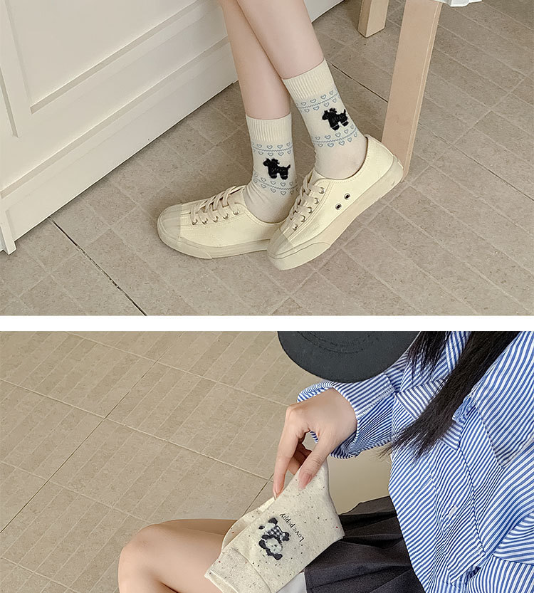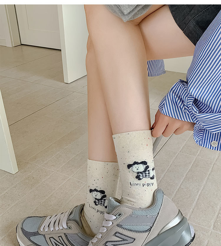 田园风袜子女纯棉中筒袜秋冬季费尔岛植绒可爱立体卡通全棉长袜女