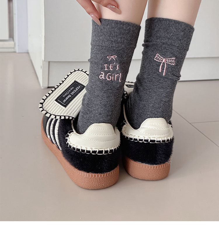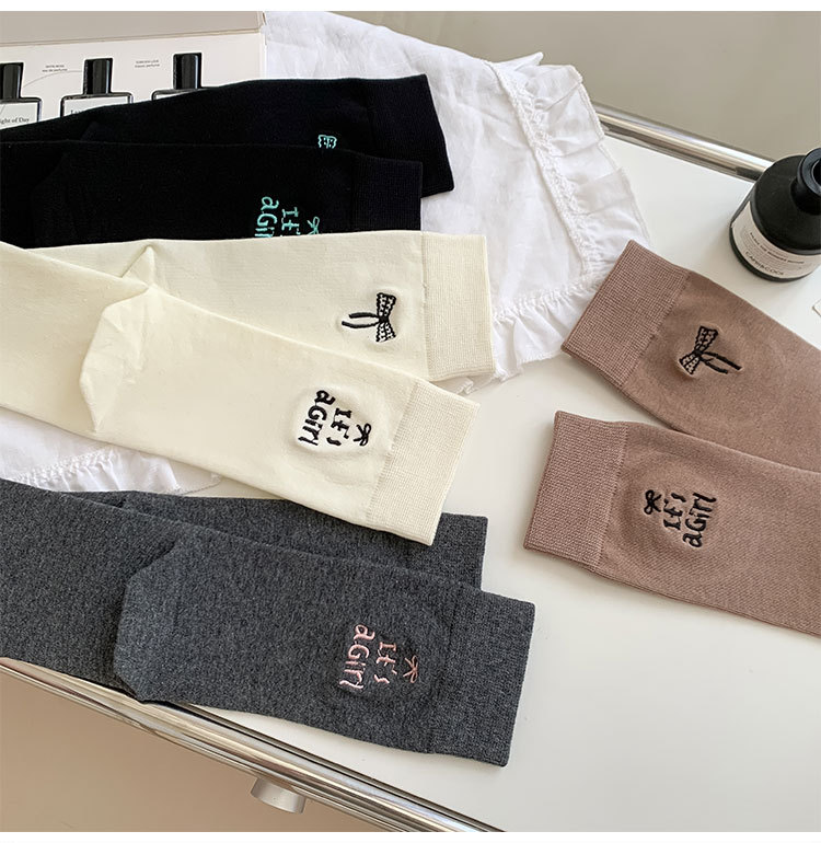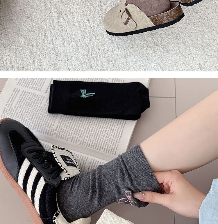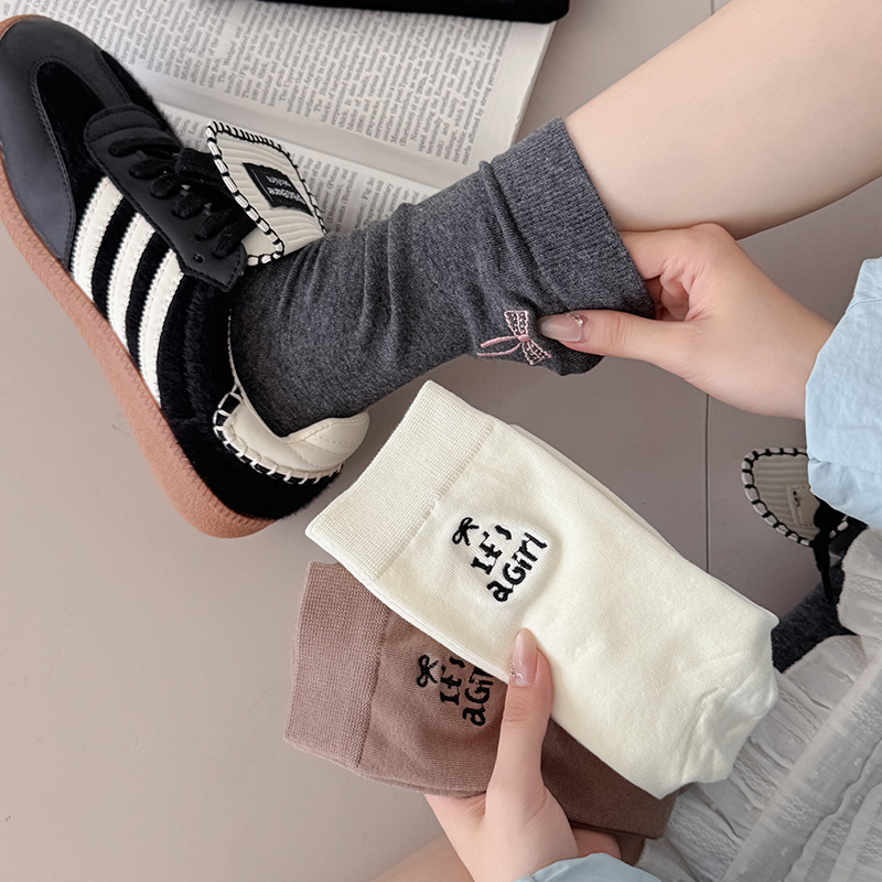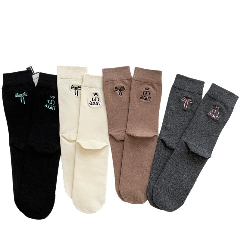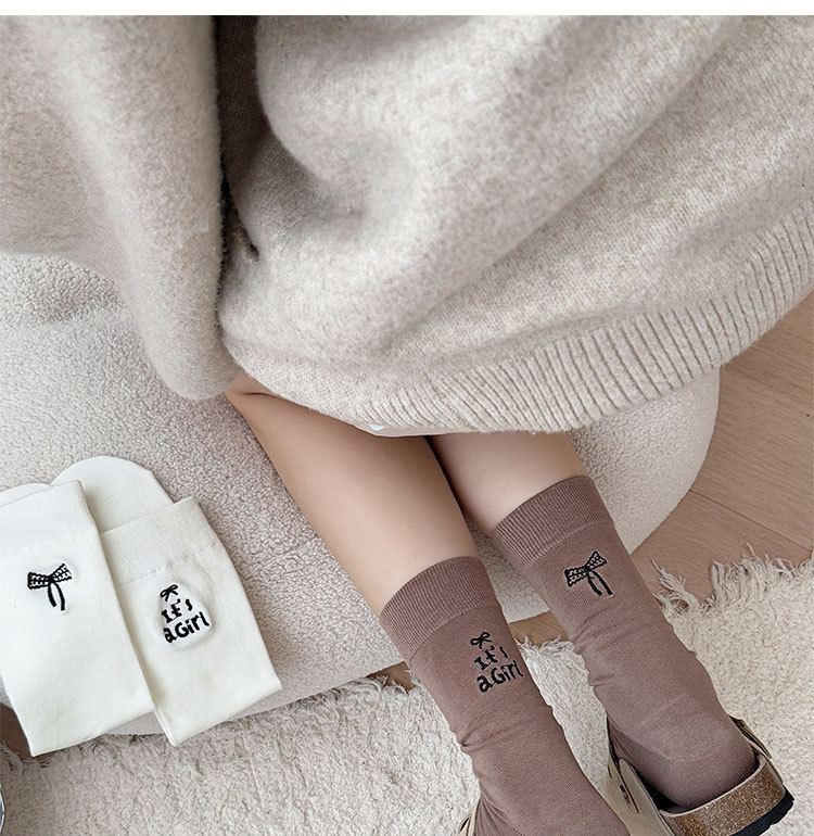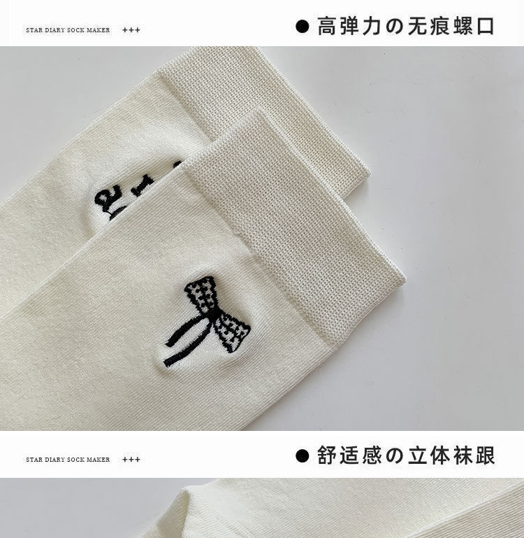 诸暨袜子女纯棉无骨堆堆袜秋冬季ins潮字母后跟刺绣蝴蝶结中筒袜