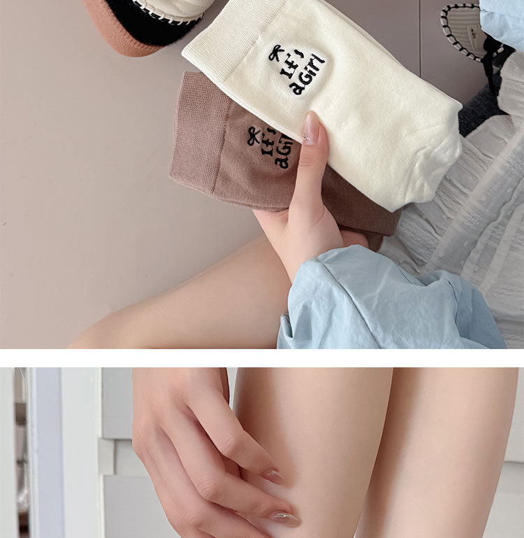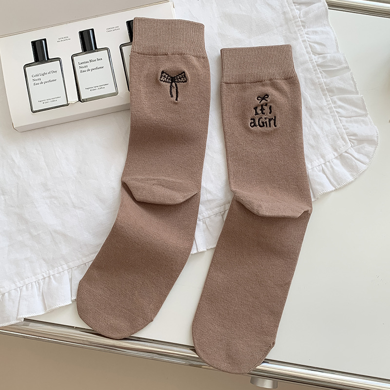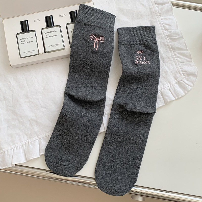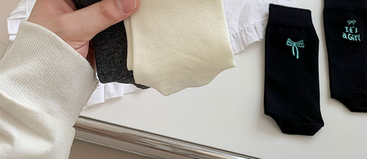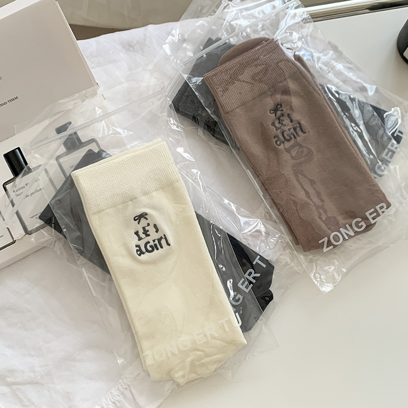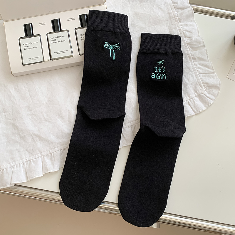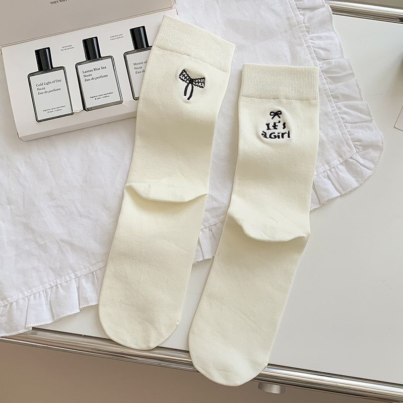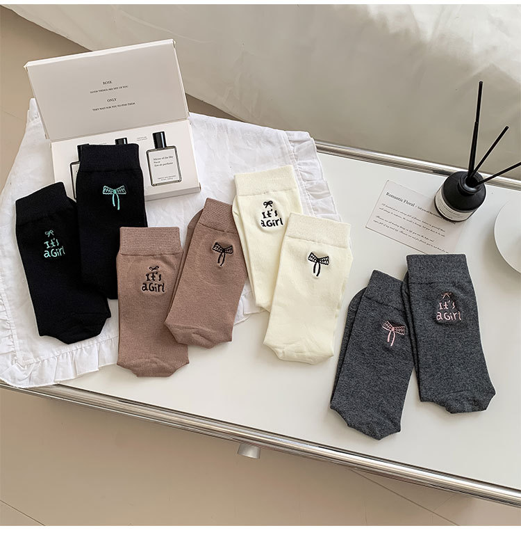 诸暨袜子女纯棉无骨堆堆袜秋冬季ins潮字母后跟刺绣蝴蝶结中筒袜