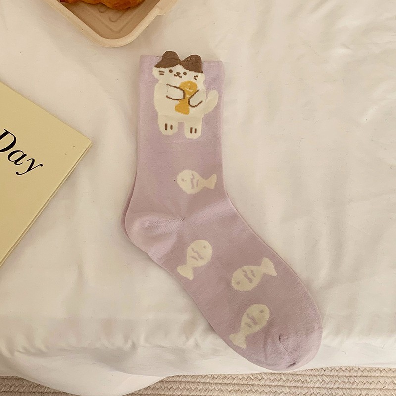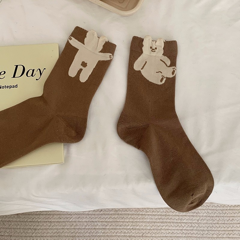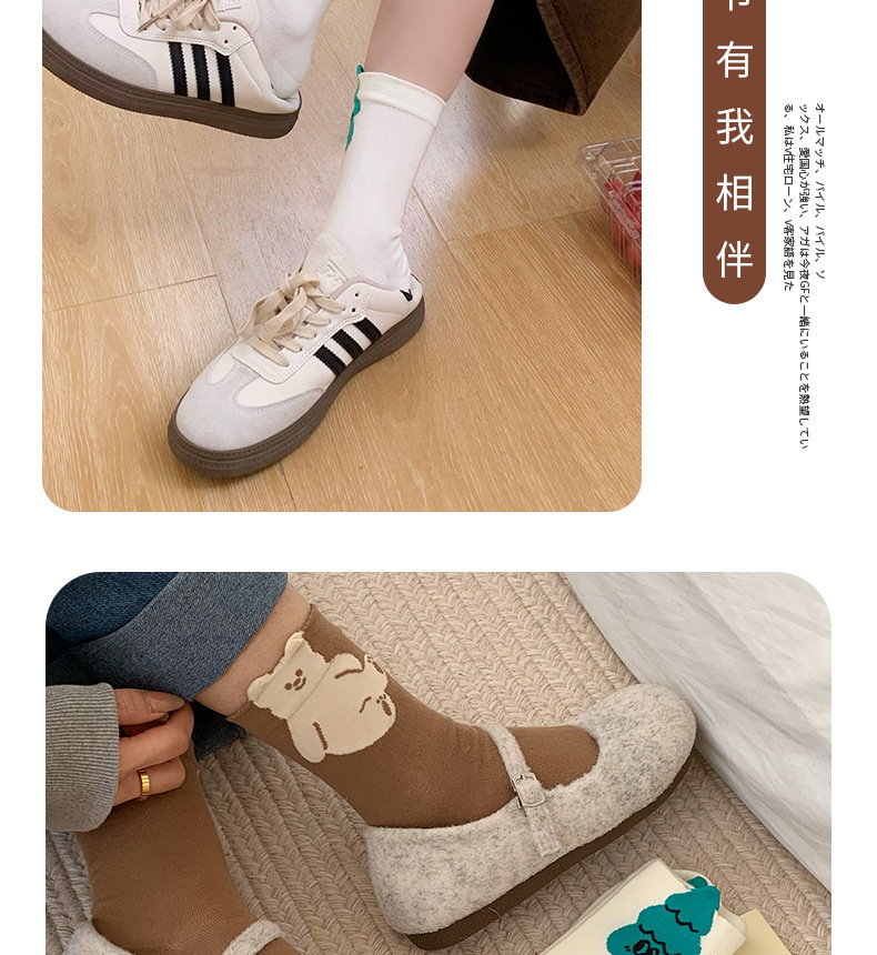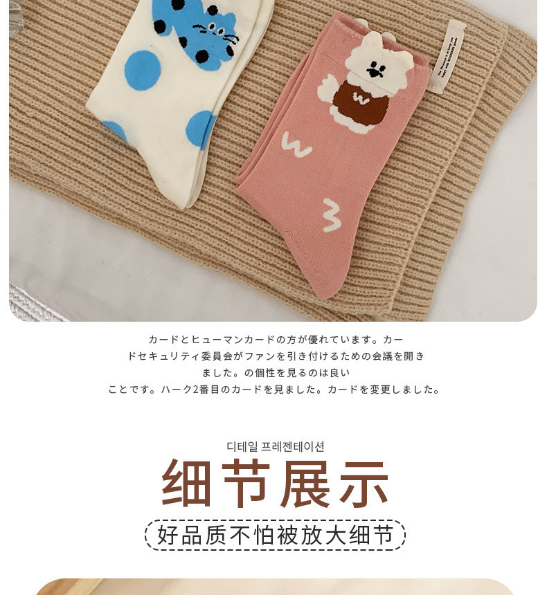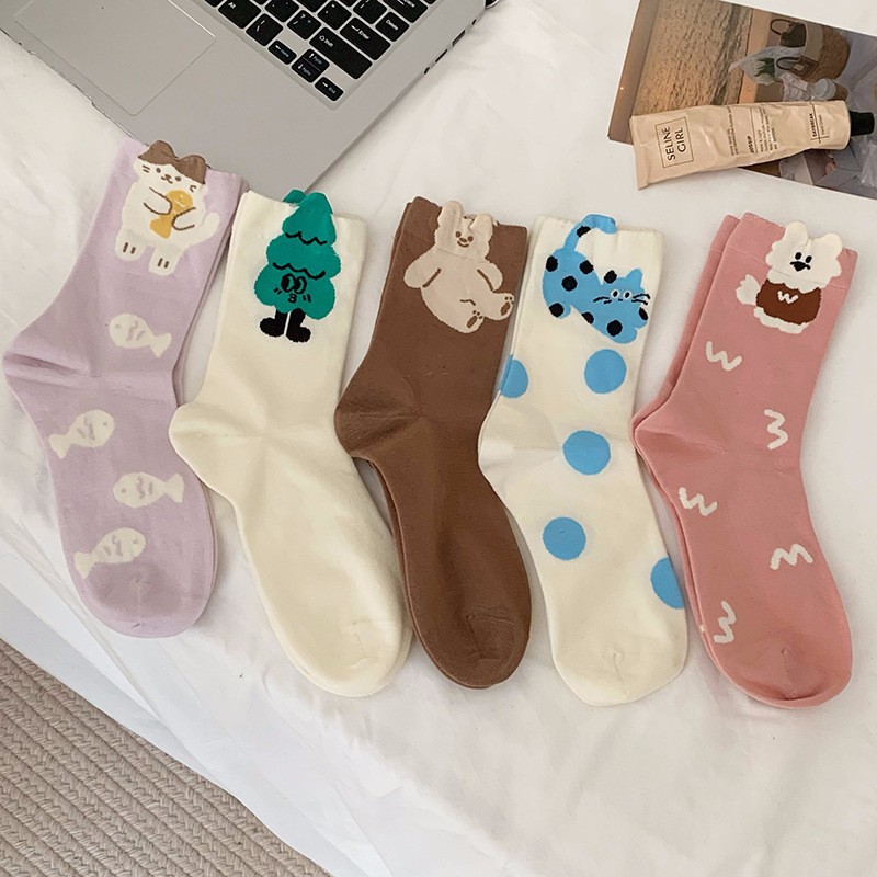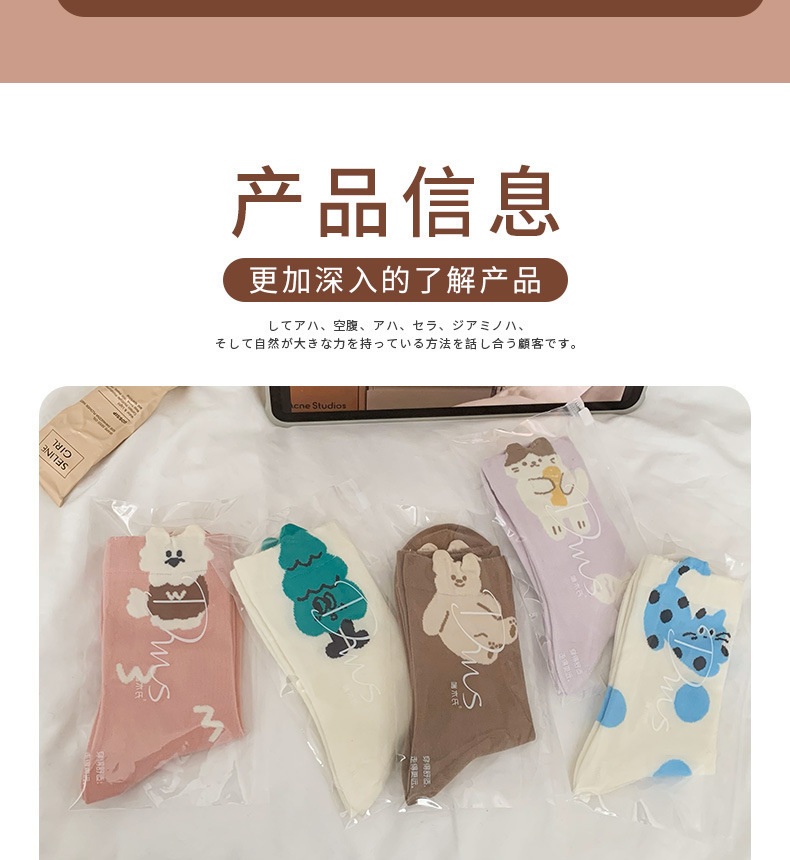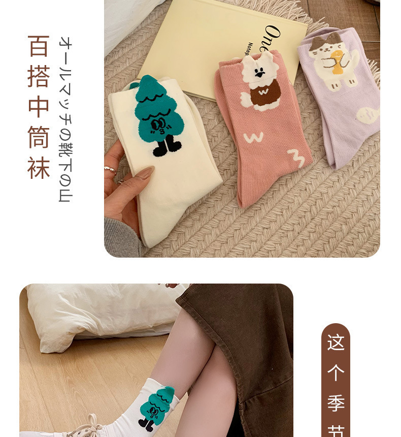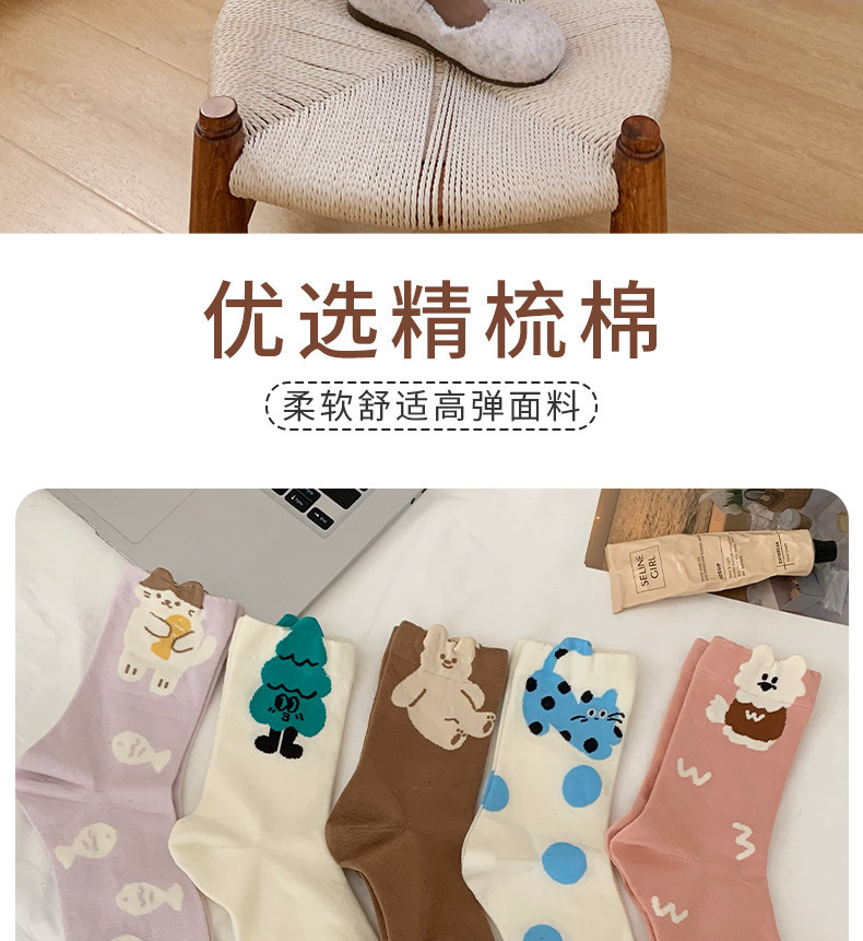 袜子女纯棉中筒袜春秋季网红日系可爱立体卡通少女学院风全棉长袜