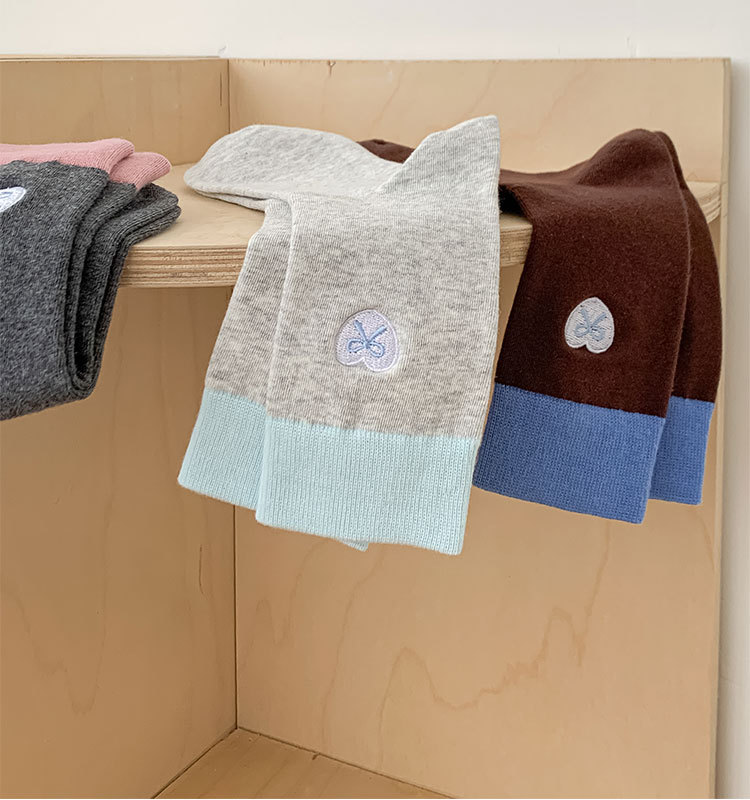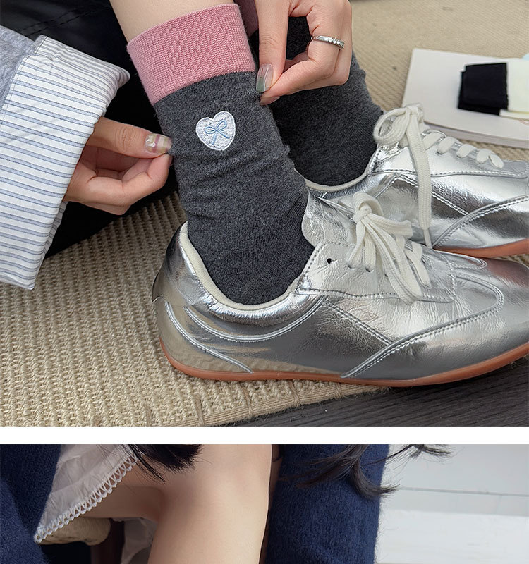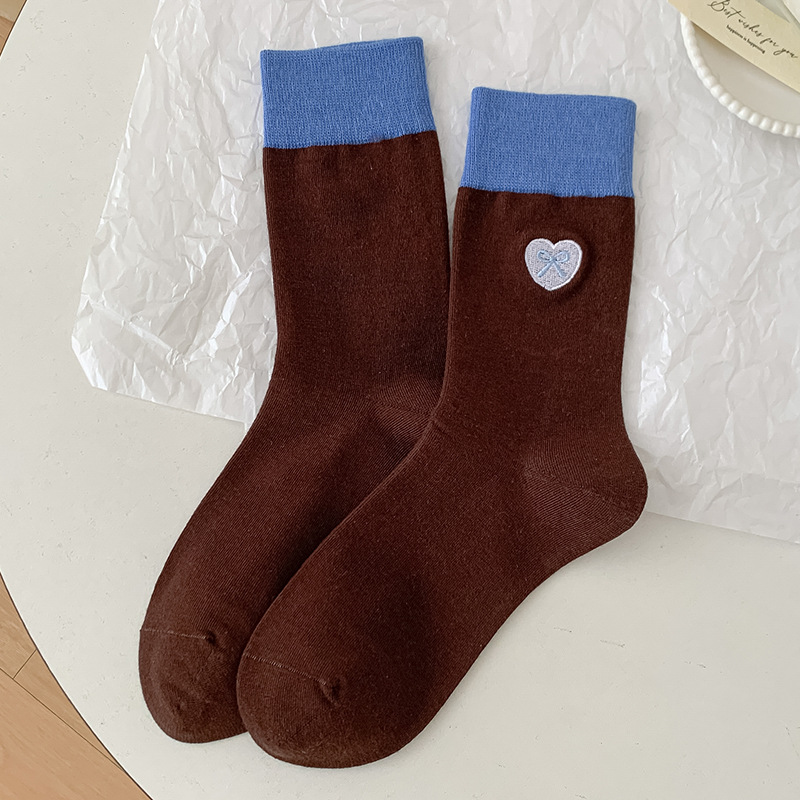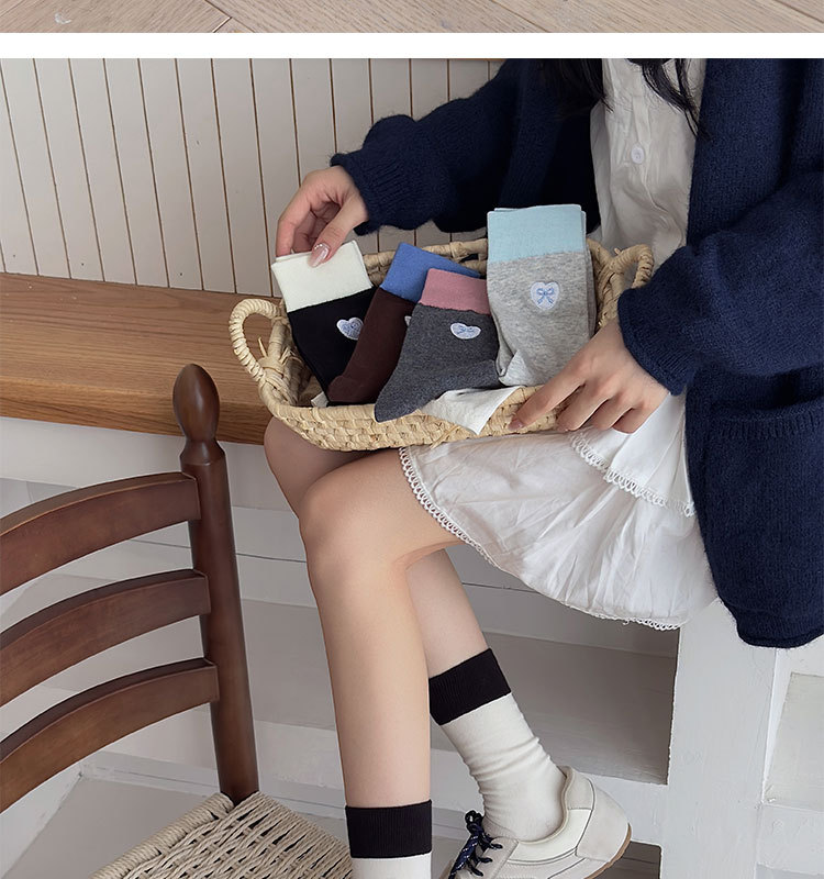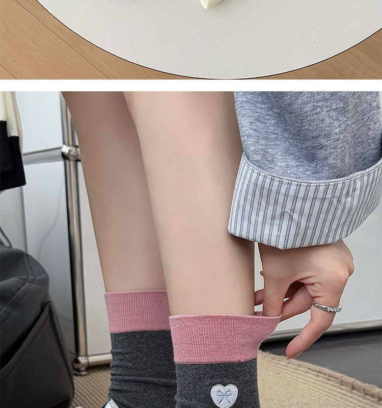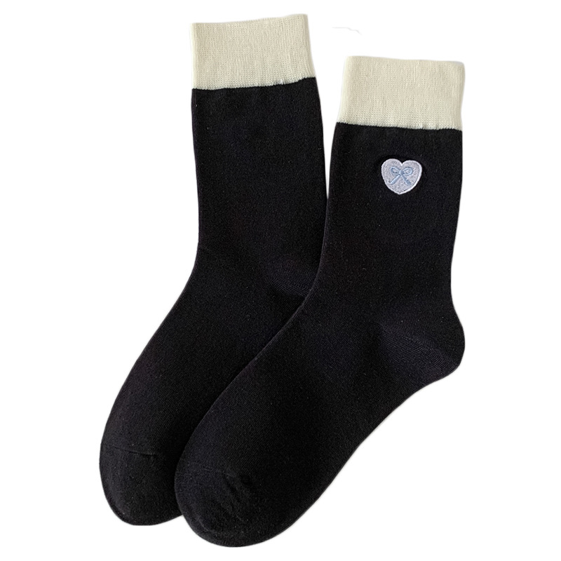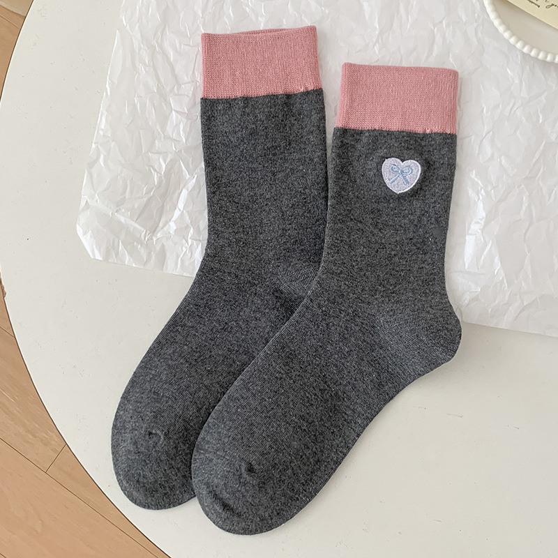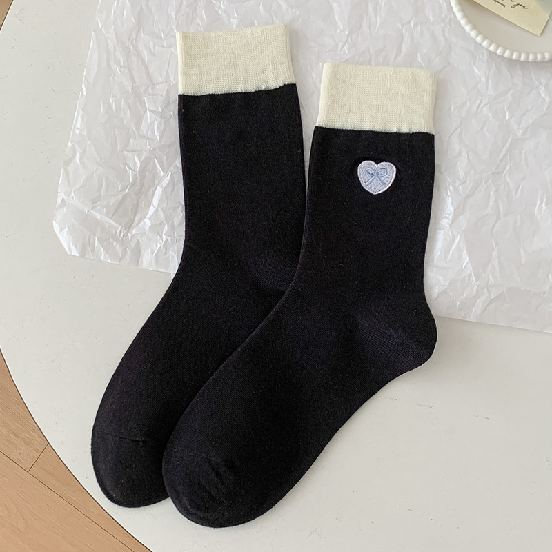 拼色袜子女纯棉堆堆袜刺绣蝴蝶结爱心韩国东大门秋冬季全棉中筒袜