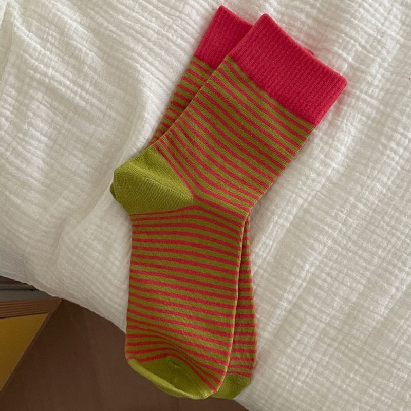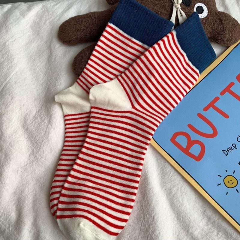 诸暨袜子女纯棉条纹中筒袜时尚韩国东大门秋冬季复古学院风长袜女