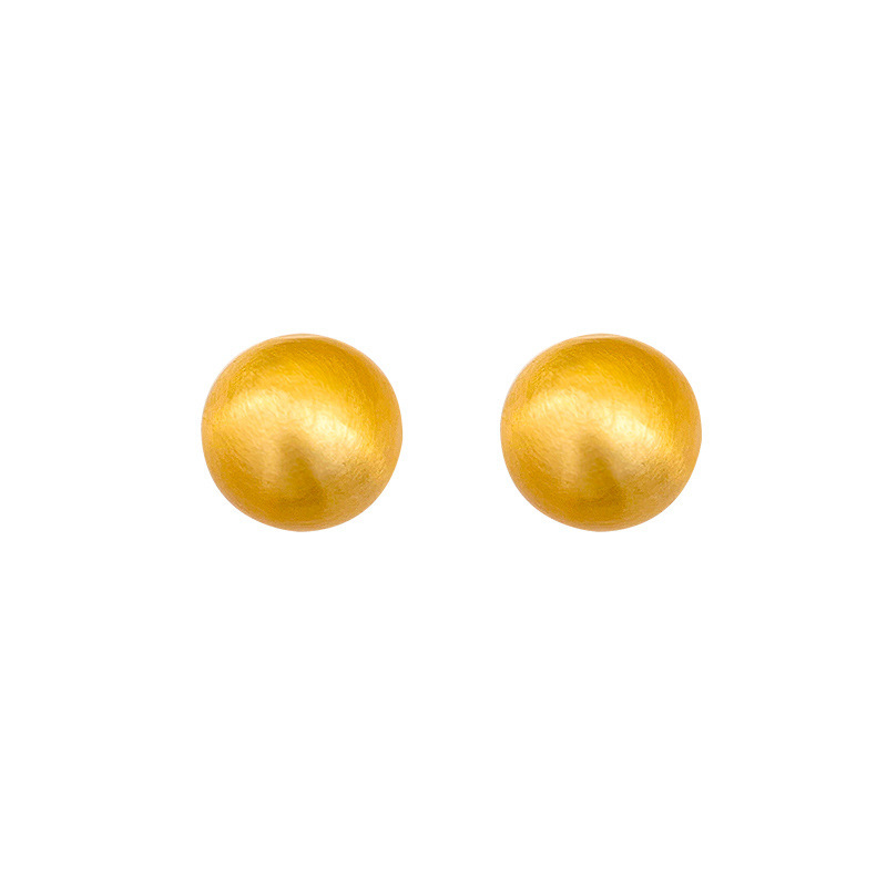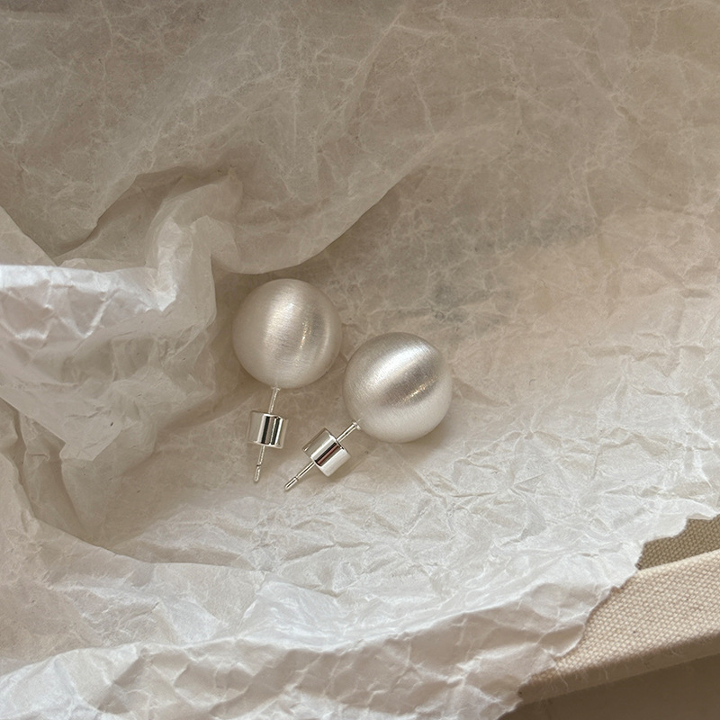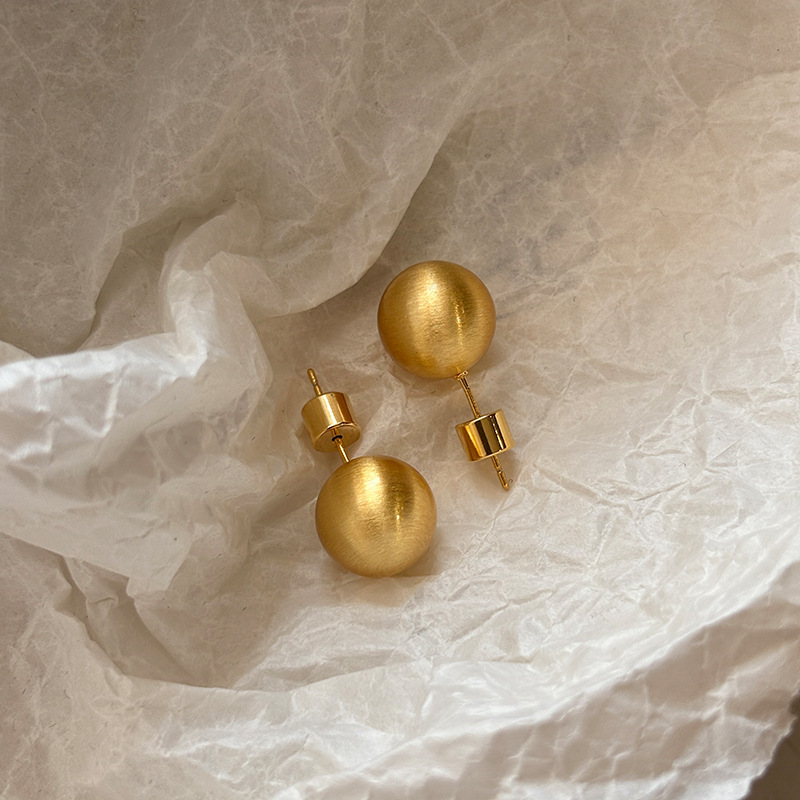 S925纯银针耳环轻奢小众高级感网红耳饰真金电镀拉丝金属圆球耳钉
