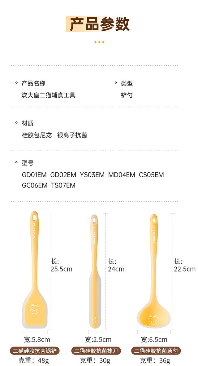 炊大皇硅胶锅铲刮刀套装汤勺小号铲子婴儿辅食软板奶油抹刀烘焙工