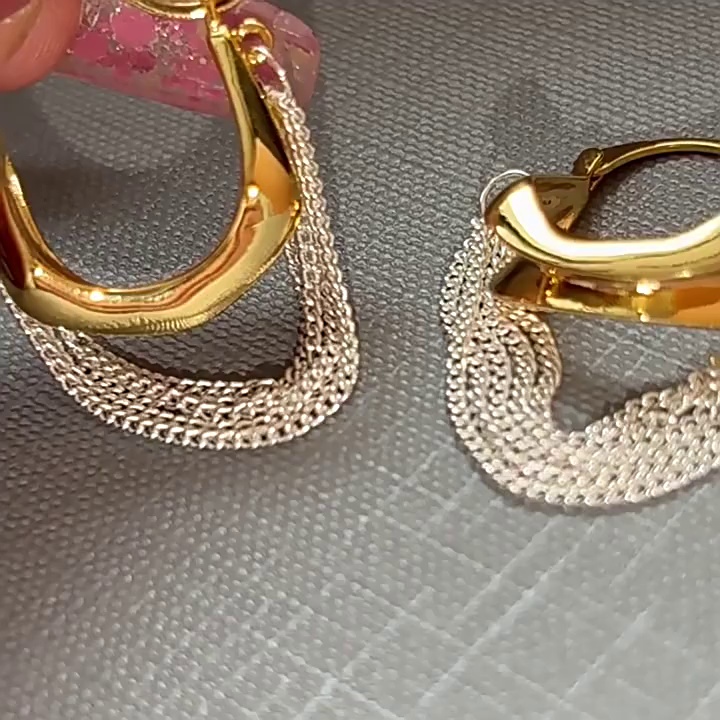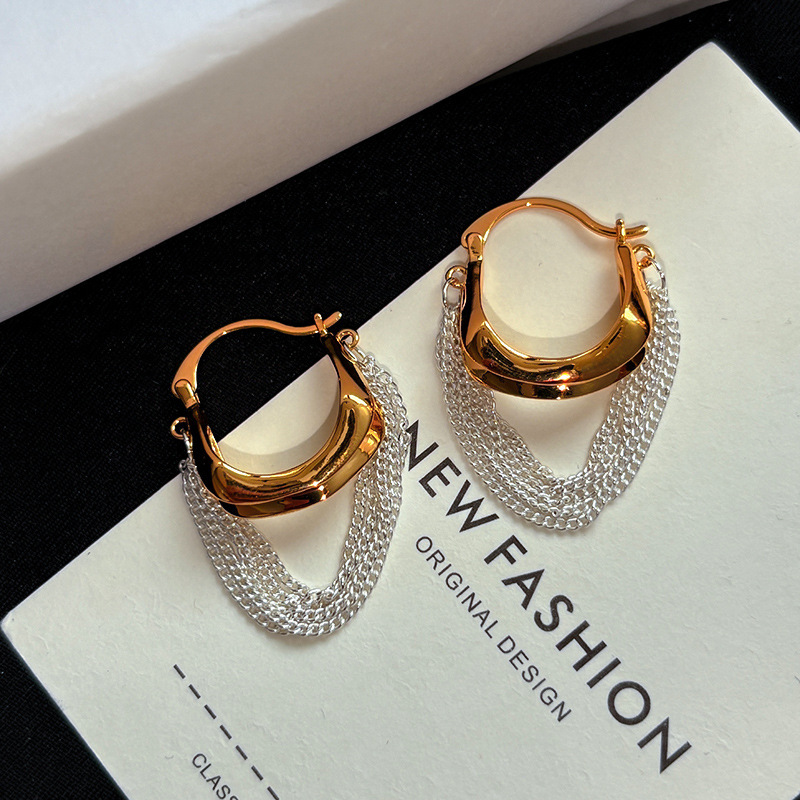 饰品耳环高级感轻奢气质独特方圆脸耳扣耳饰金属金色小流苏耳环女